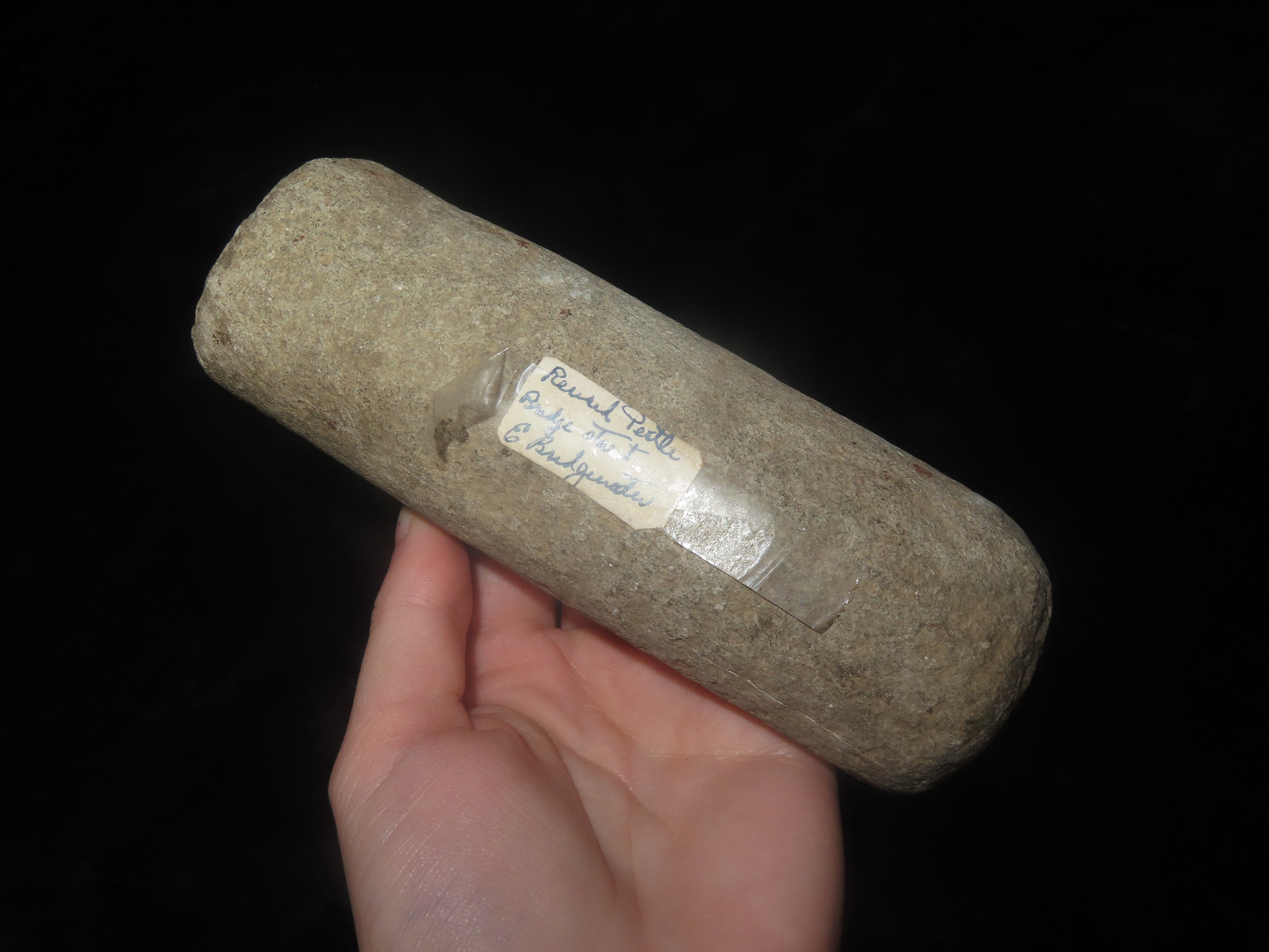 5 3/4″x2 2/16″ Native American Roller Pedestal Bungay River Attleboro Mass. Marvin Farm, Beaver Site. EX: Peter Engstrom, Dr. Robbins.
