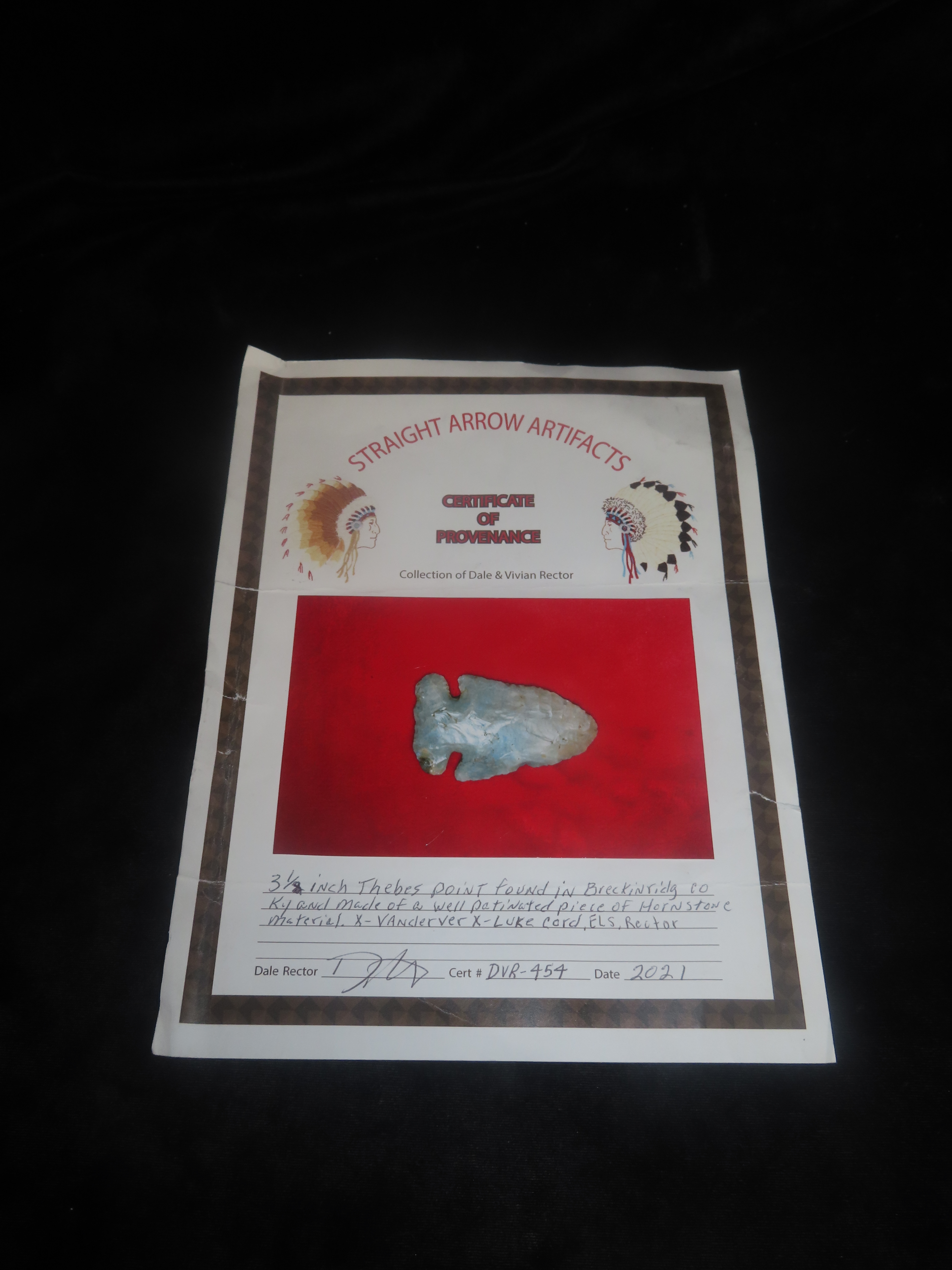3″ x 1 15/16″ Thebes, found in Breckinridge Co., Kentucky, Ex Dale Rector, Ex Vanderver, Ex Luke Cord Collections-comes with Certificate of Provenance from Dale Rector