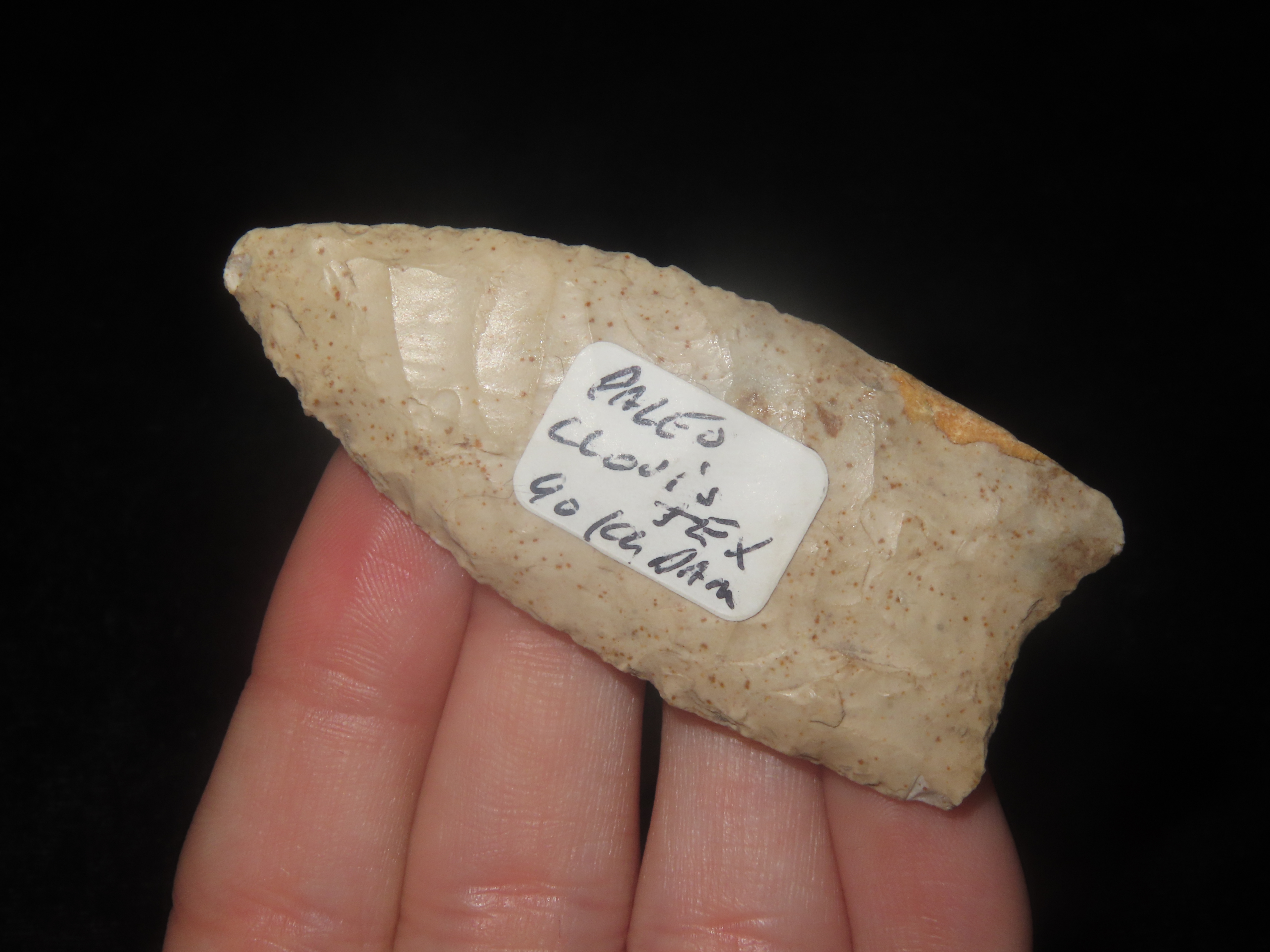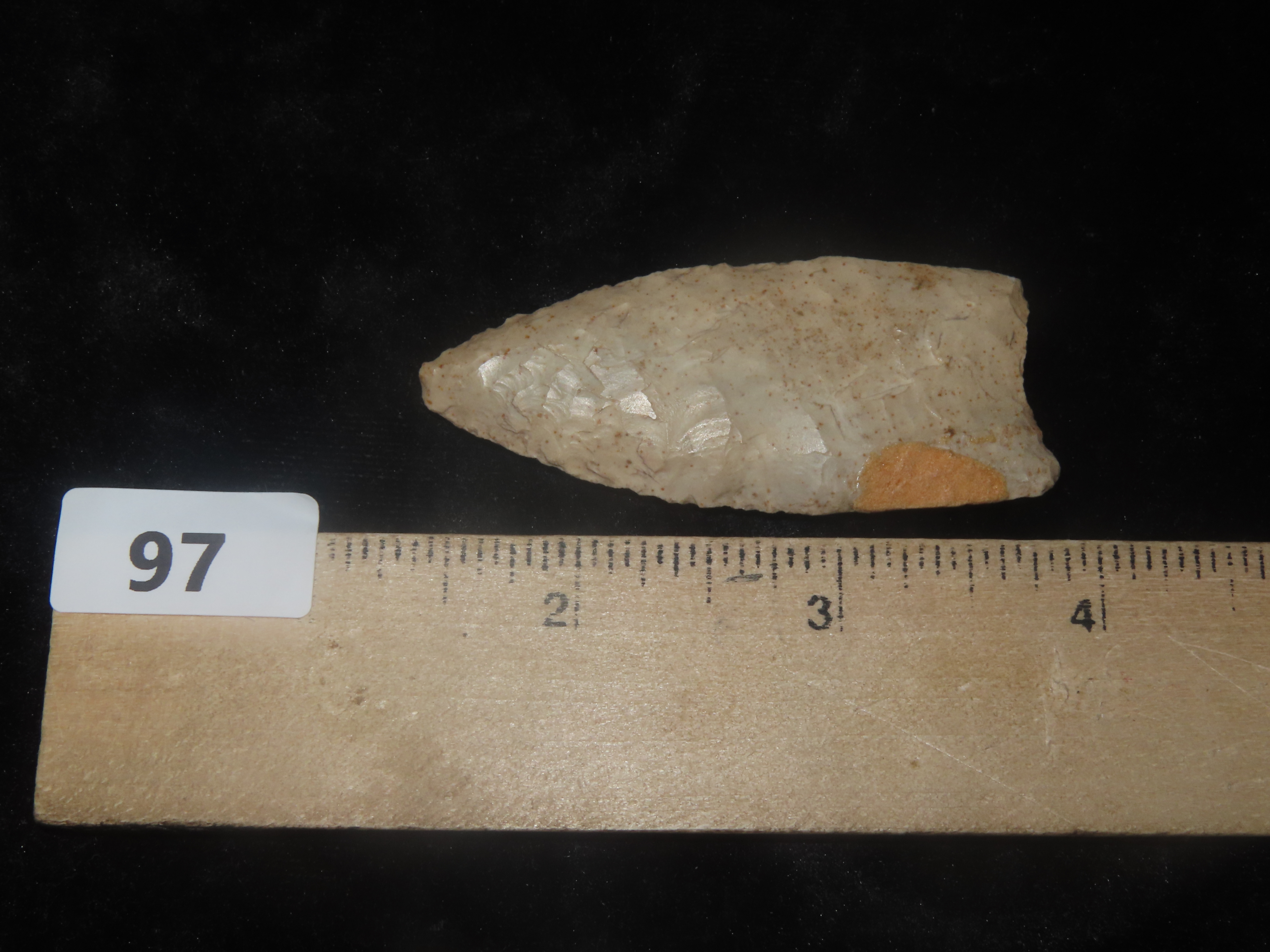 2 7/16″ x 1 1/16″ Fluted Clovis, **RESTORED ONLY IN SMALL EDGE**, Ex Walt McIntire Collection
