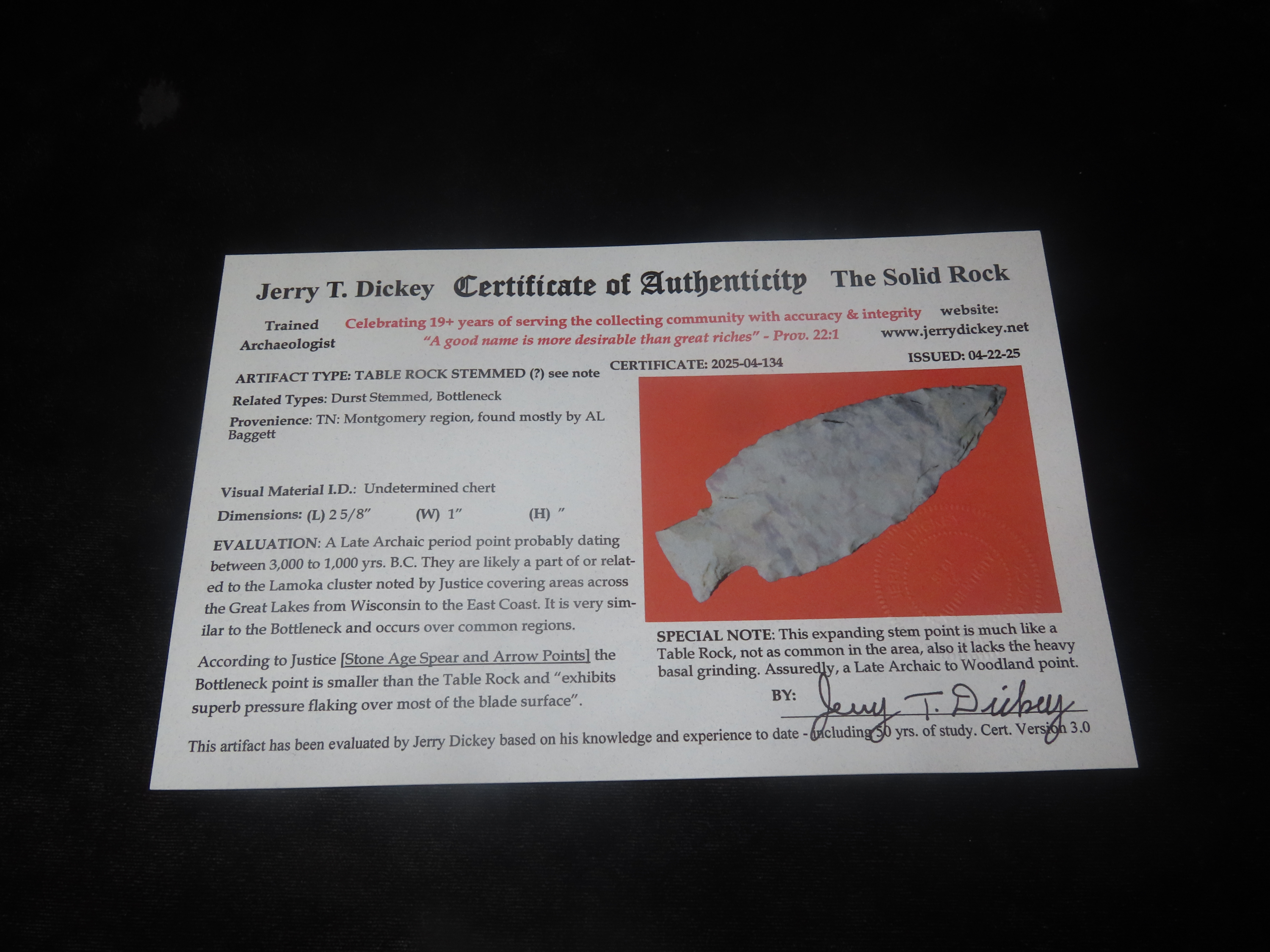 2 5/8″ x 1″ Table Rock, Dickey COA, found in Montgomery Co., Tennessee by Al Baggett