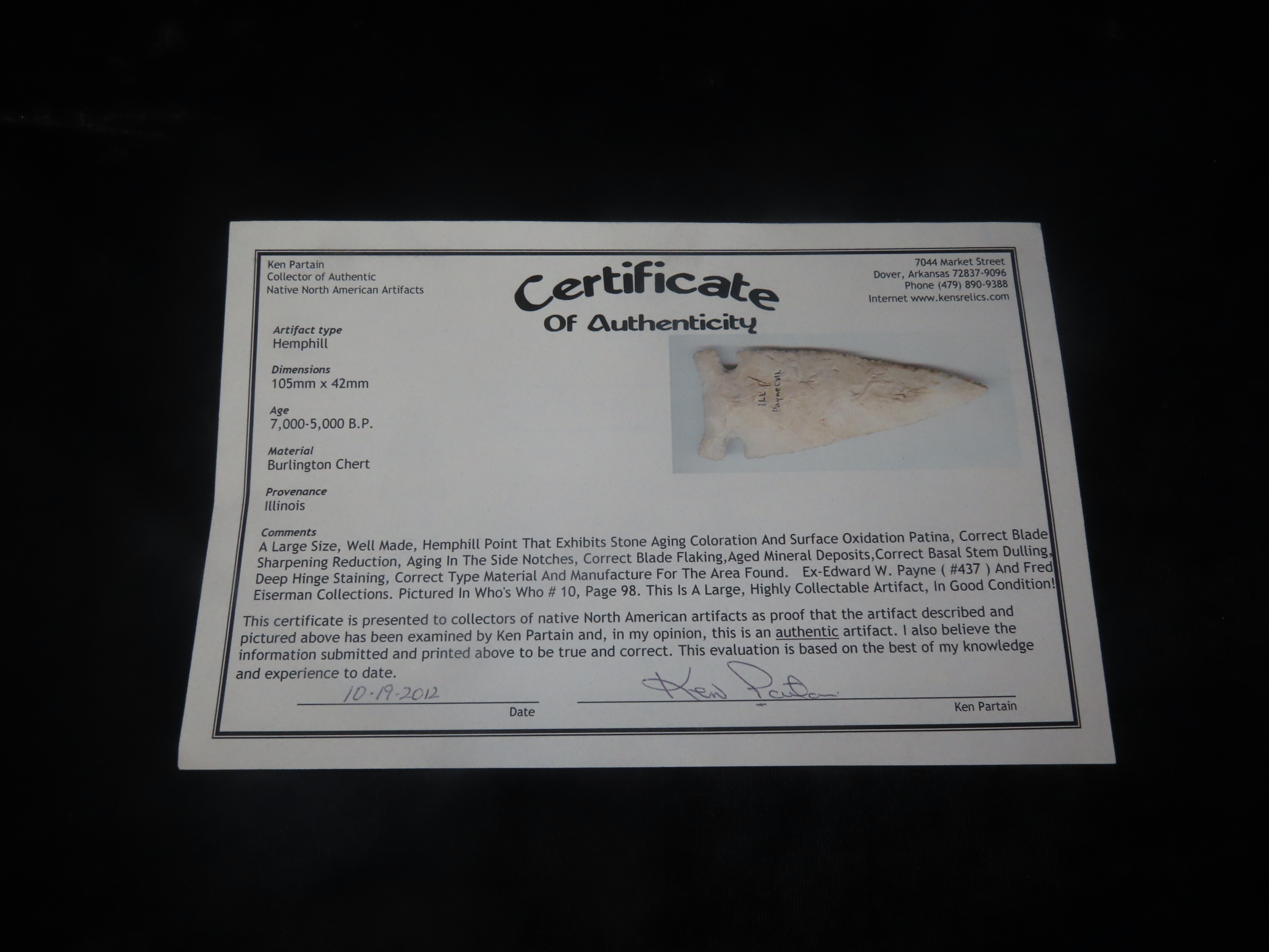 4 1/8″ X 1 5/8″ Hemphill, Partain COA, Found in Illinois