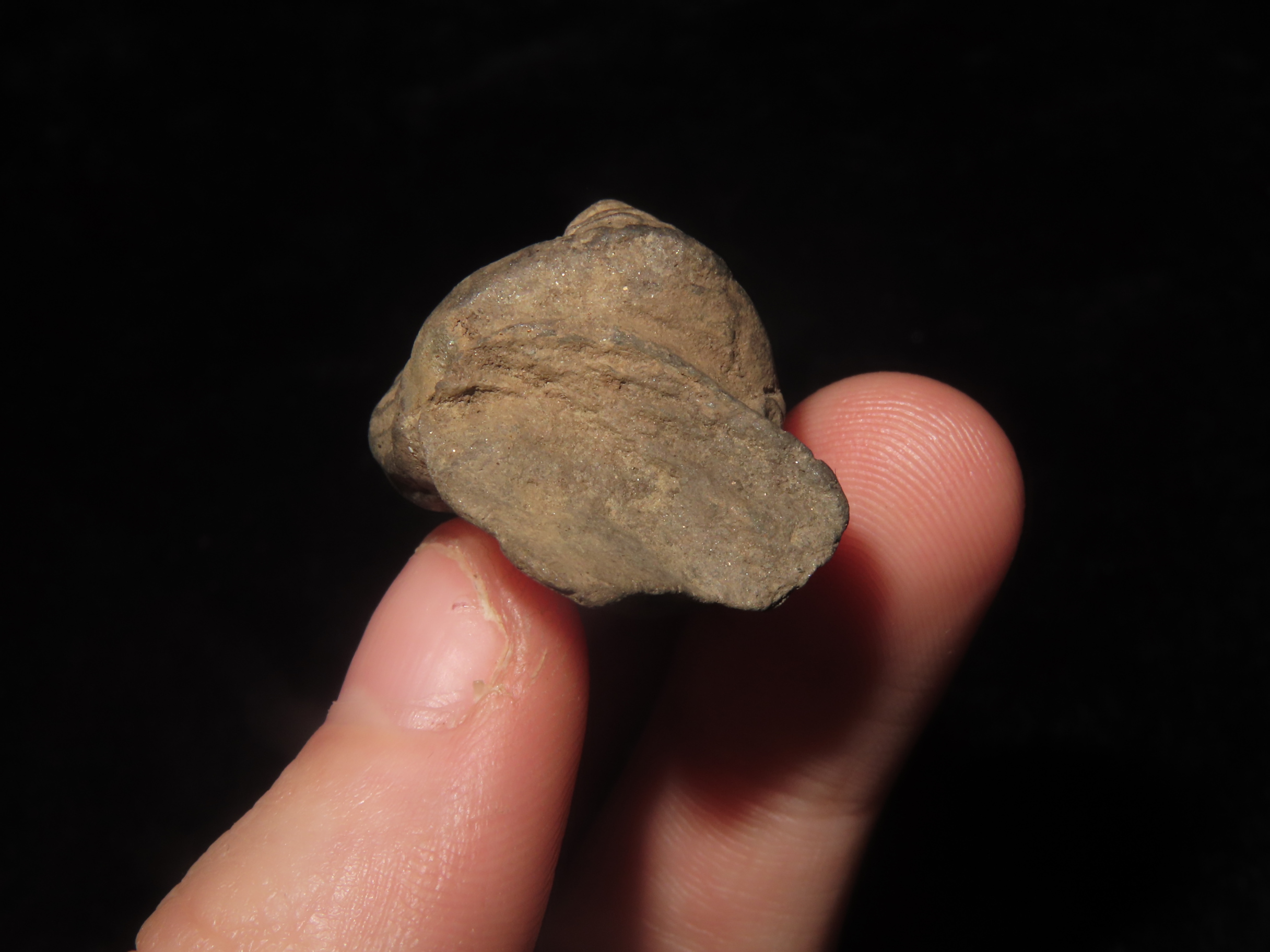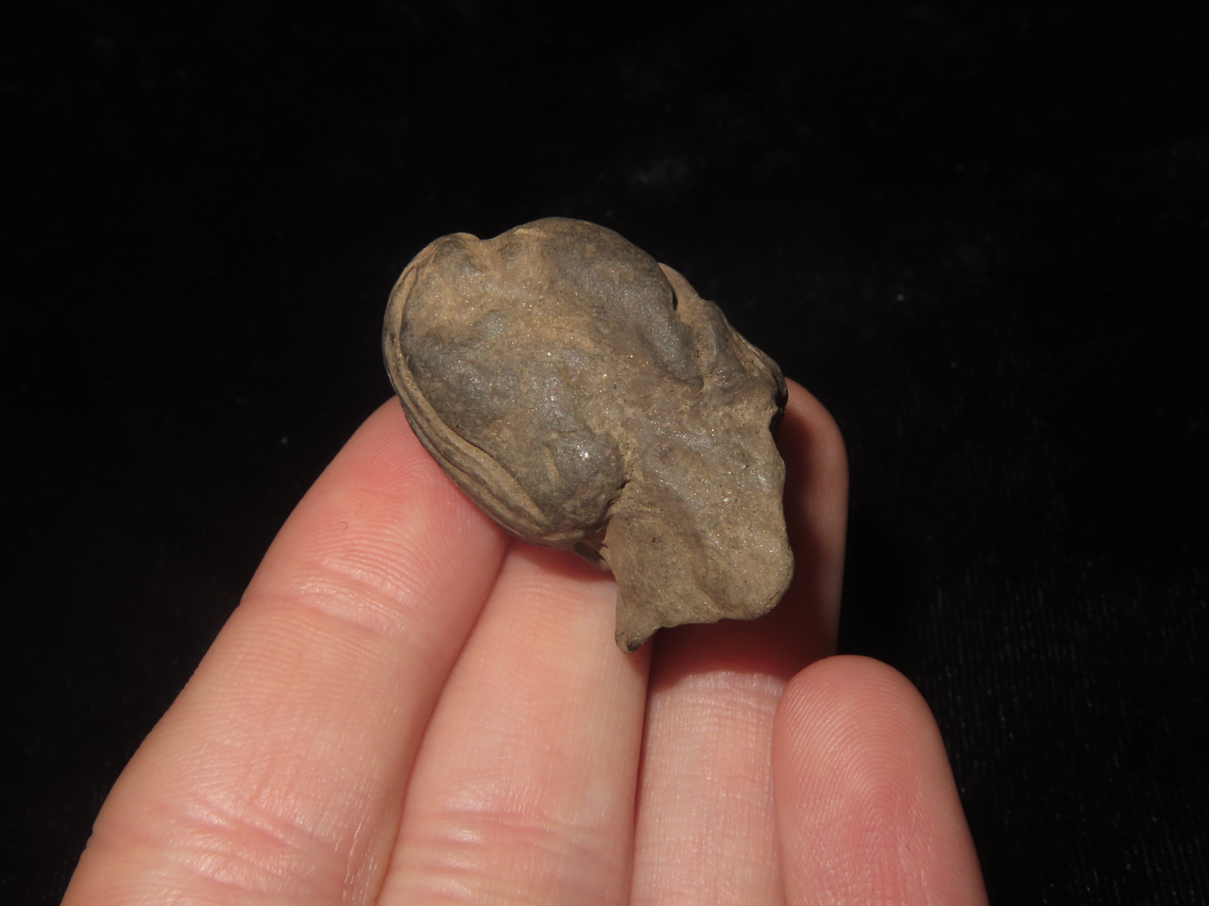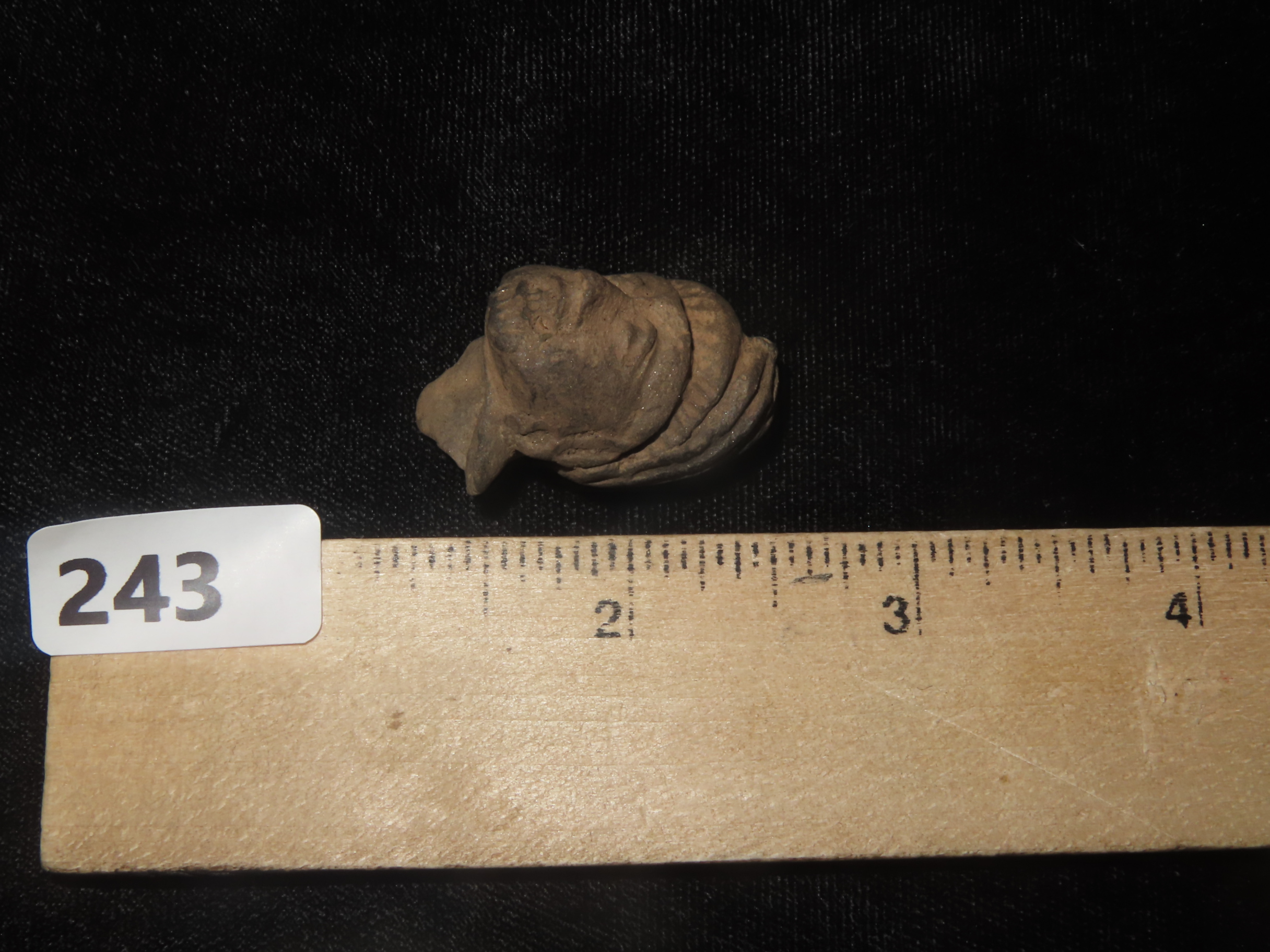 1 5/16″ X 3/4″ Pre-Columbian Tumaco-La Tolita pottery head from the culture that occupied the coast of Colombia and Ecuador from approximately 350 BCE to 400 CE