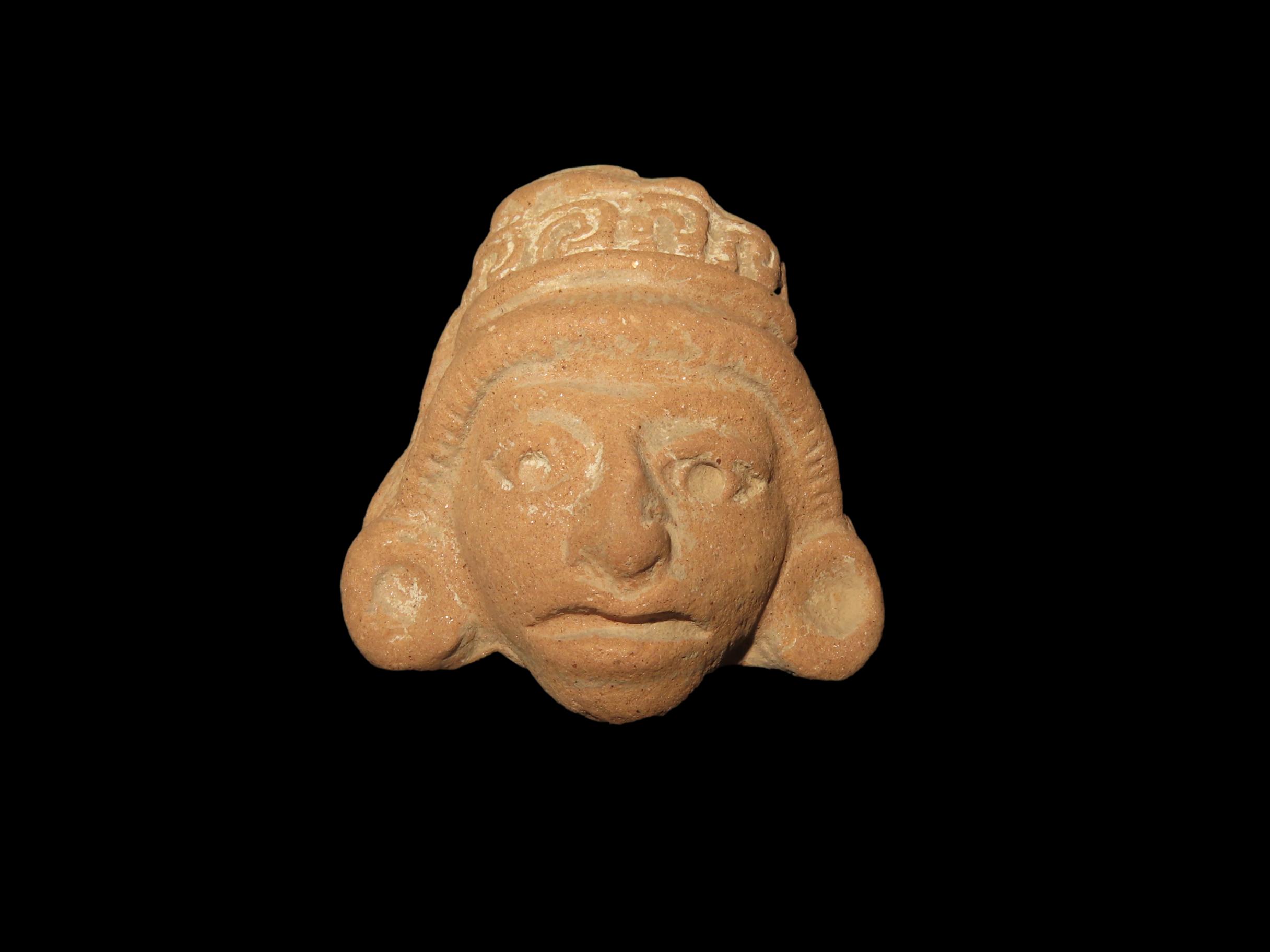 2″ X 1 3/4″ Pre-Columbian Mayan terracotta head, It dates from approximately 500-900 AD.