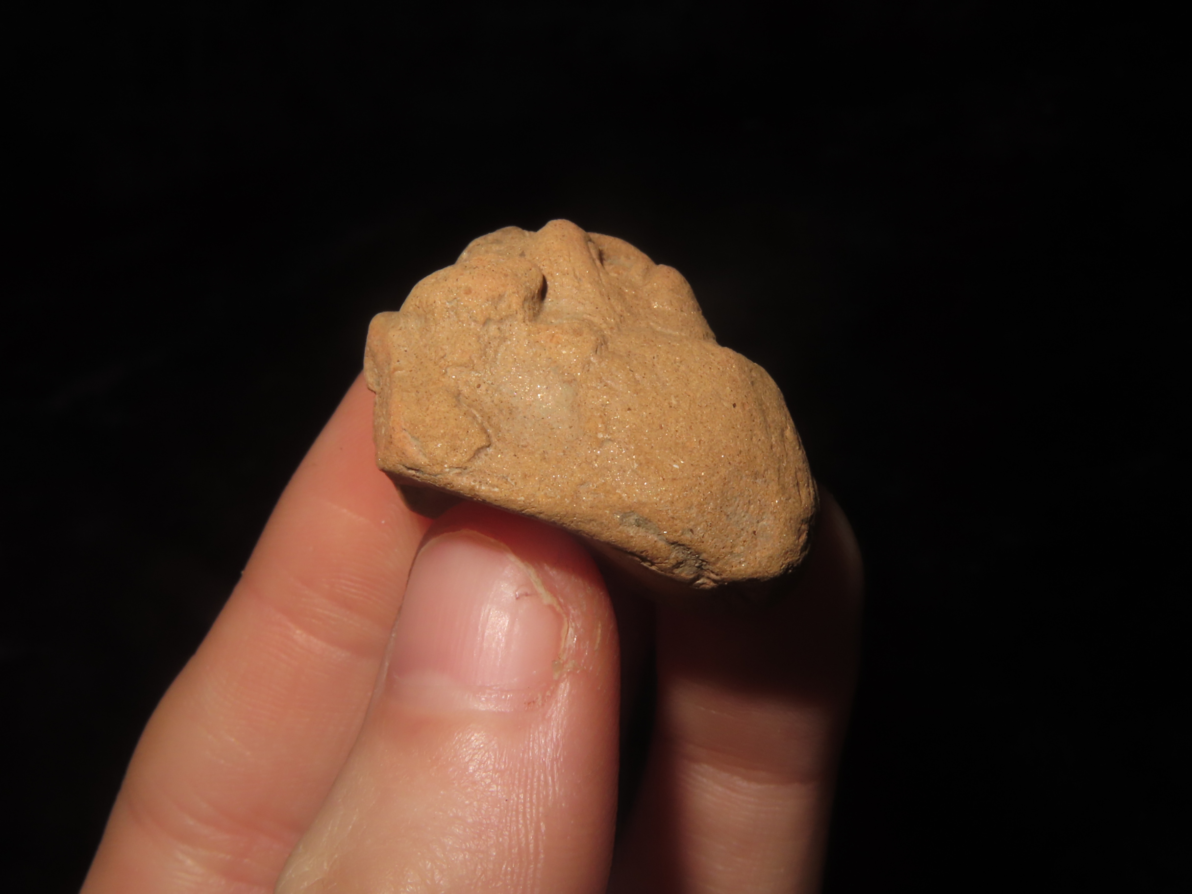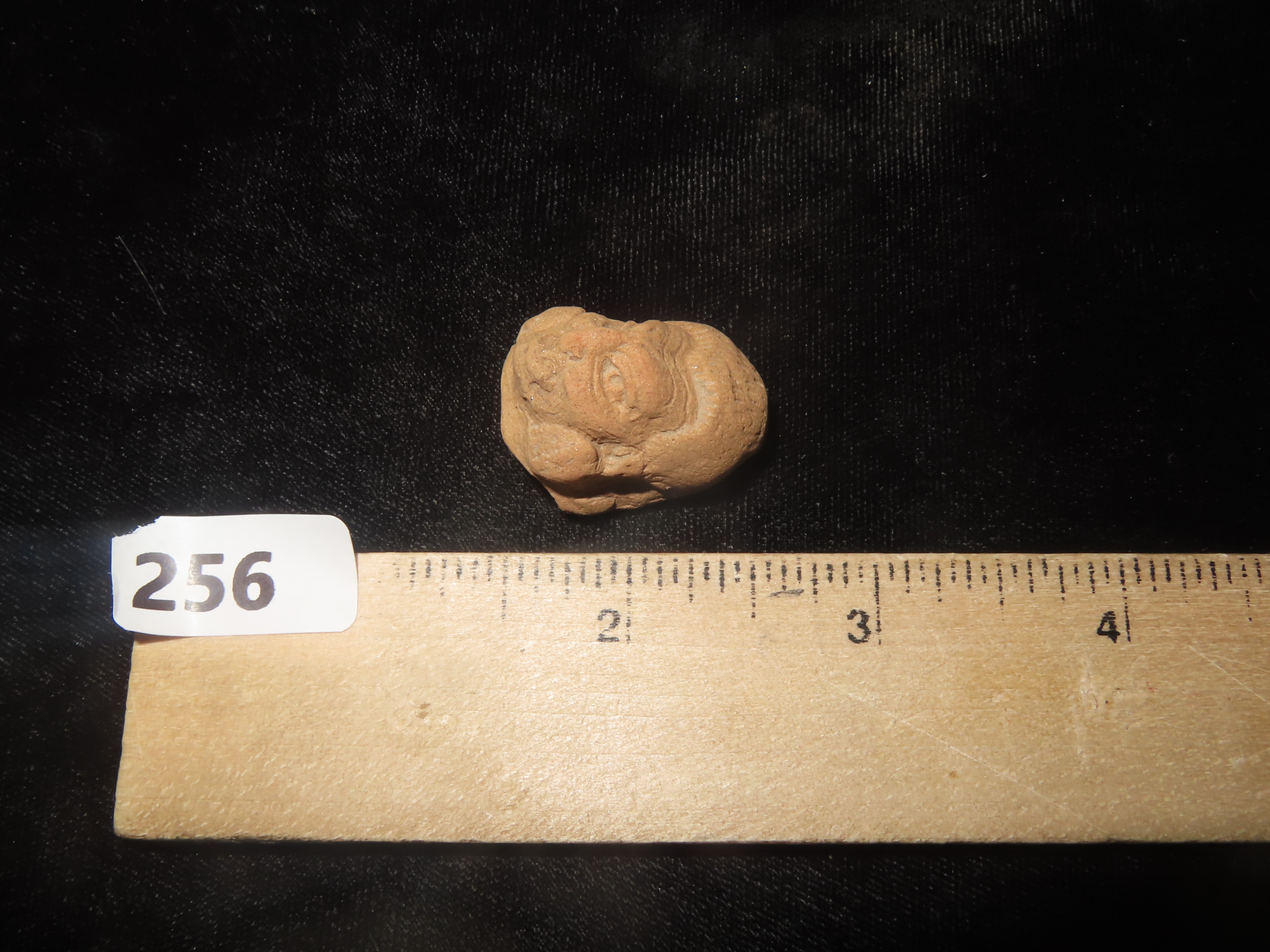 1 1/8" X 3/4" Pre-Columbian Mayan terracotta head, It dates from approximately 500-900 AD.