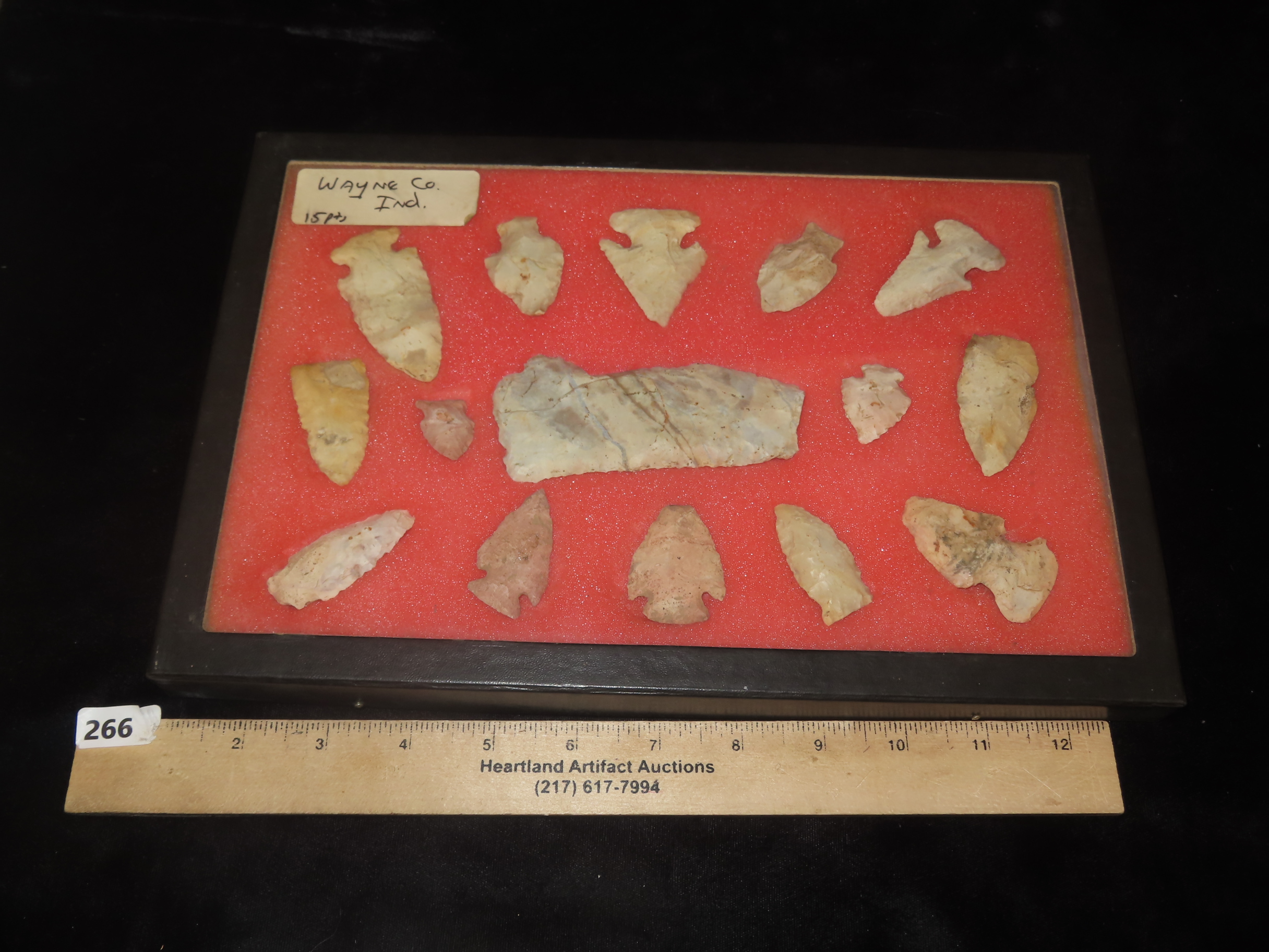 12 3/8" X 8 3/8" Frame of 15 Arrowheads from Wayne County IN.