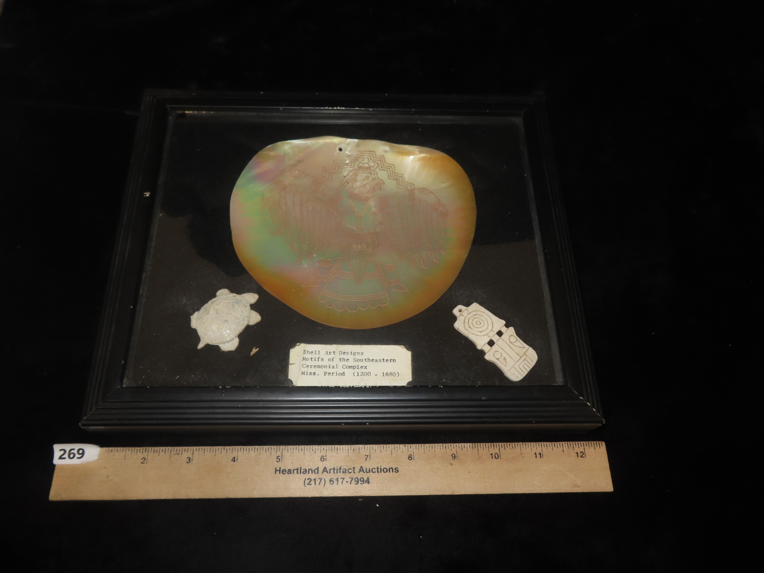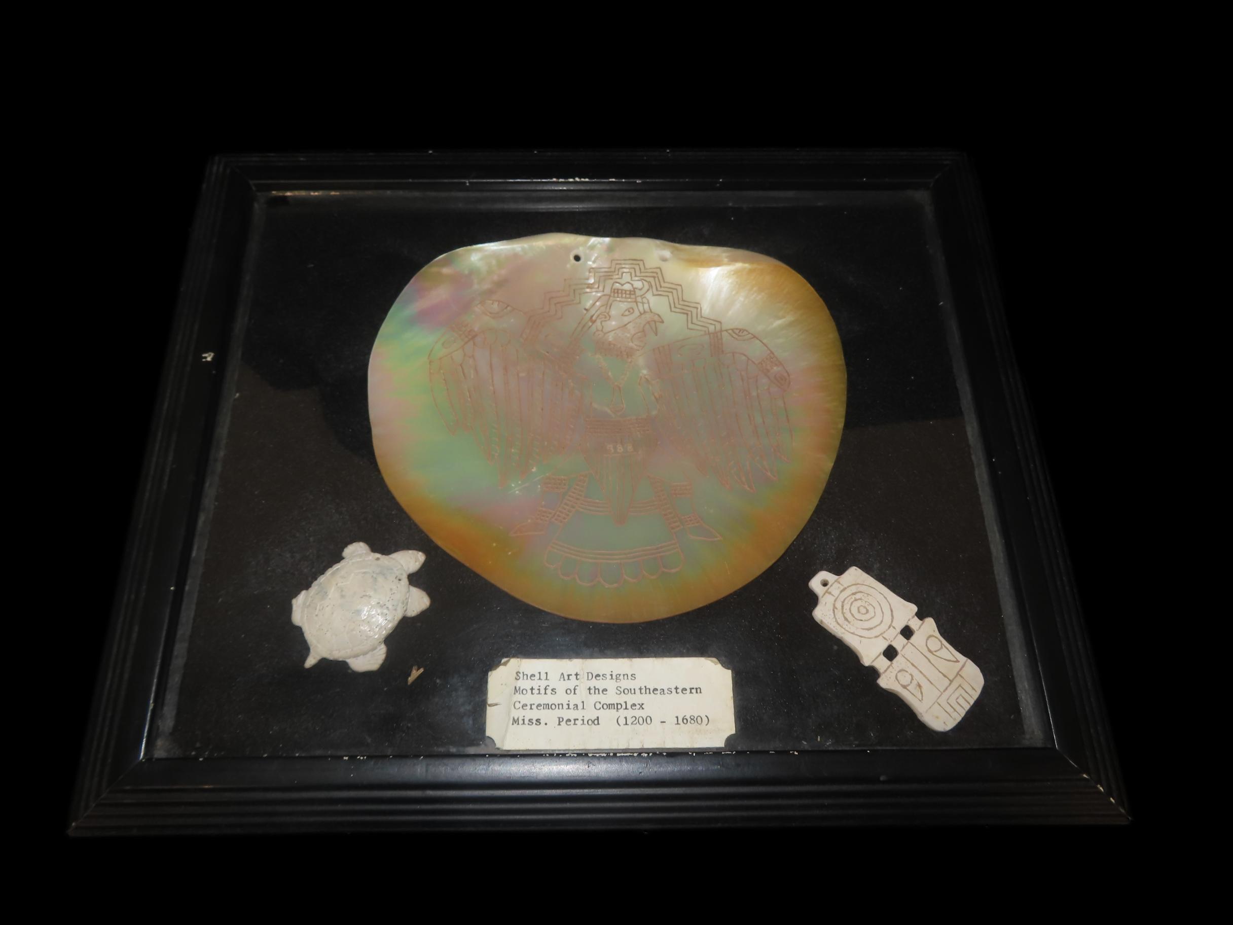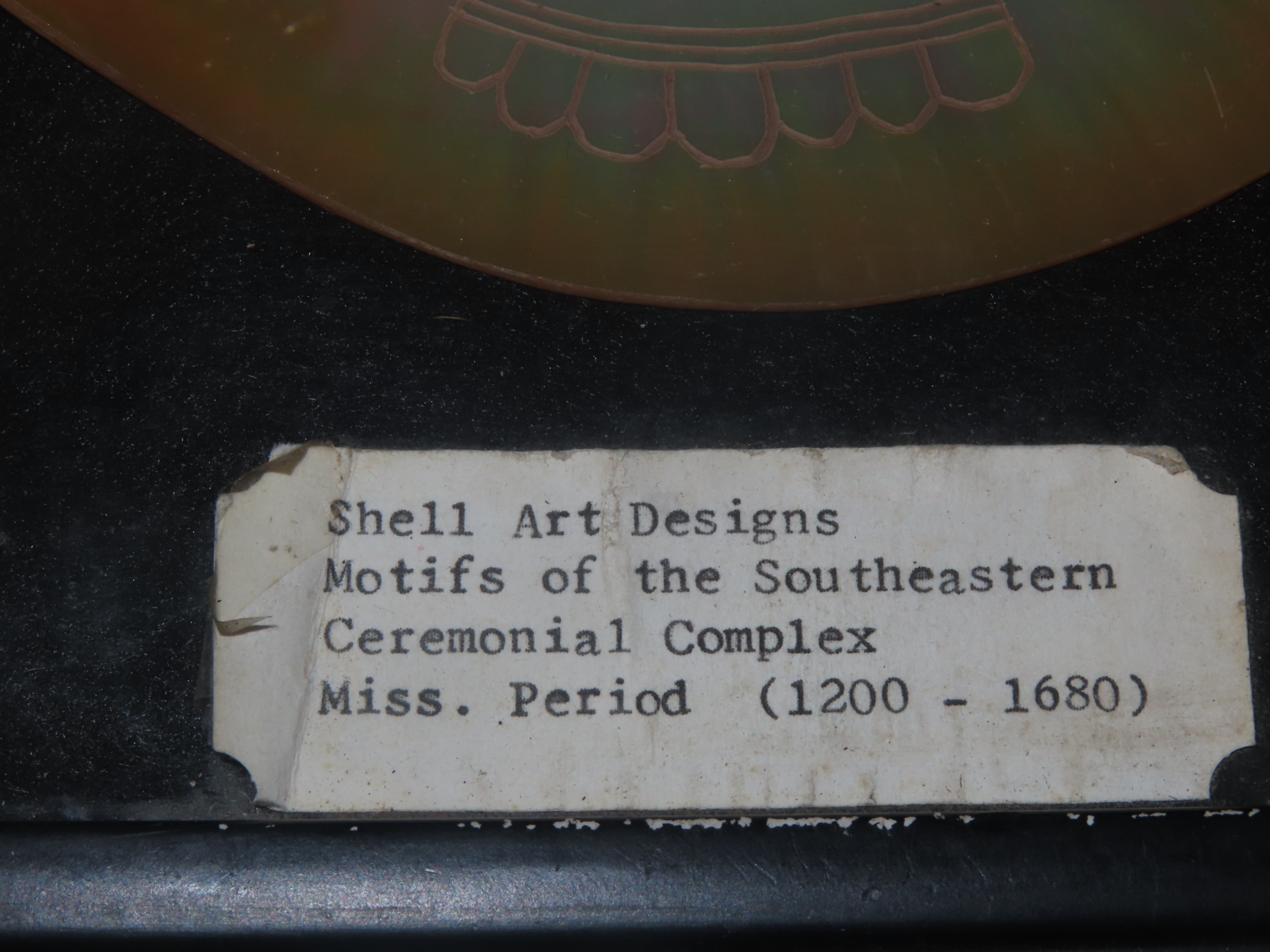 11 1/2″ X 9 1/2″ Frame of Shell Art Designs, Motifs of the Southeastern Ceremonial Complex Miss. Period (1200 – 1680)