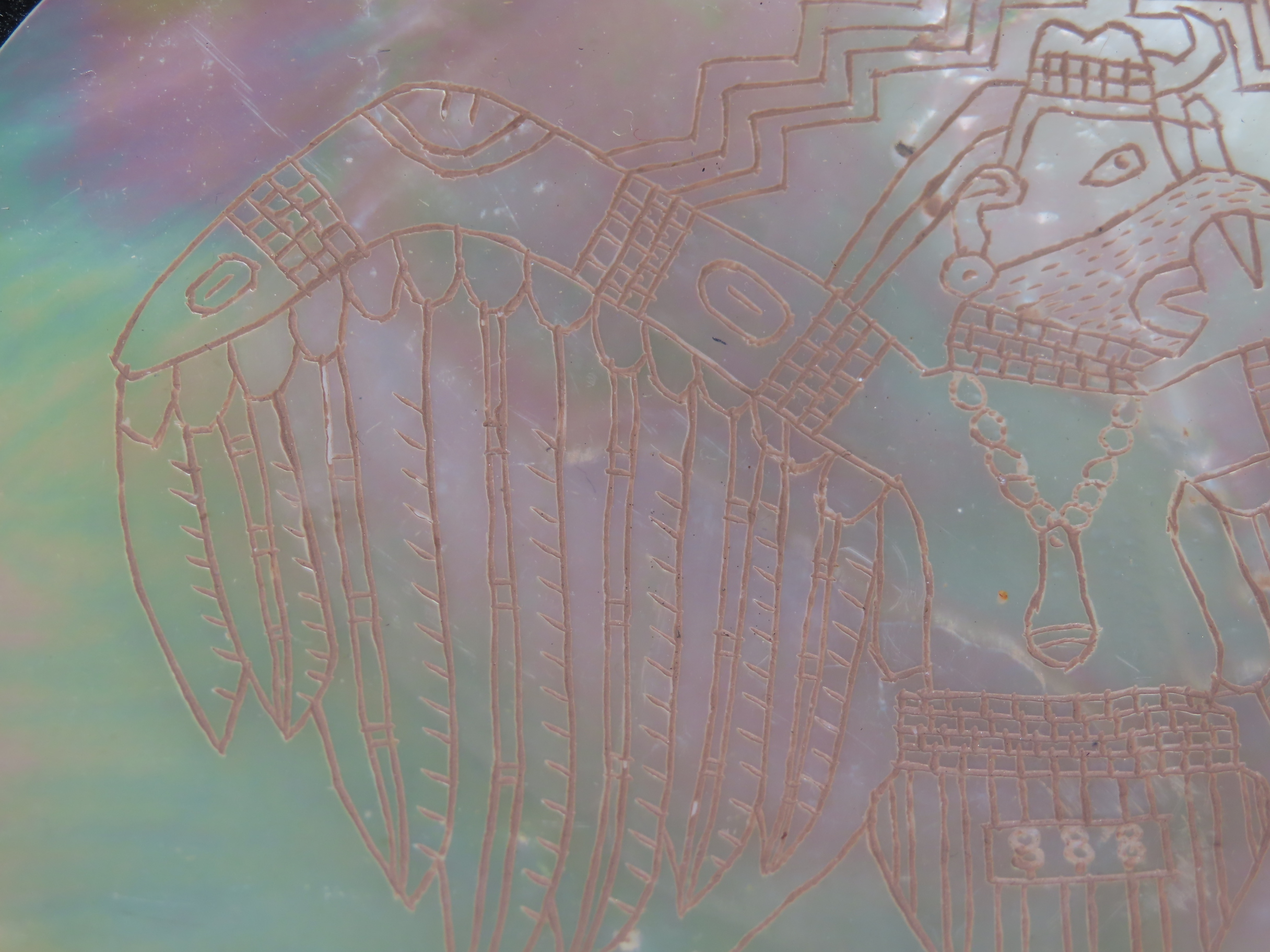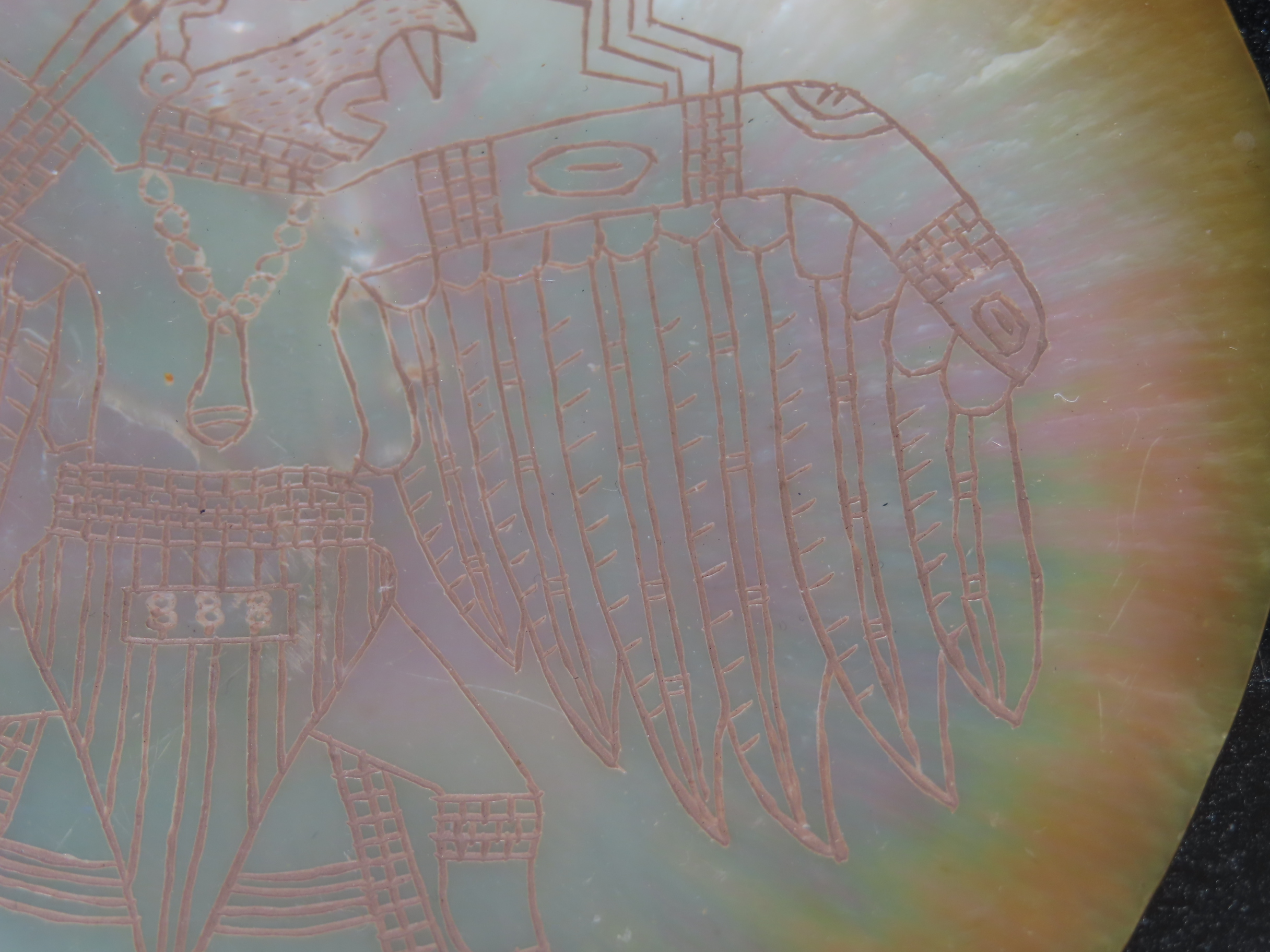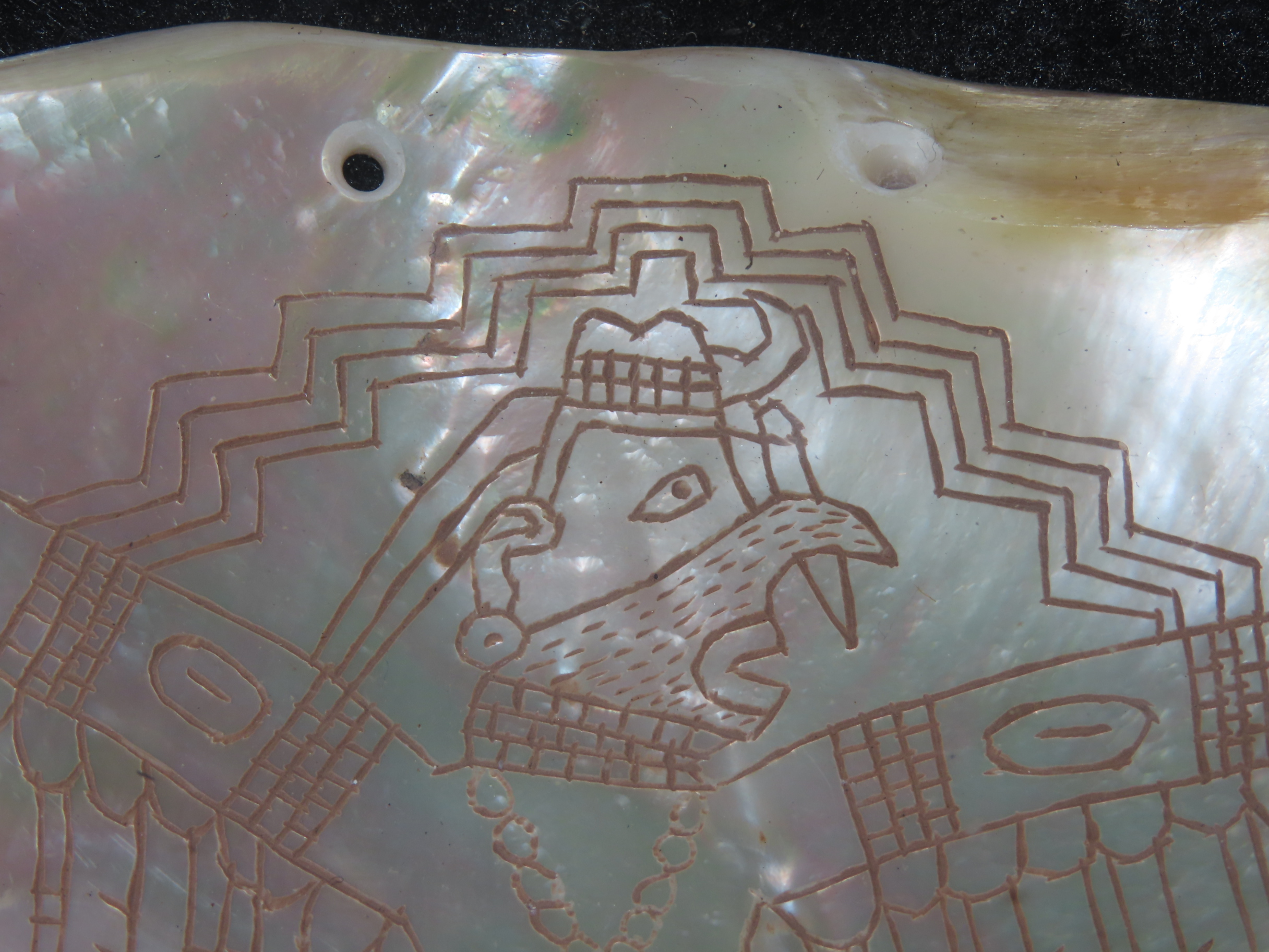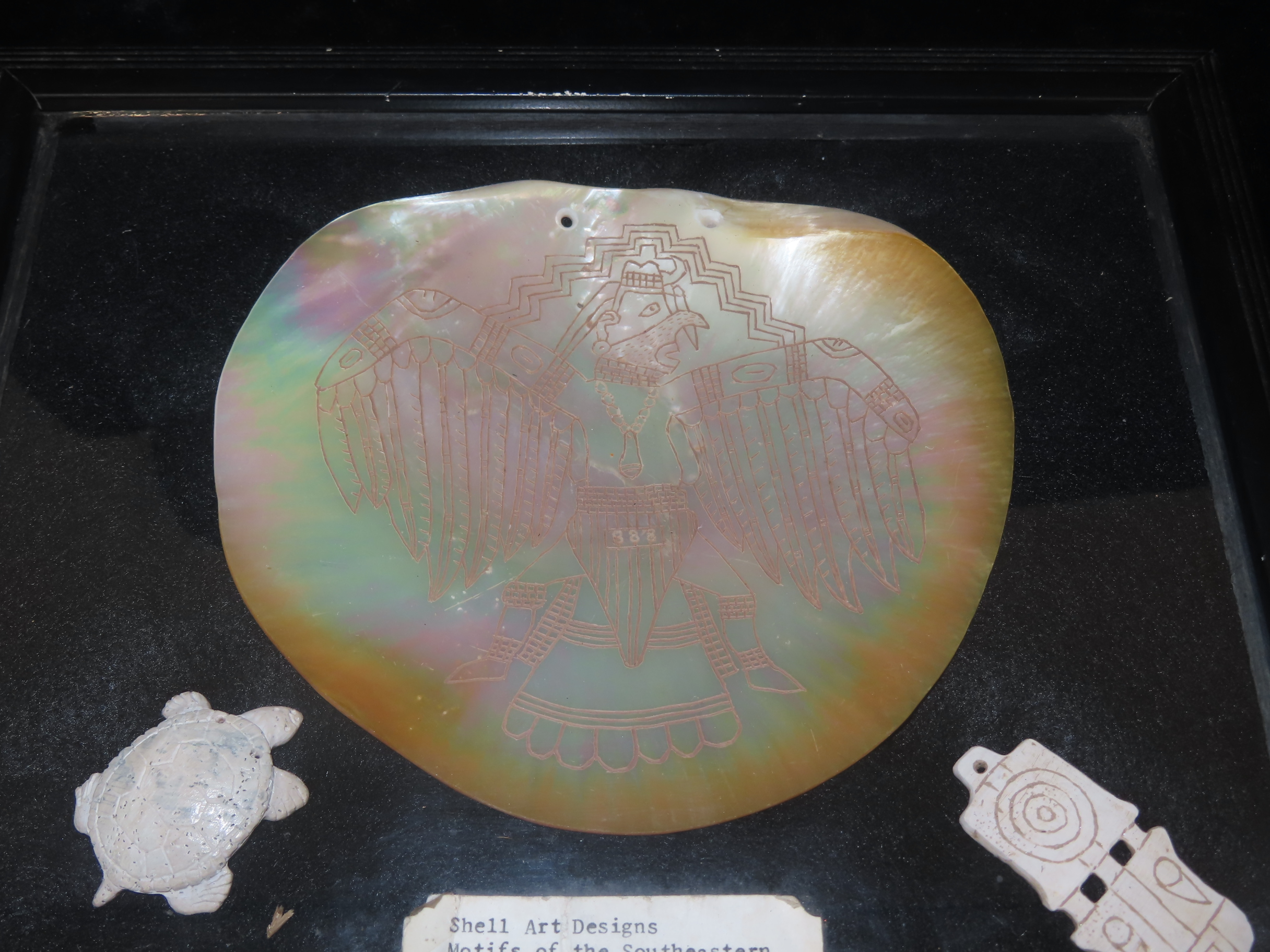 11 1/2″ X 9 1/2″ Frame of Shell Art Designs, Motifs of the Southeastern Ceremonial Complex Miss. Period (1200 – 1680)