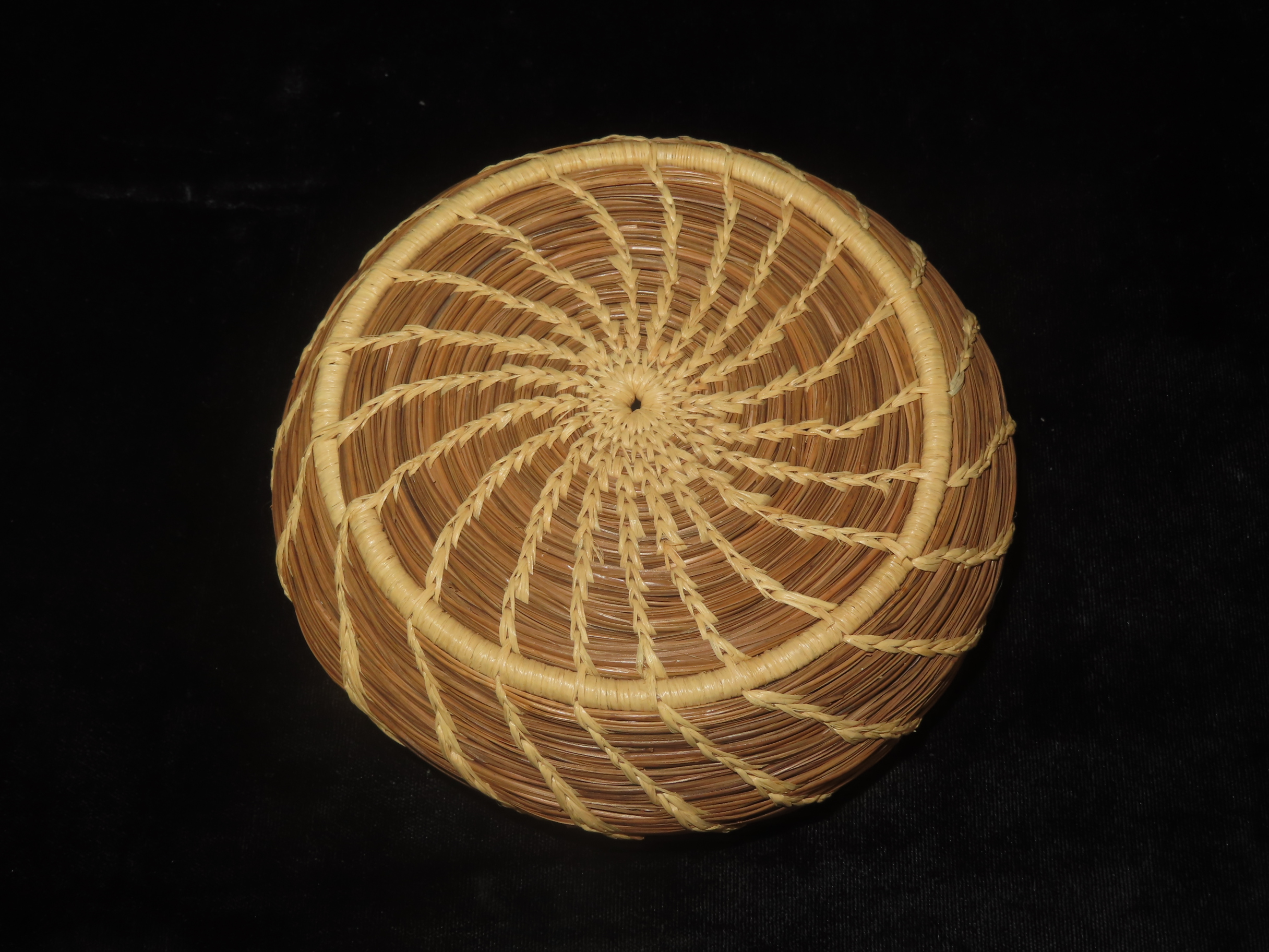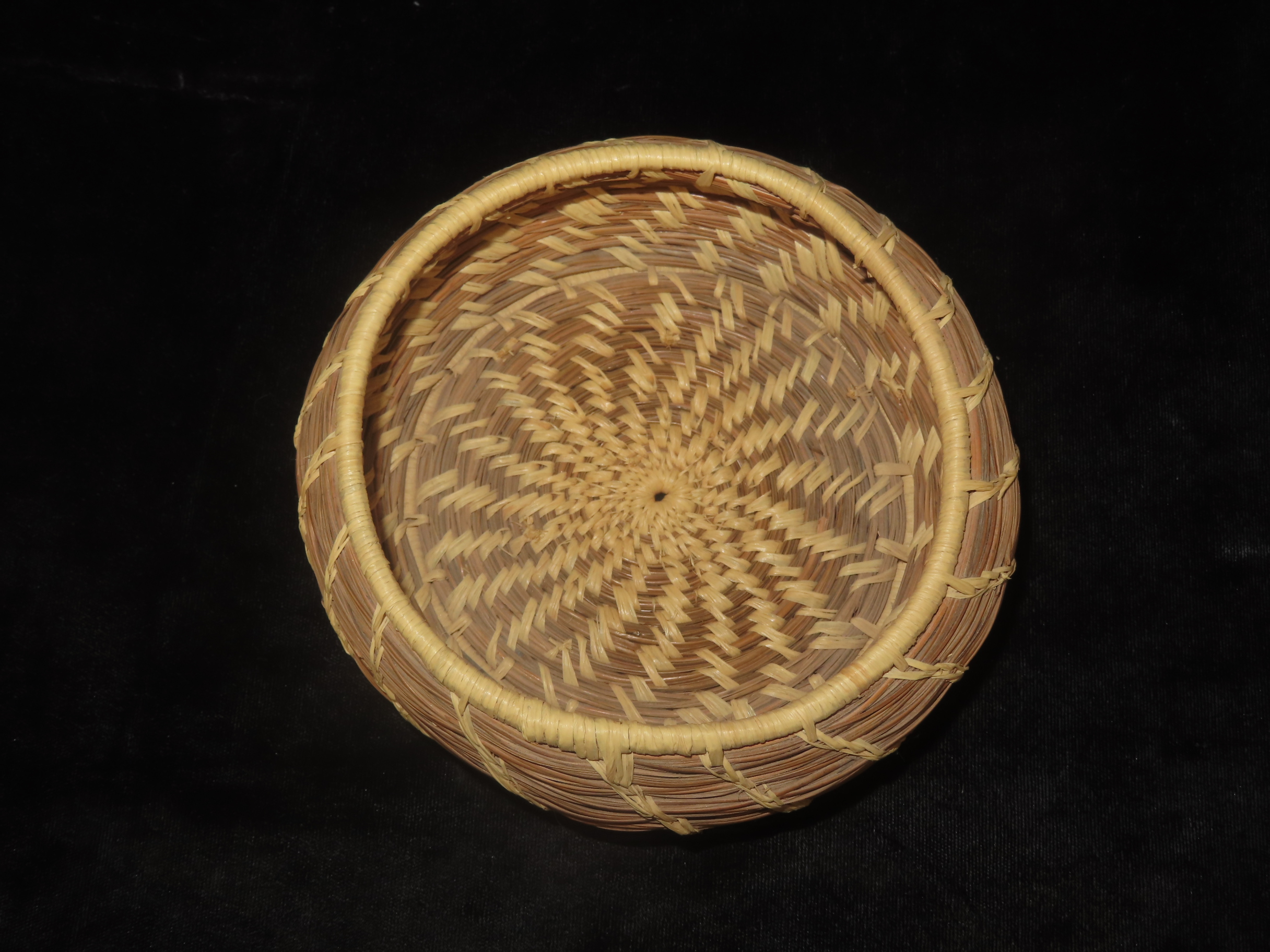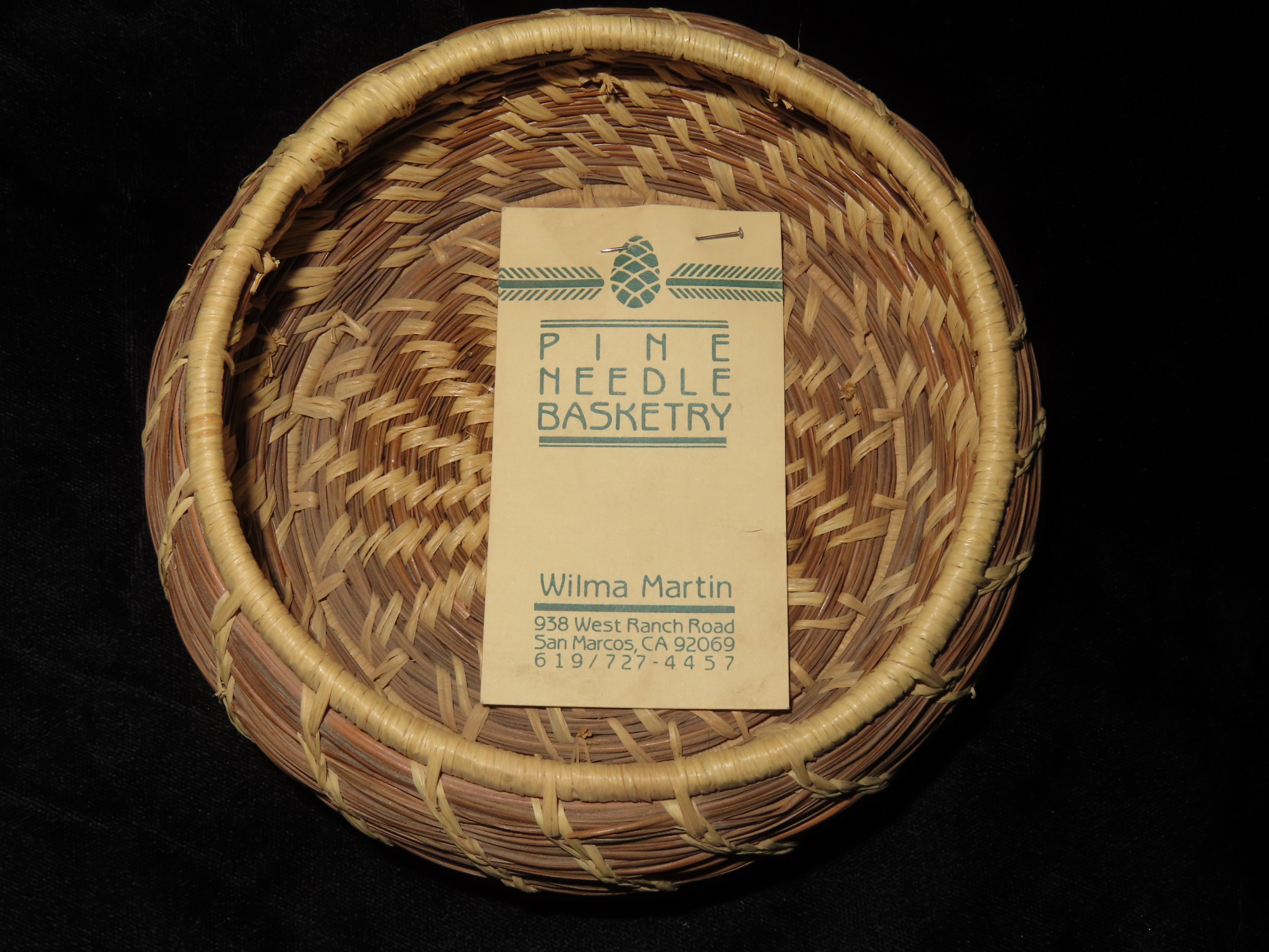 5″ x 2″ Pine Needle Basket, made by Wilma Martin, San Marcos, CA