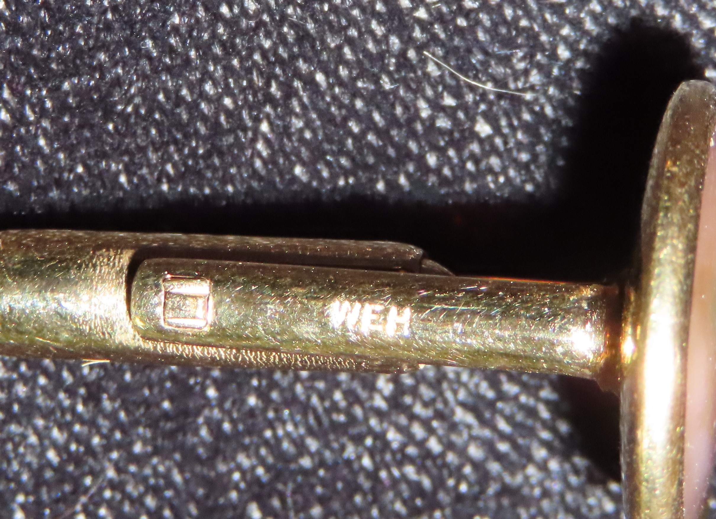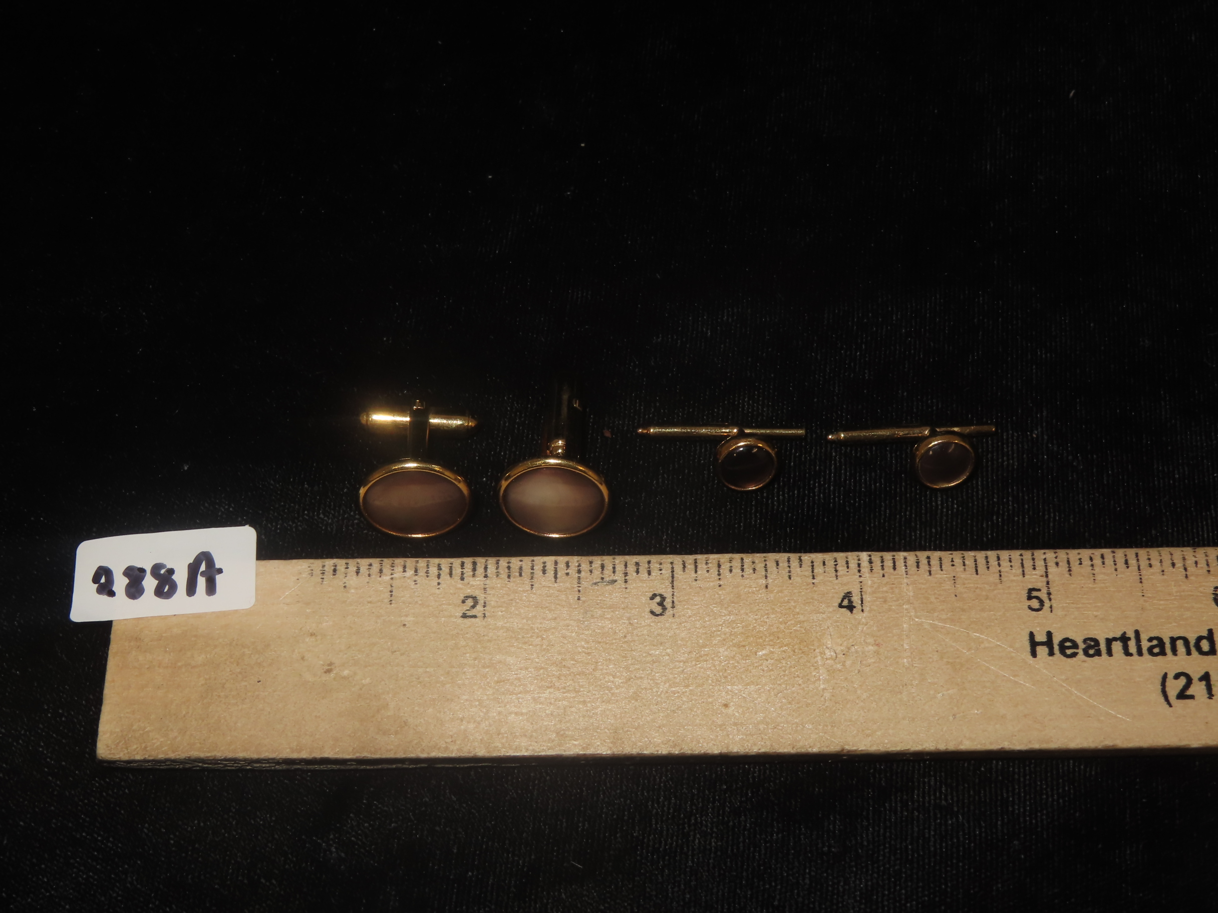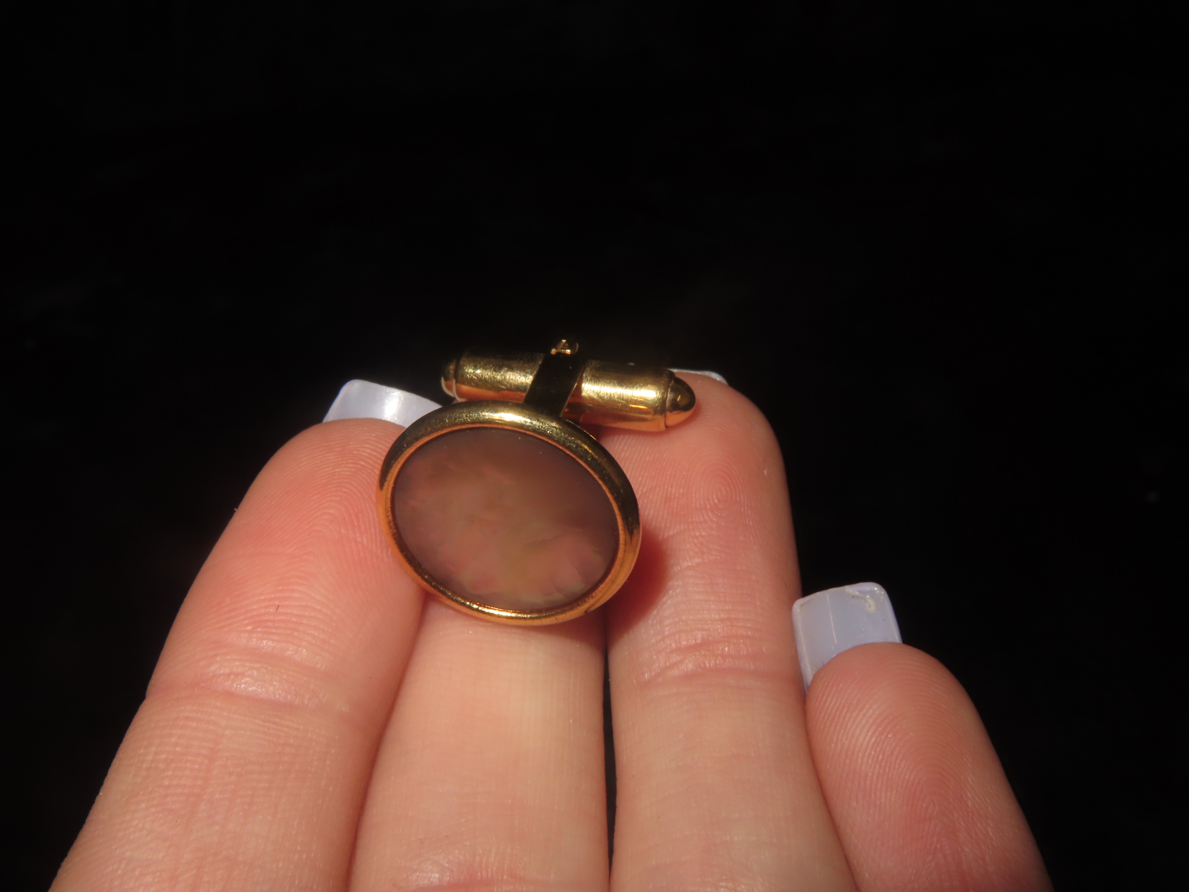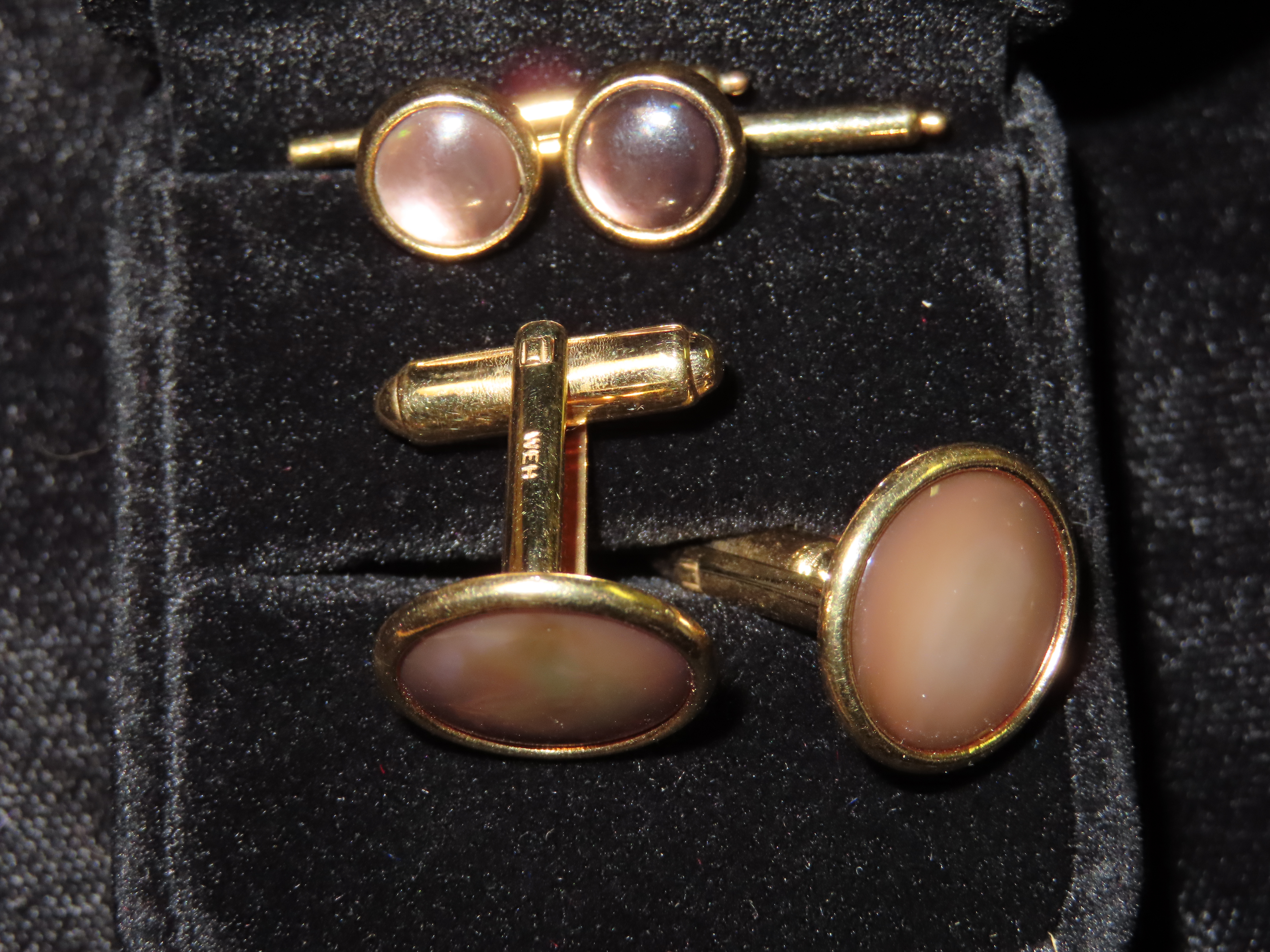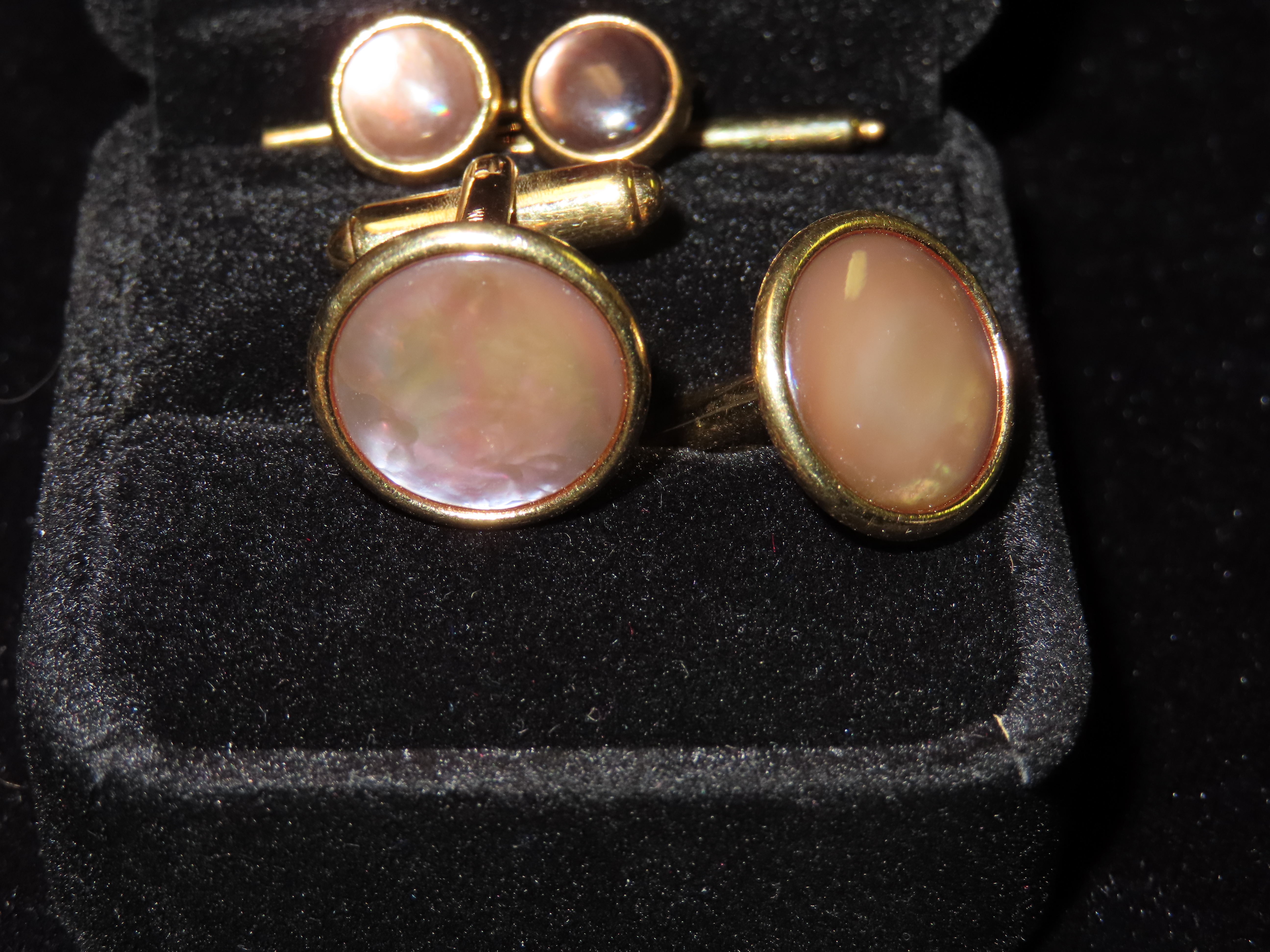 Vintage Mother of Pearl Cufflinks, with Matching Button Studs, made by Walter E Hayward Co., Attleboro, Massachusetts, Marked 1/20 12K G.F., over Sterling Silver