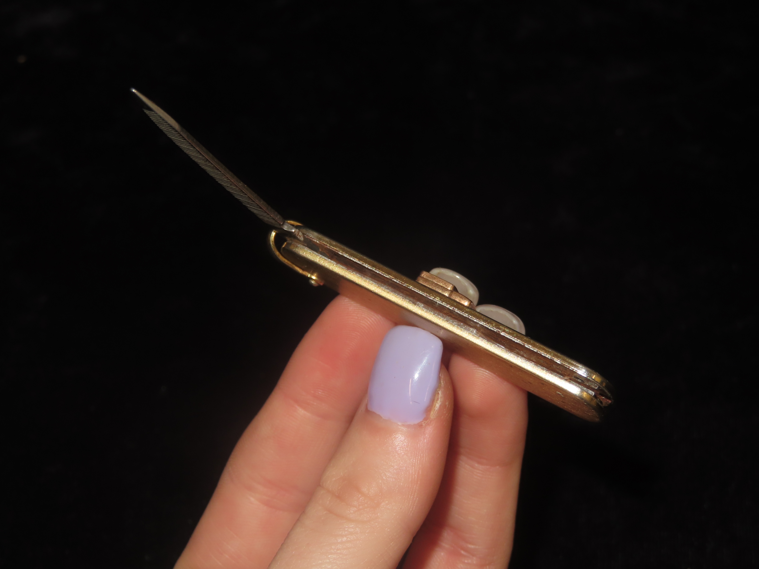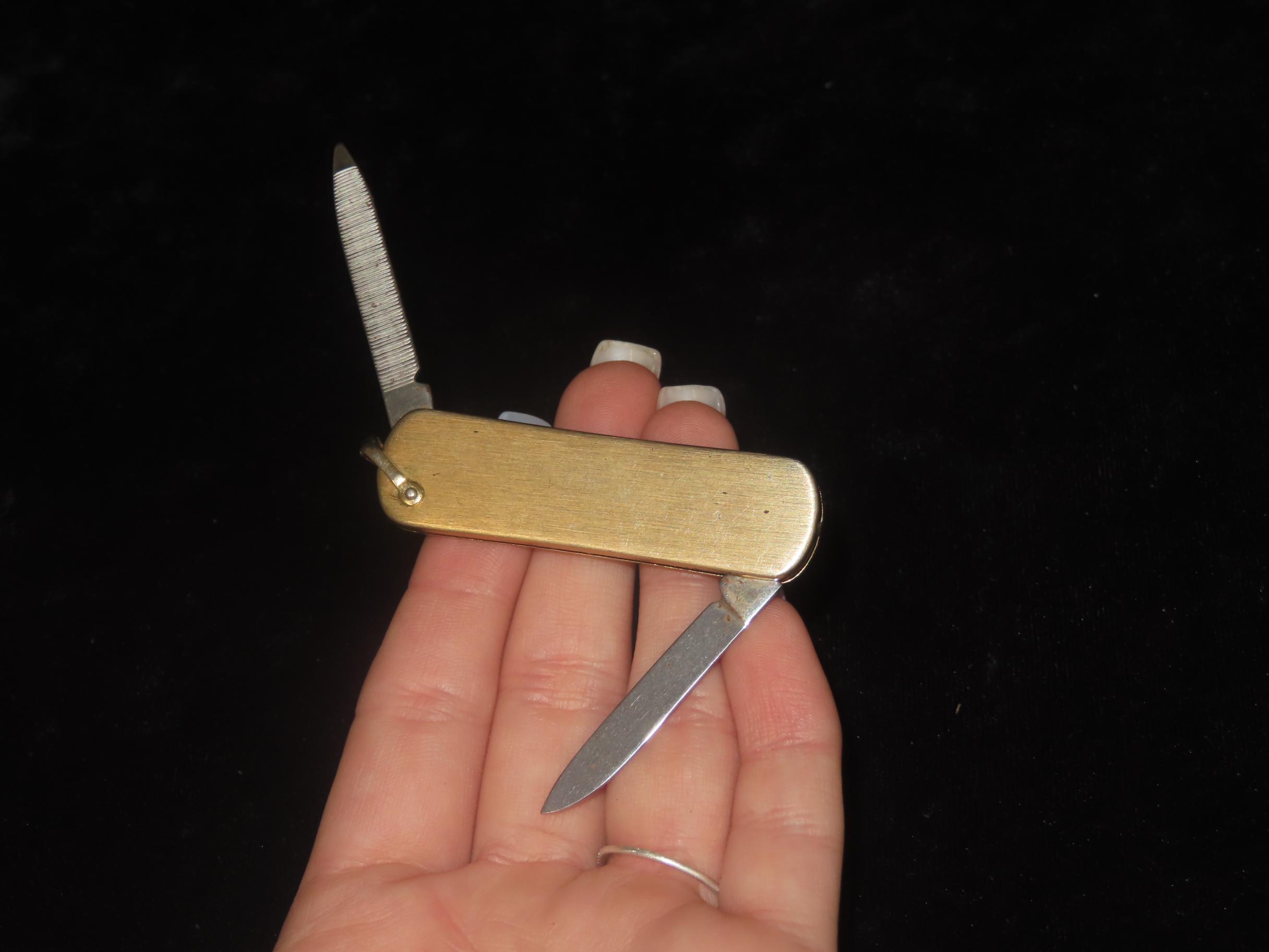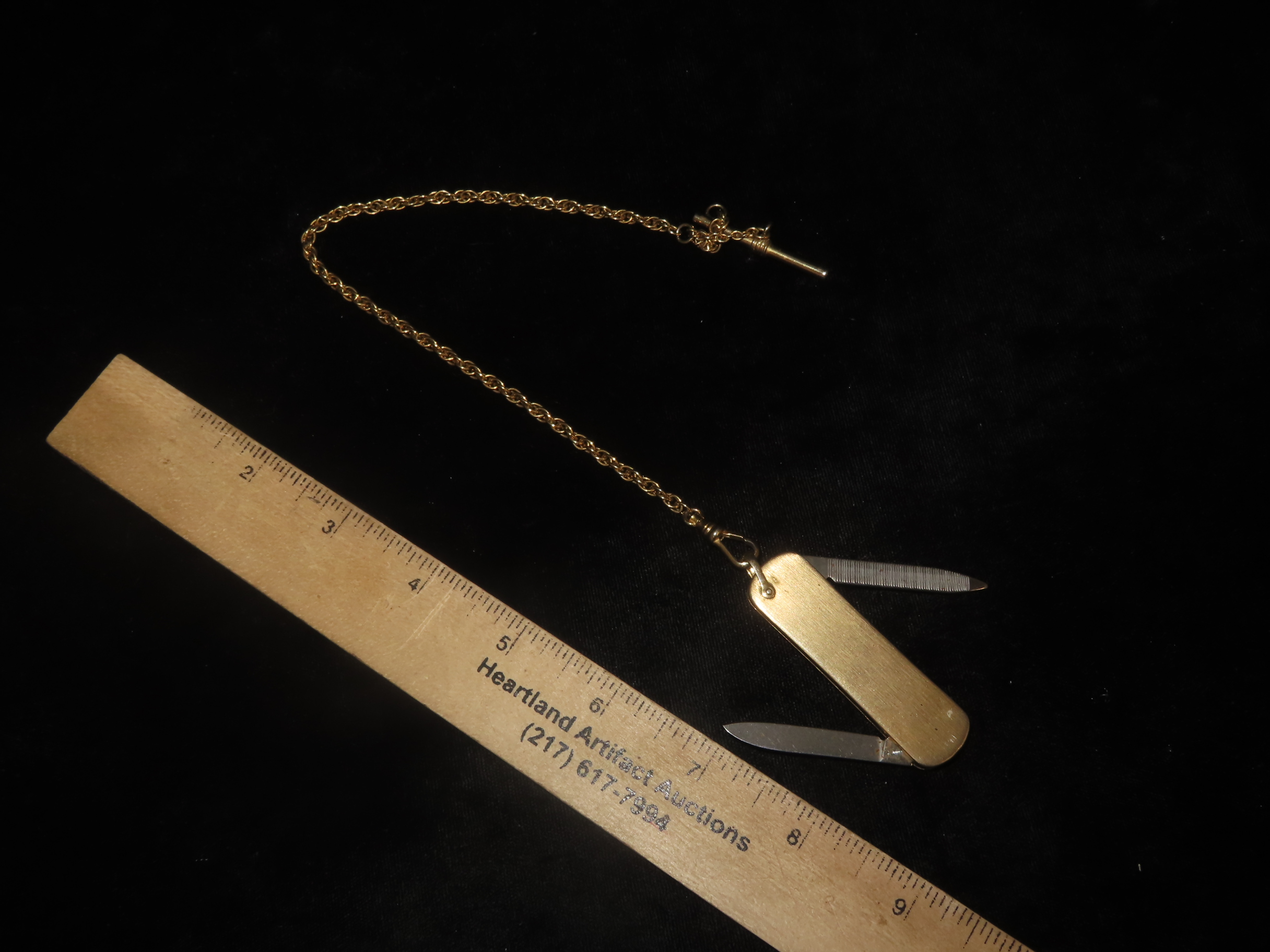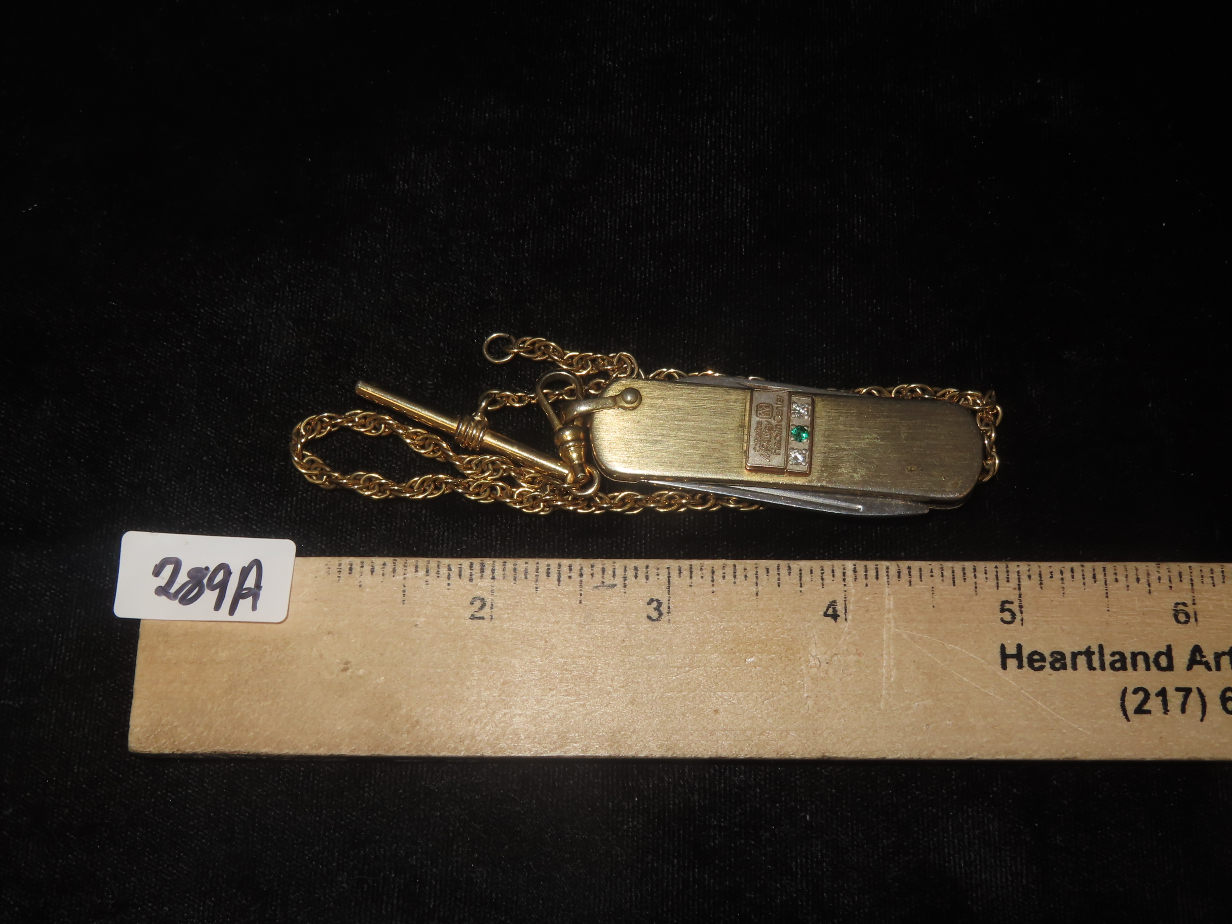 Vintage Service Award Watch Fob Pocket Knife/Nail File, on Chain, with 2 Diamonds & 1 Emerald, Presented by Catherine McAuley Health Center. Made by Imperial Stainless, USA