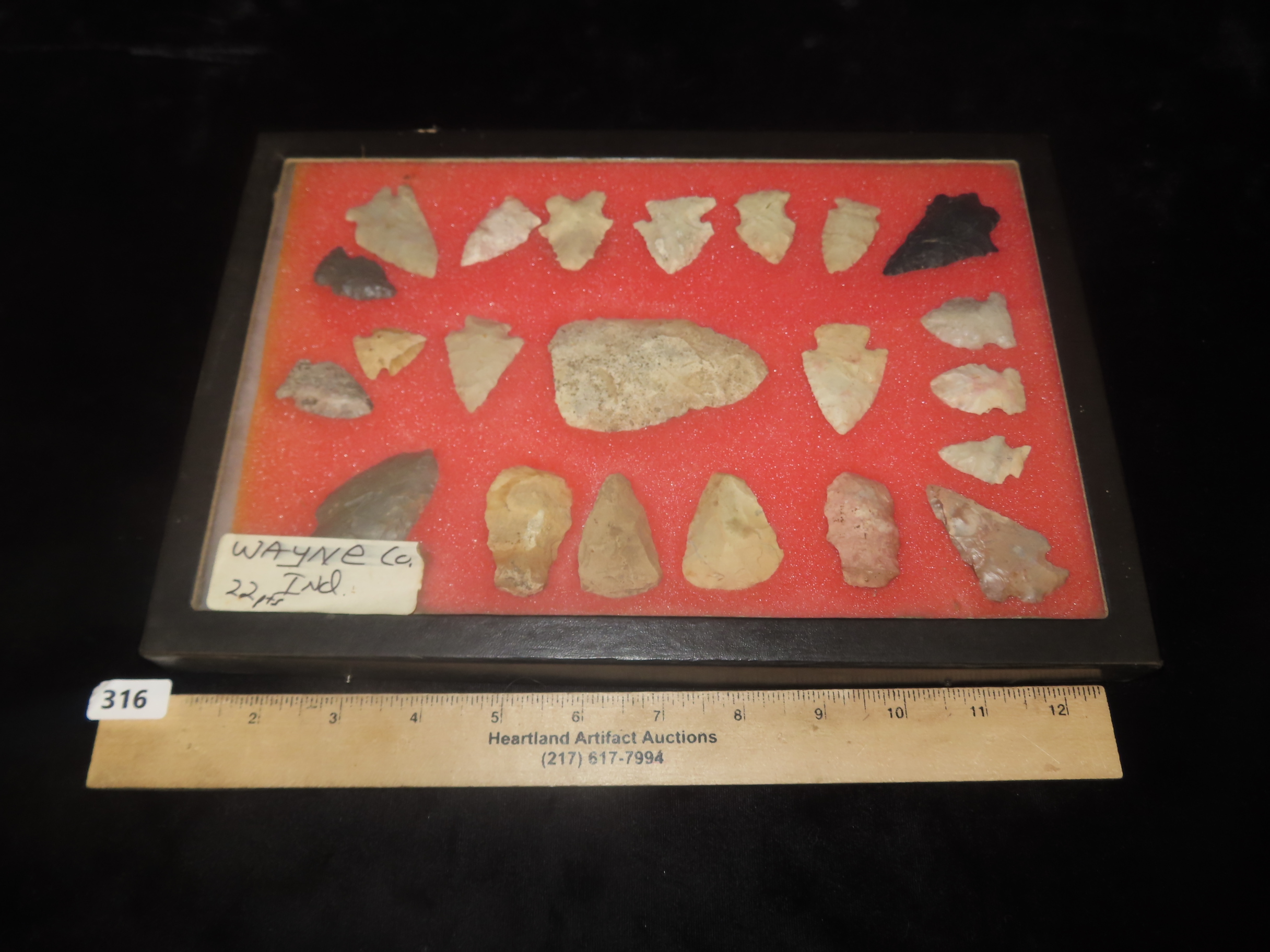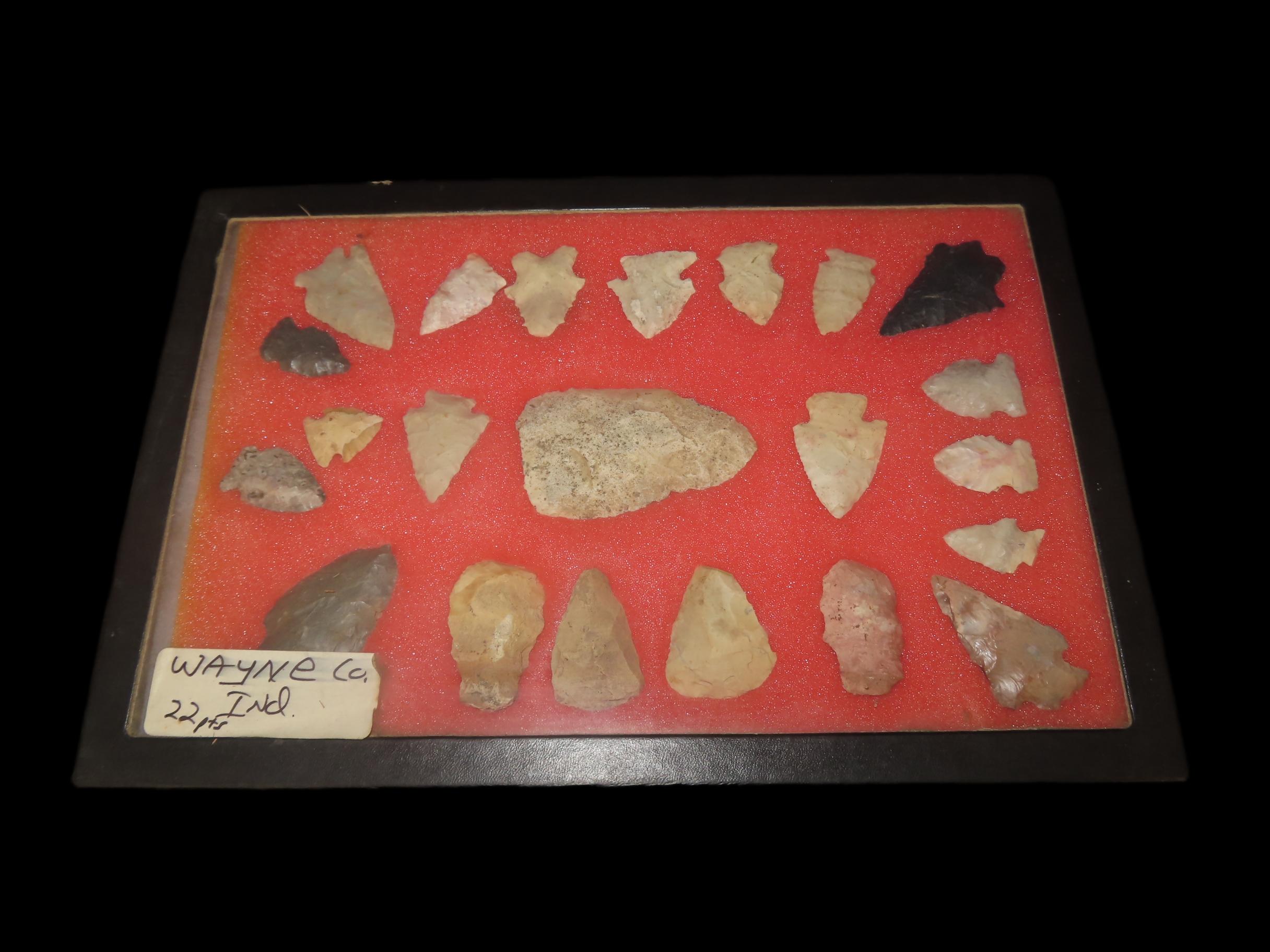 12 3/8″ X 8 3/8″ Frame of 22 Arrowheads From Wayne County Indiana