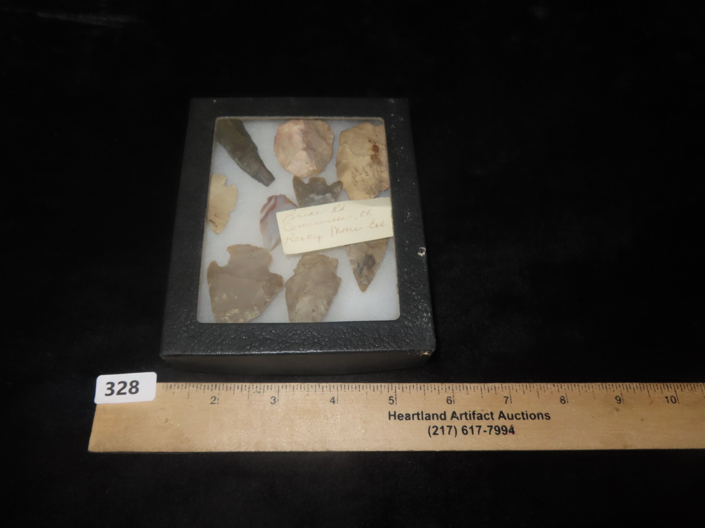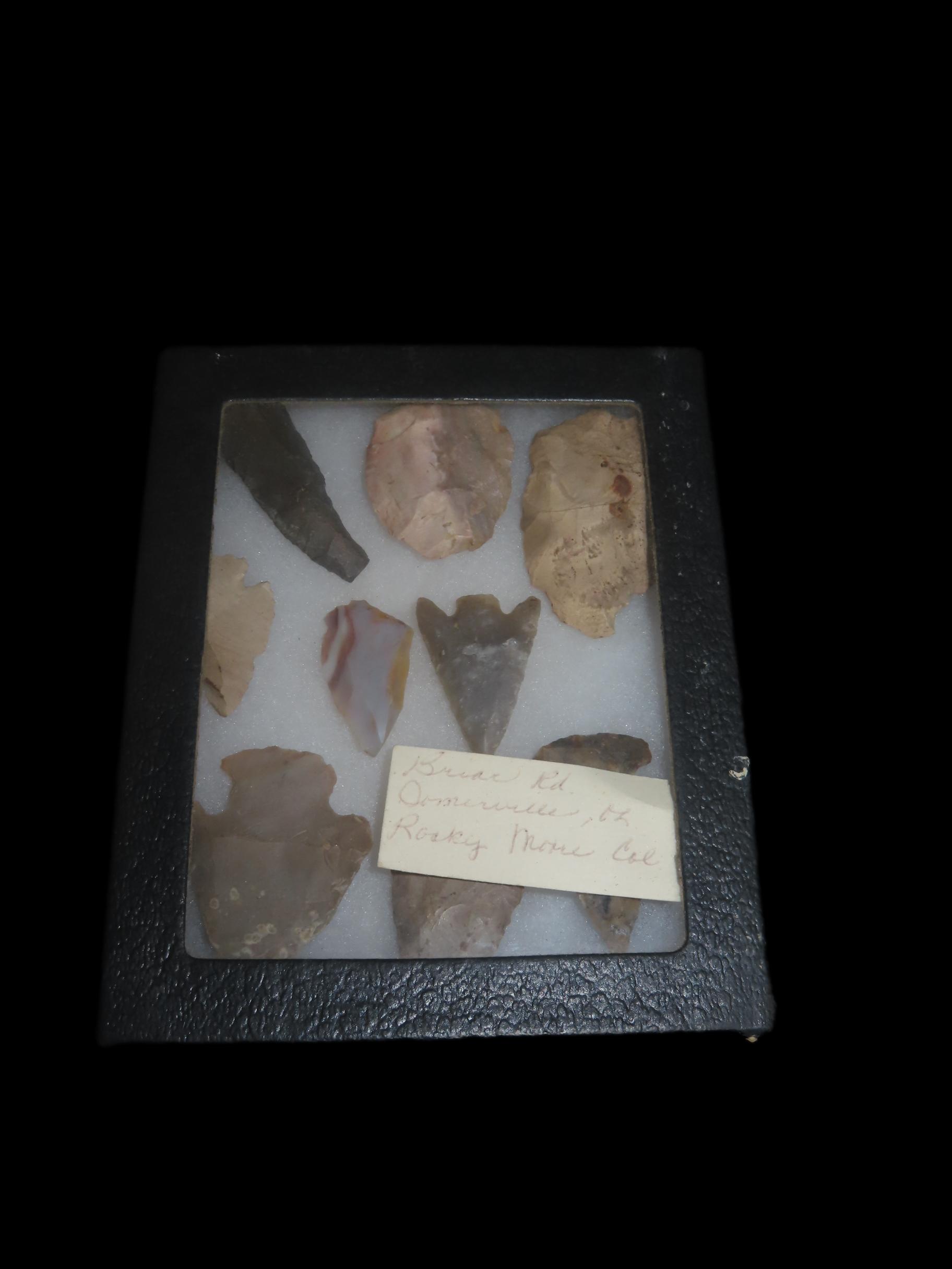 5 5/8″ X 4 9/16″ Frame Containing Arrowheads from Briar Road, Summersville Oh. Ex Rocky Moore Collection