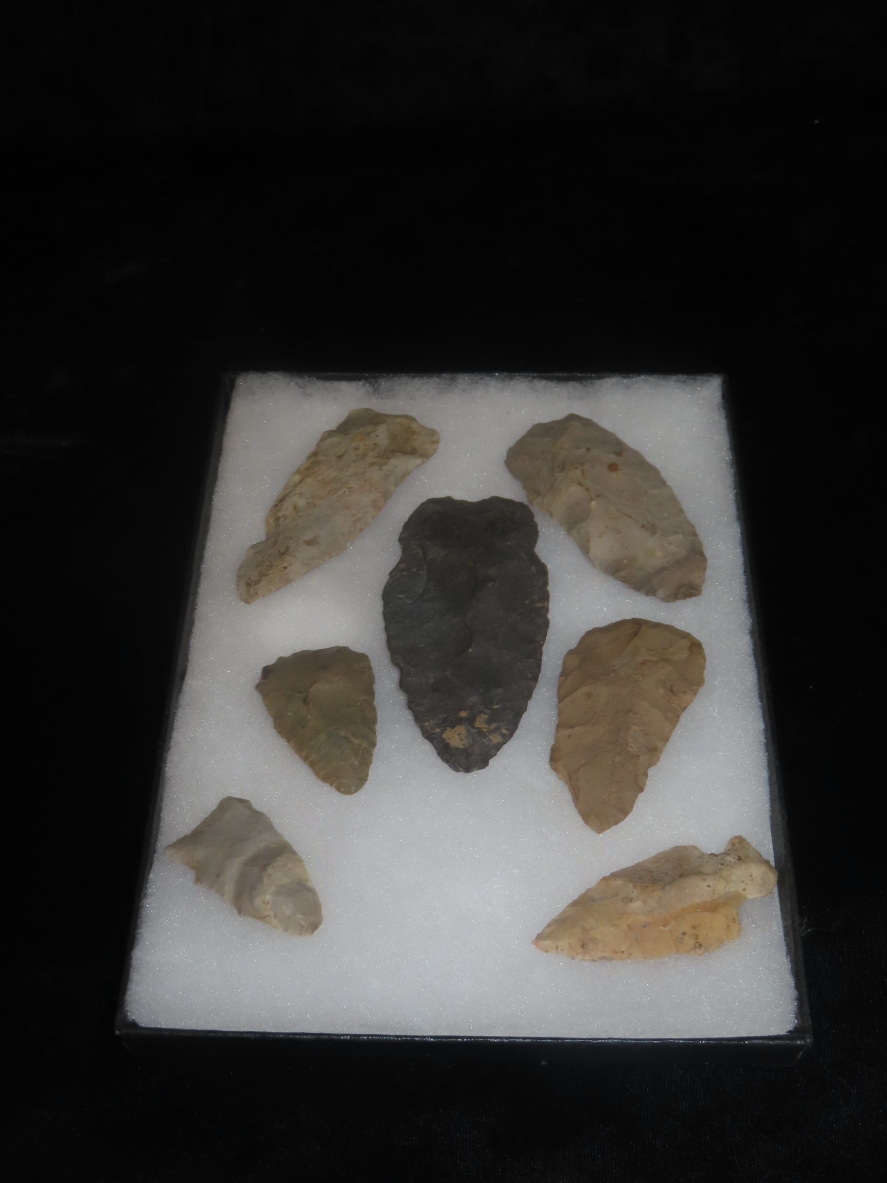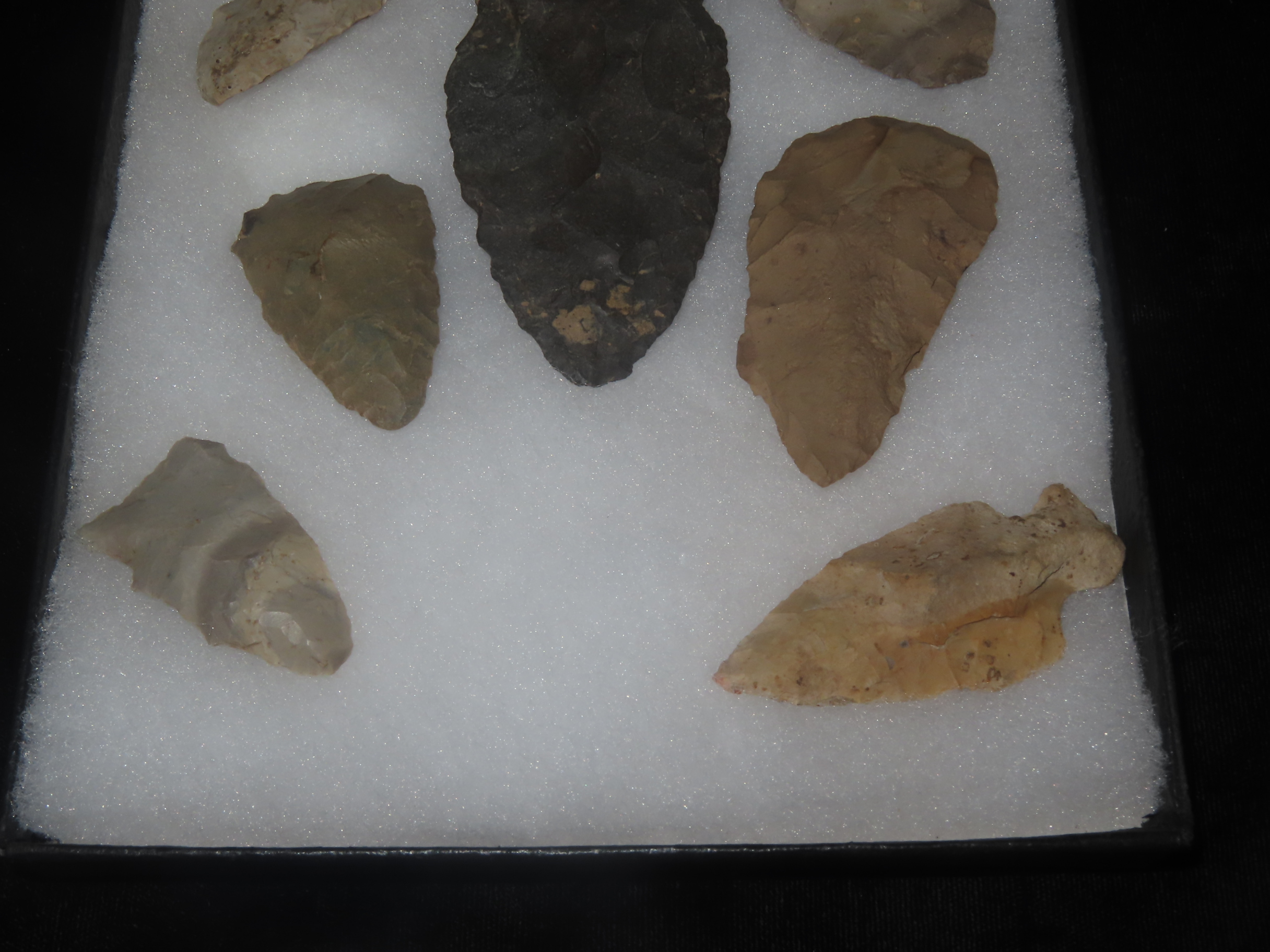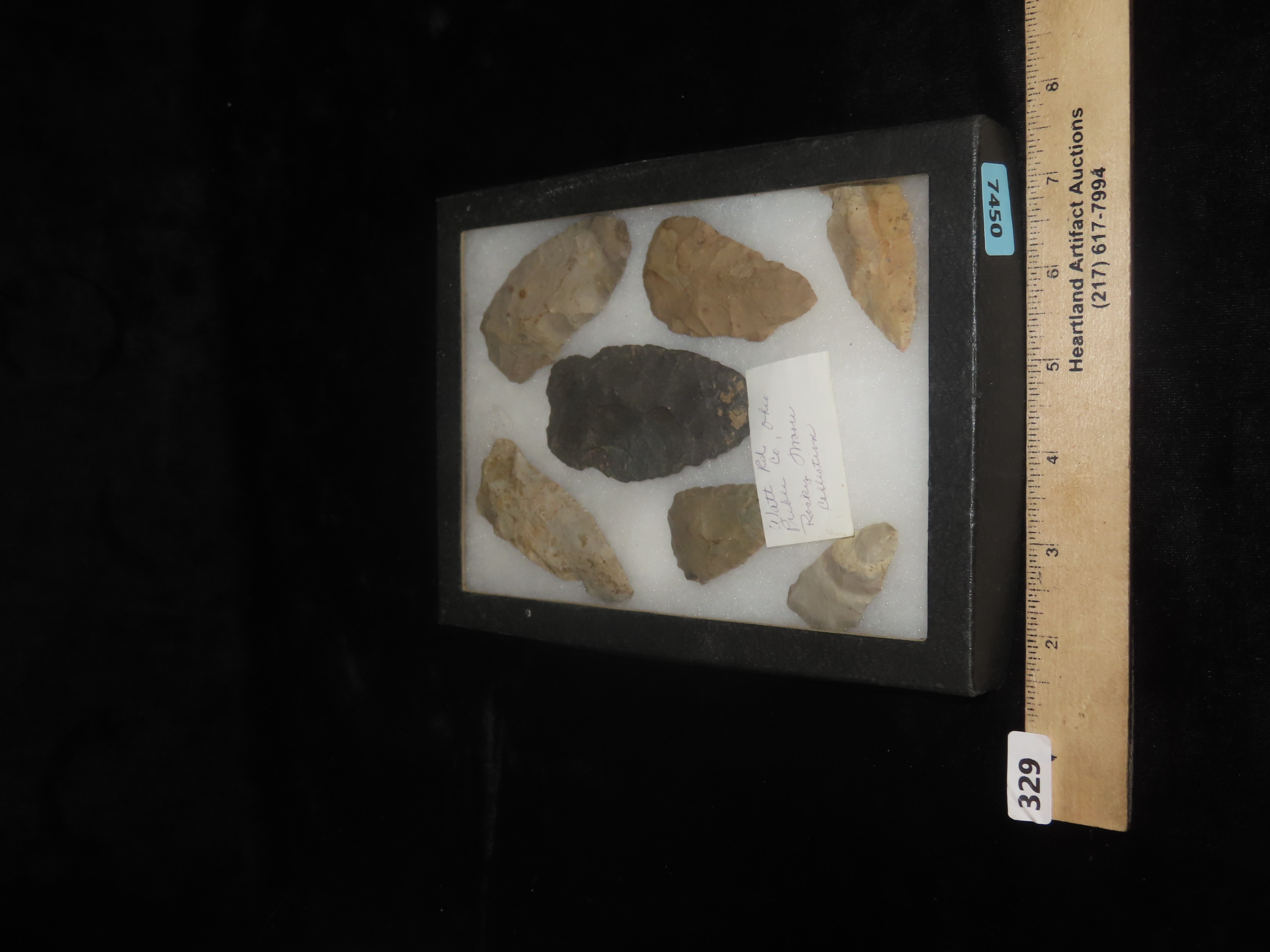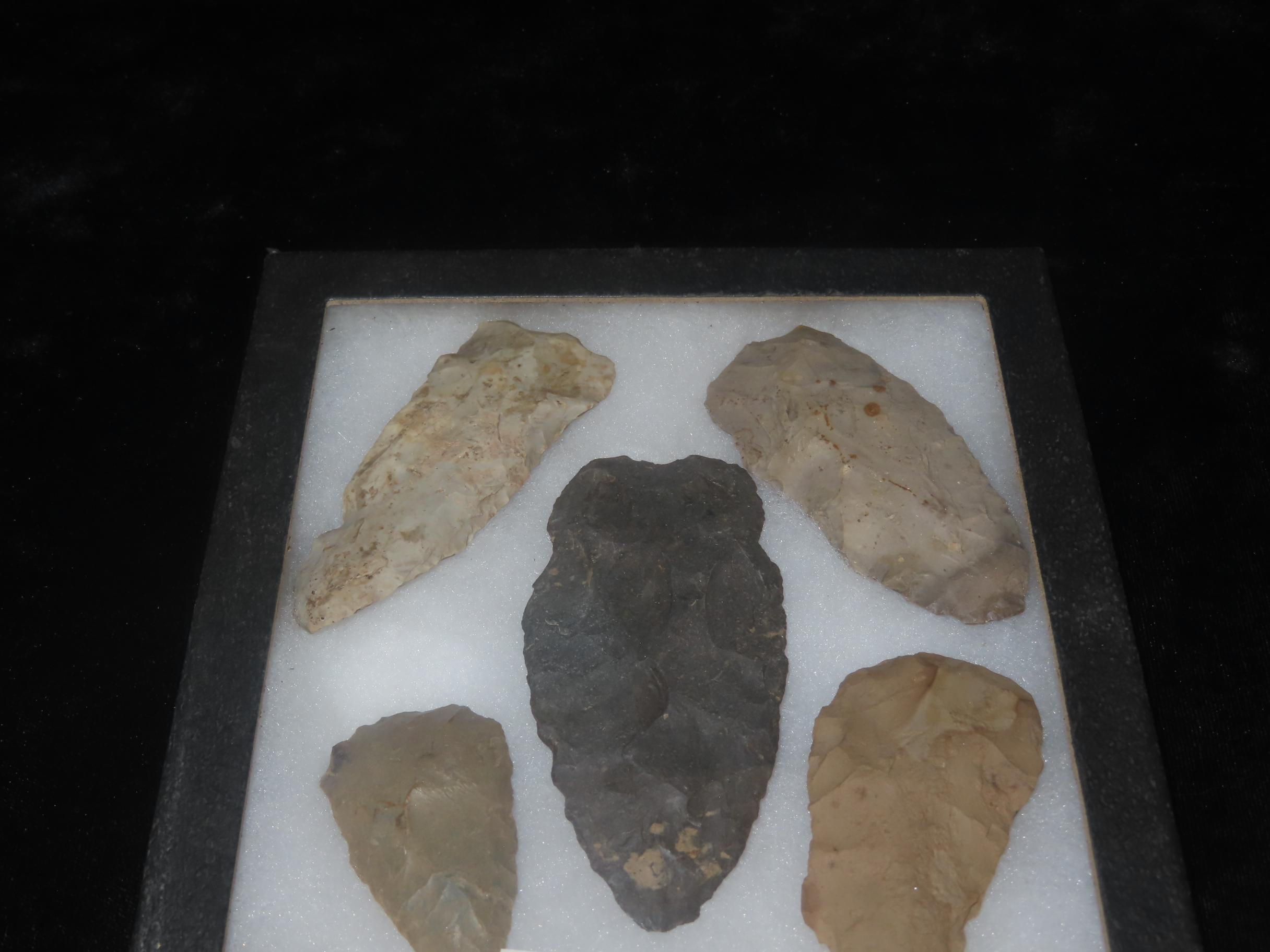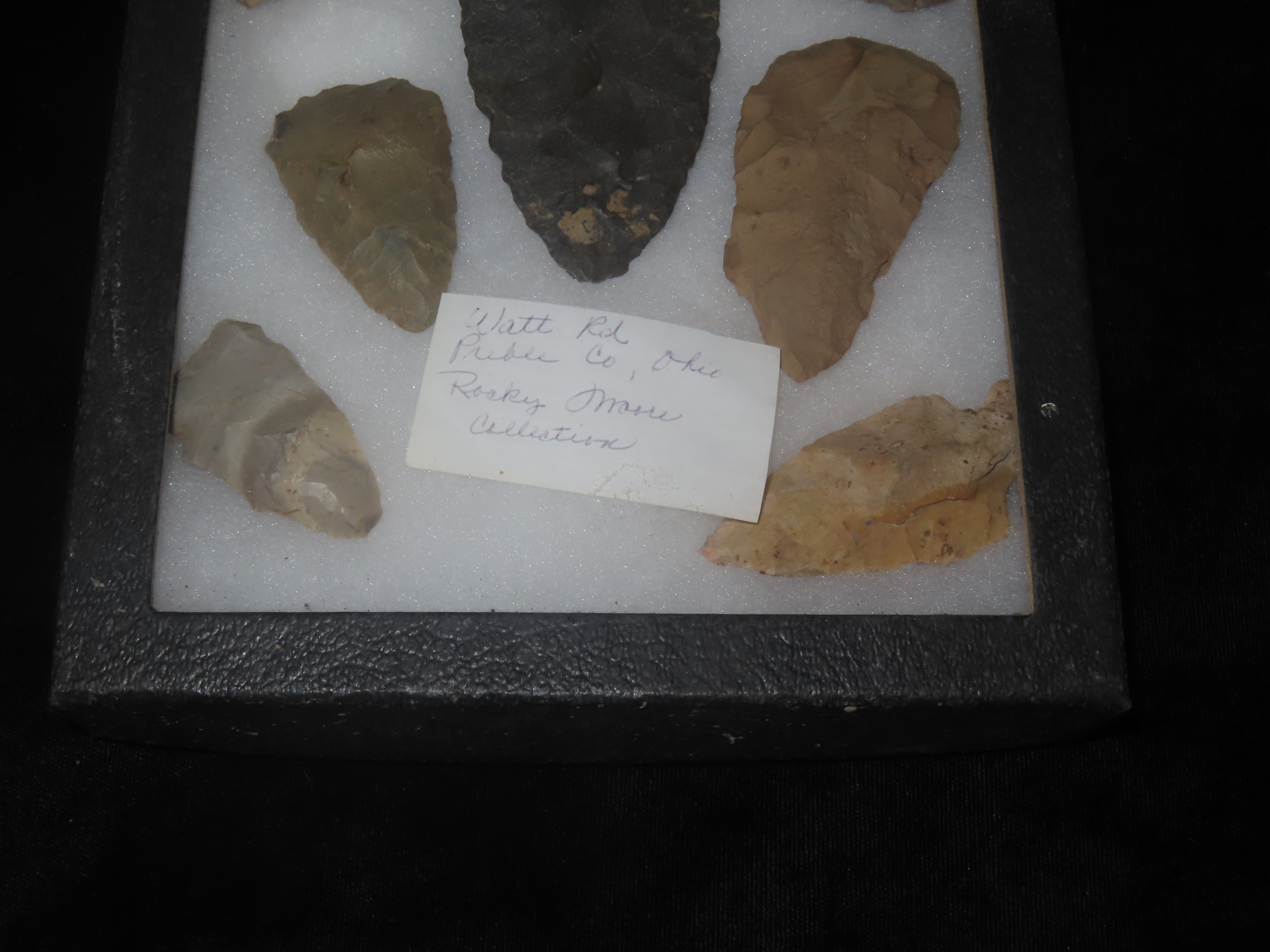 8 1/4″ X 6 1/4″ Frame Containing Arrowheads from Watt Road, Preble County, Oh. Ex Rocky Moore Collection
