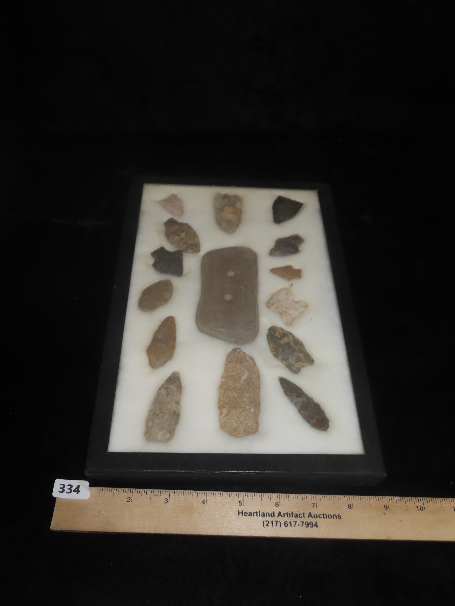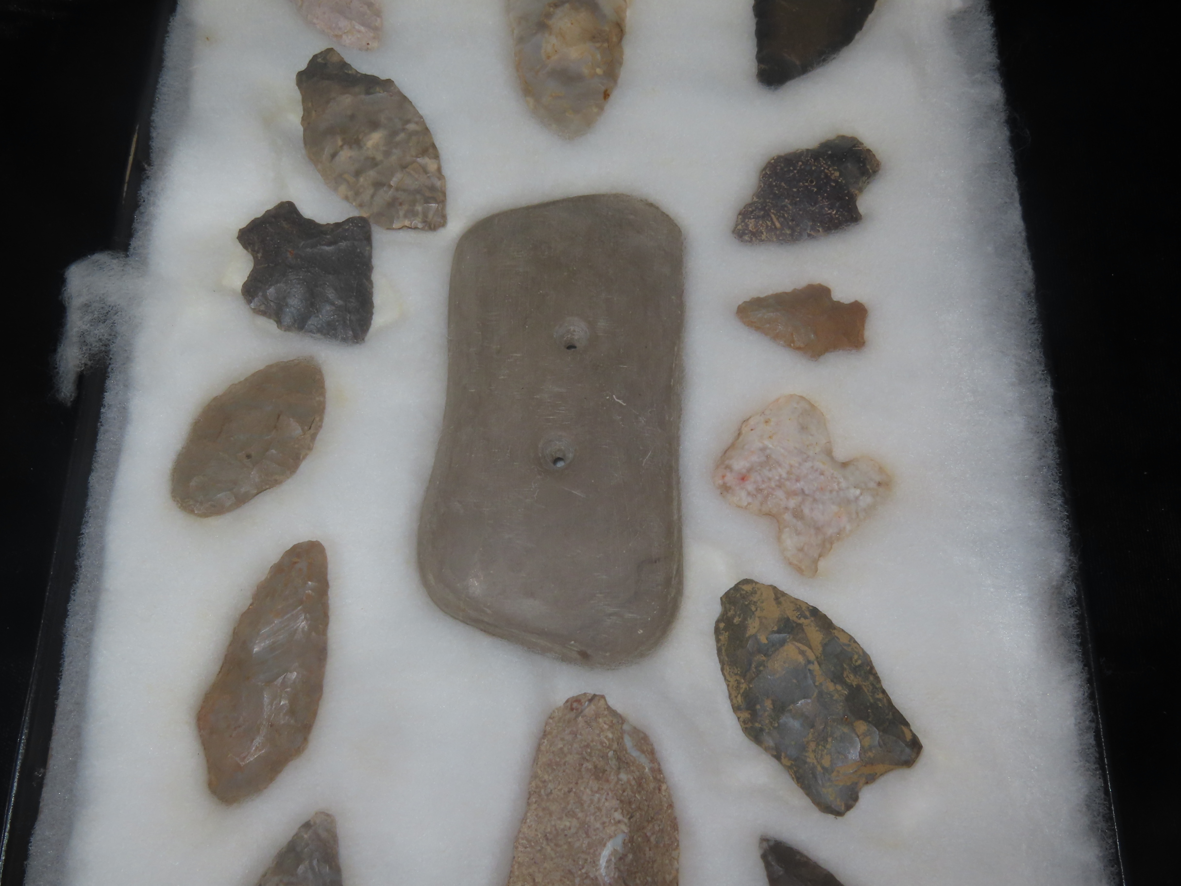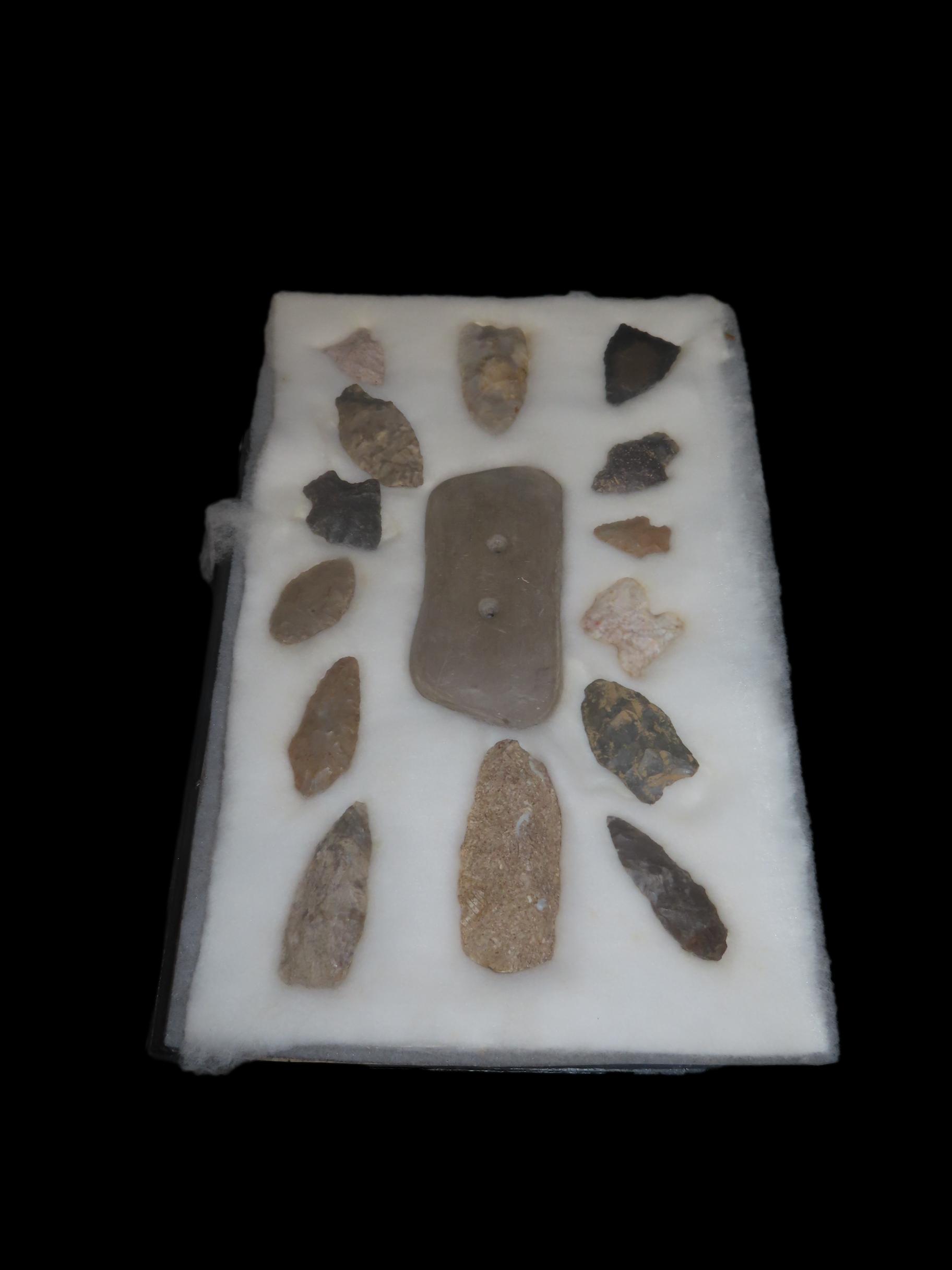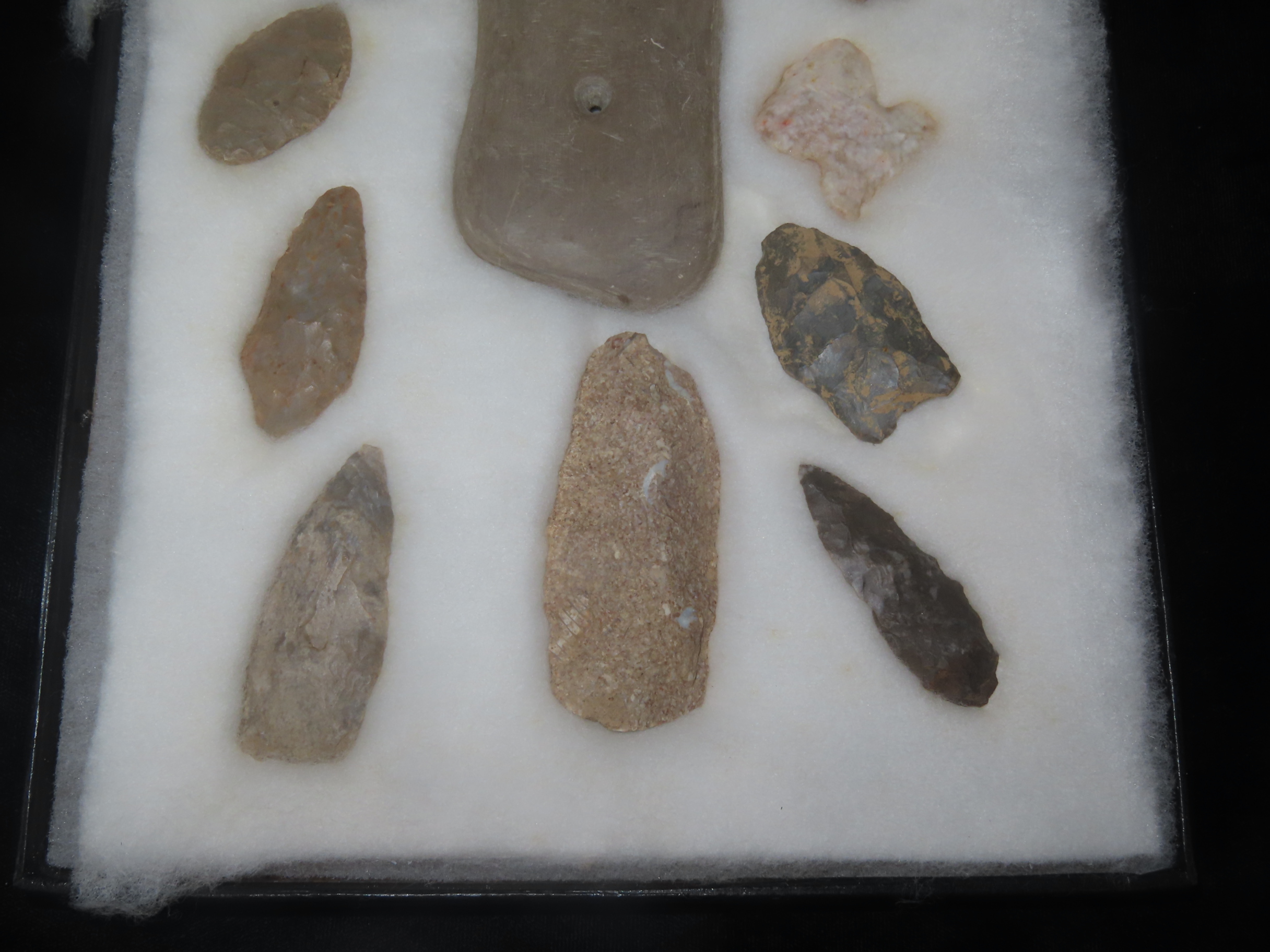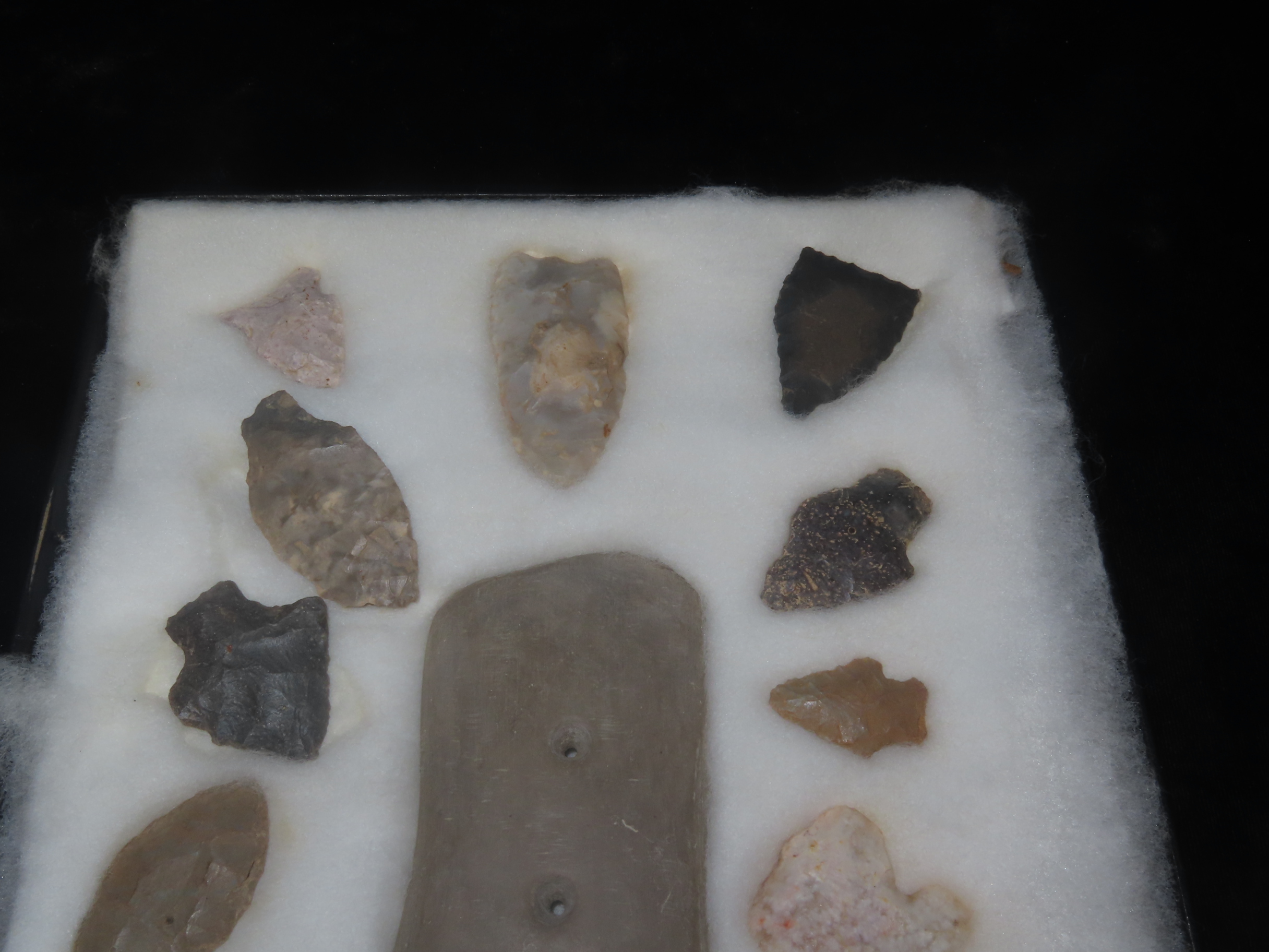 12 1/4" X 8 1/4" Frame of Arrowheads and Stone Gorget