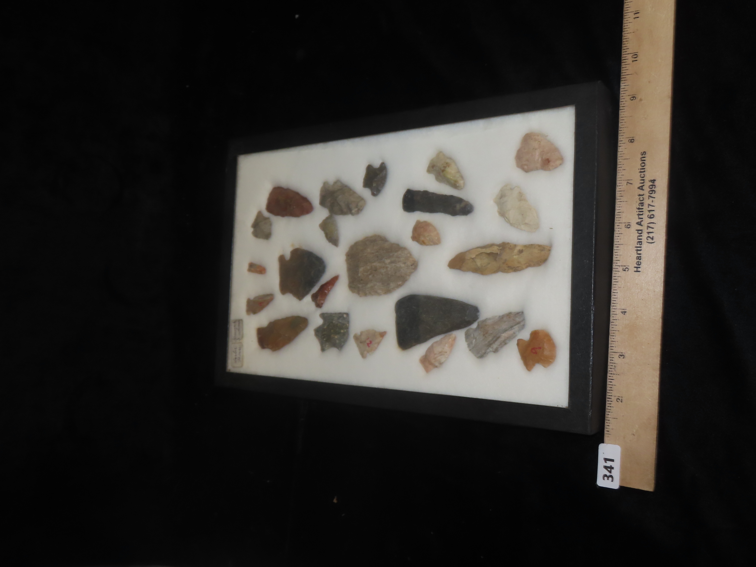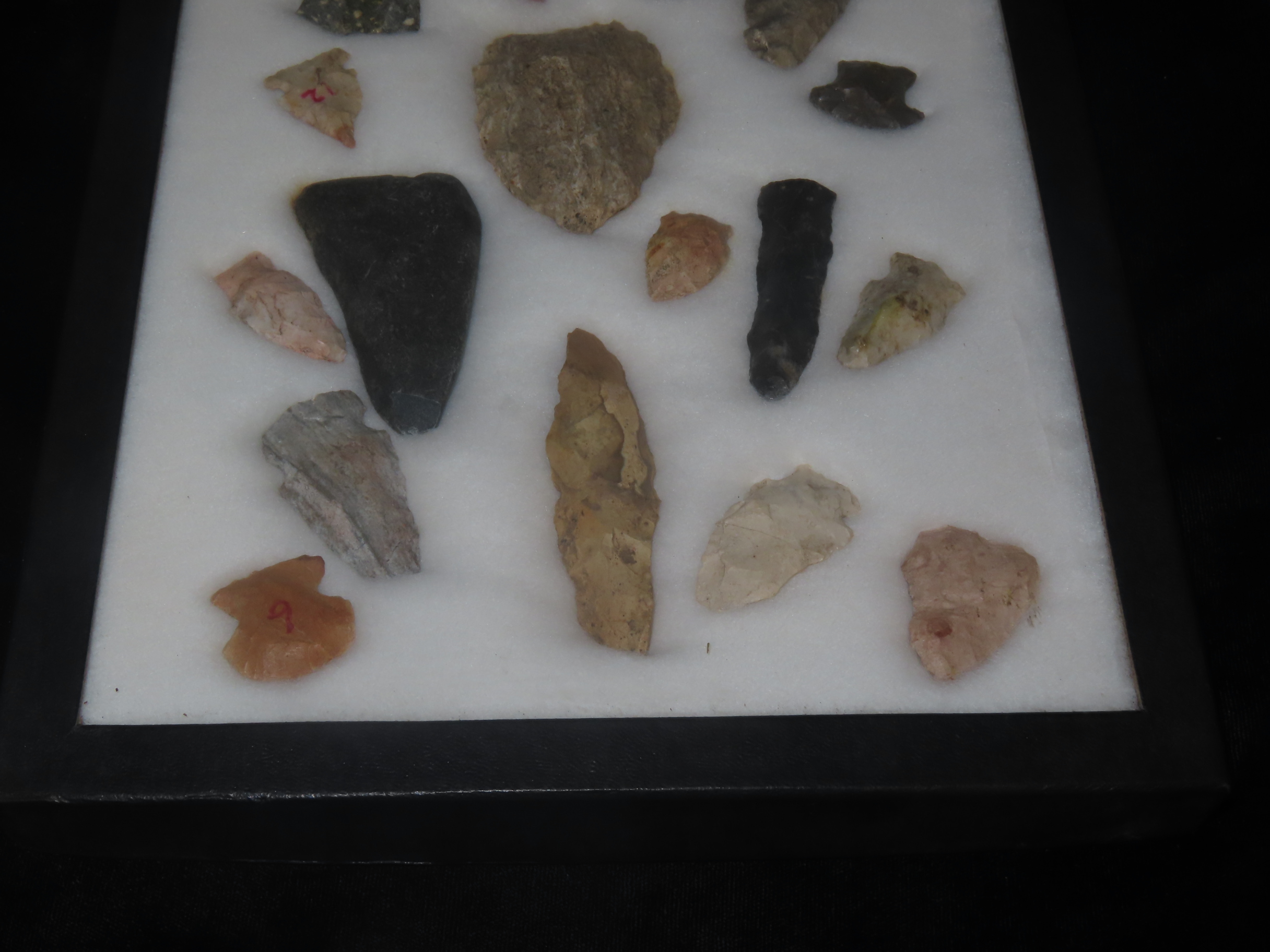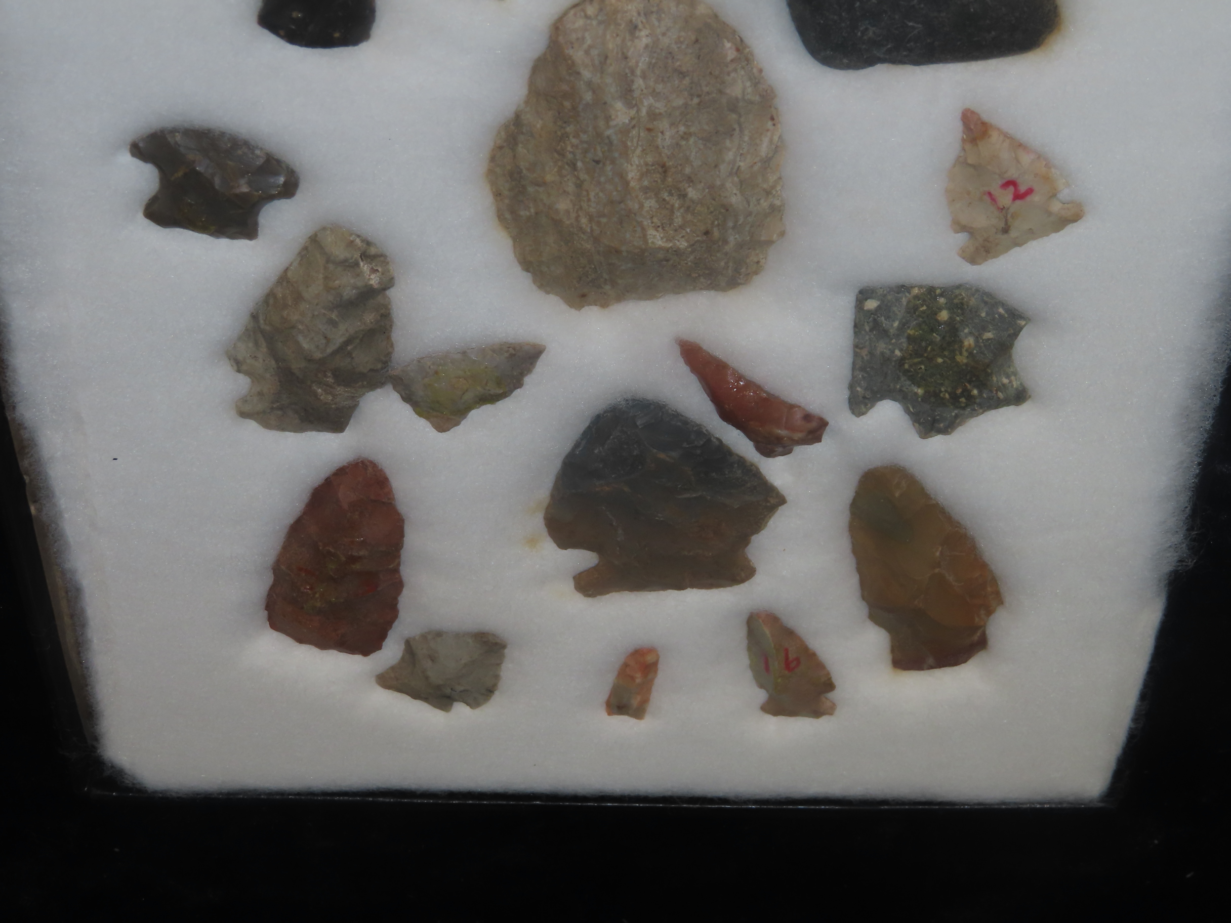 12 1/4" X 8 1/4" Frame of Arrowheads Found in Indiana
