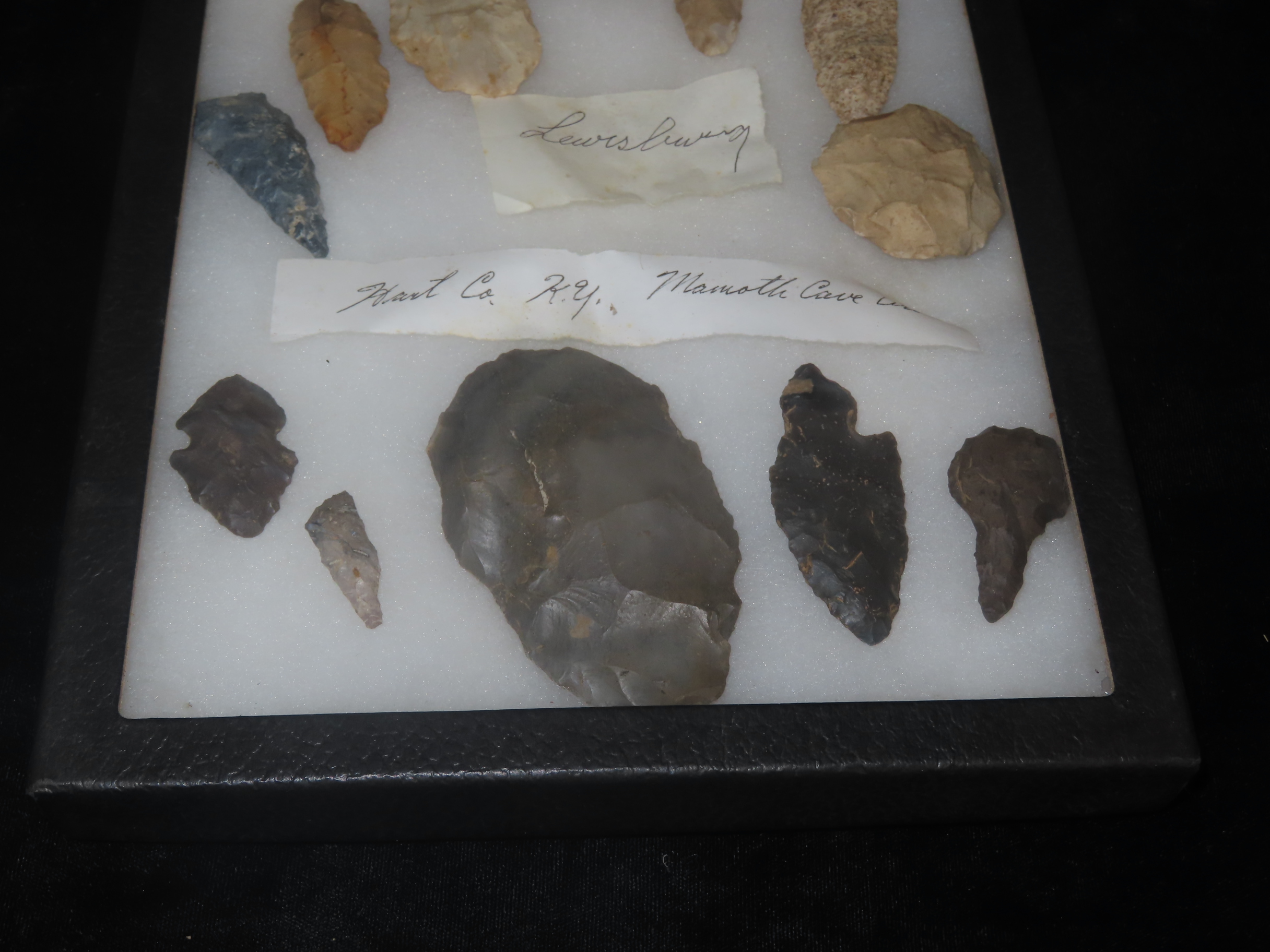 12 1/4″ X 8 1/4″ Frame of Points and Blades Found in Hart County Kentucky, Near Mammoth Cave