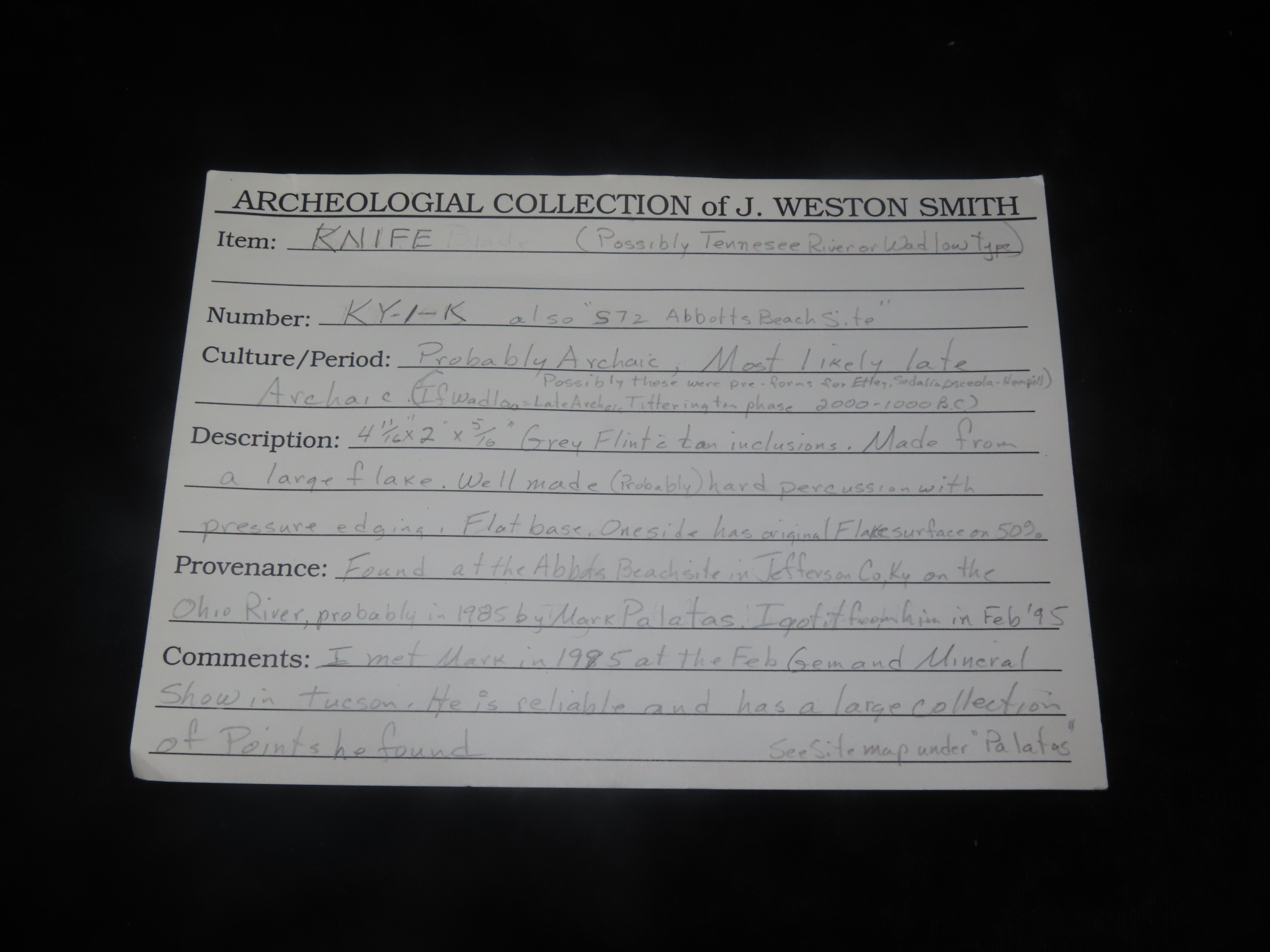 4 11/16″ X 5/16″ Knife, Grey Flint, Found in Jefferson Co KY