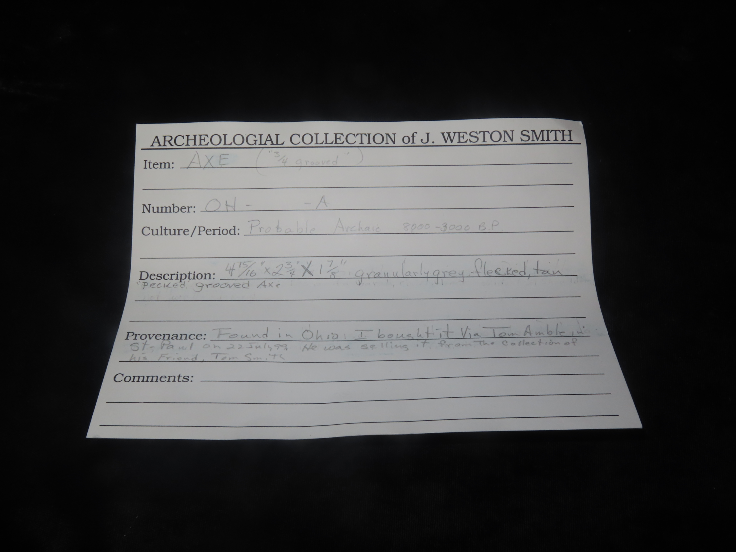 4 15/16″ X 2 3/4″ Axe, Granular Flecked Grey, Found in OH