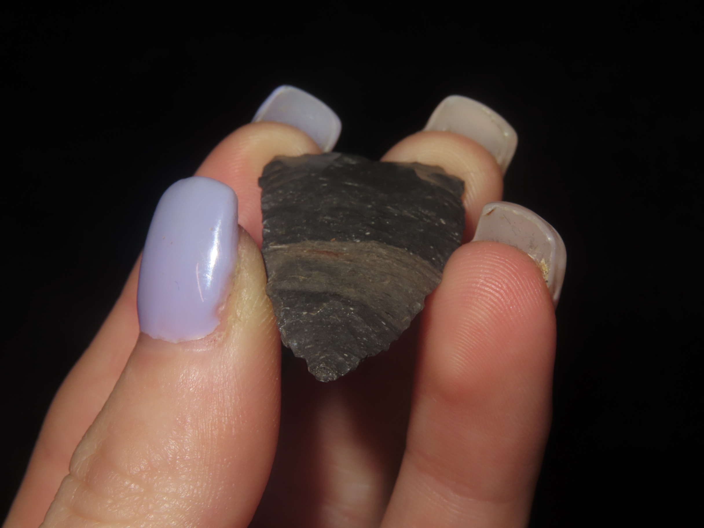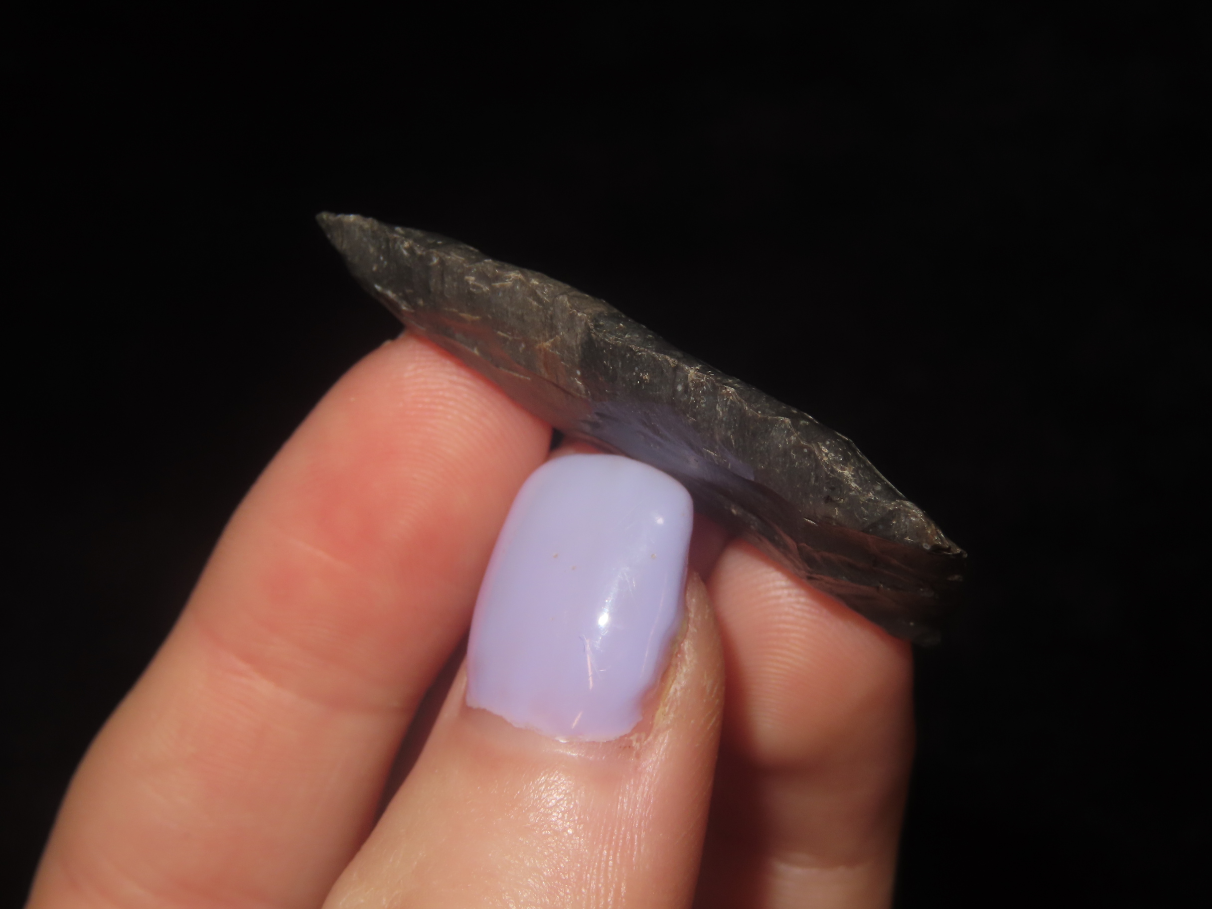 1 9/16″ X 13/16″ X 1/8″ Padilla Point, Black Flint, Found near Roswell NM