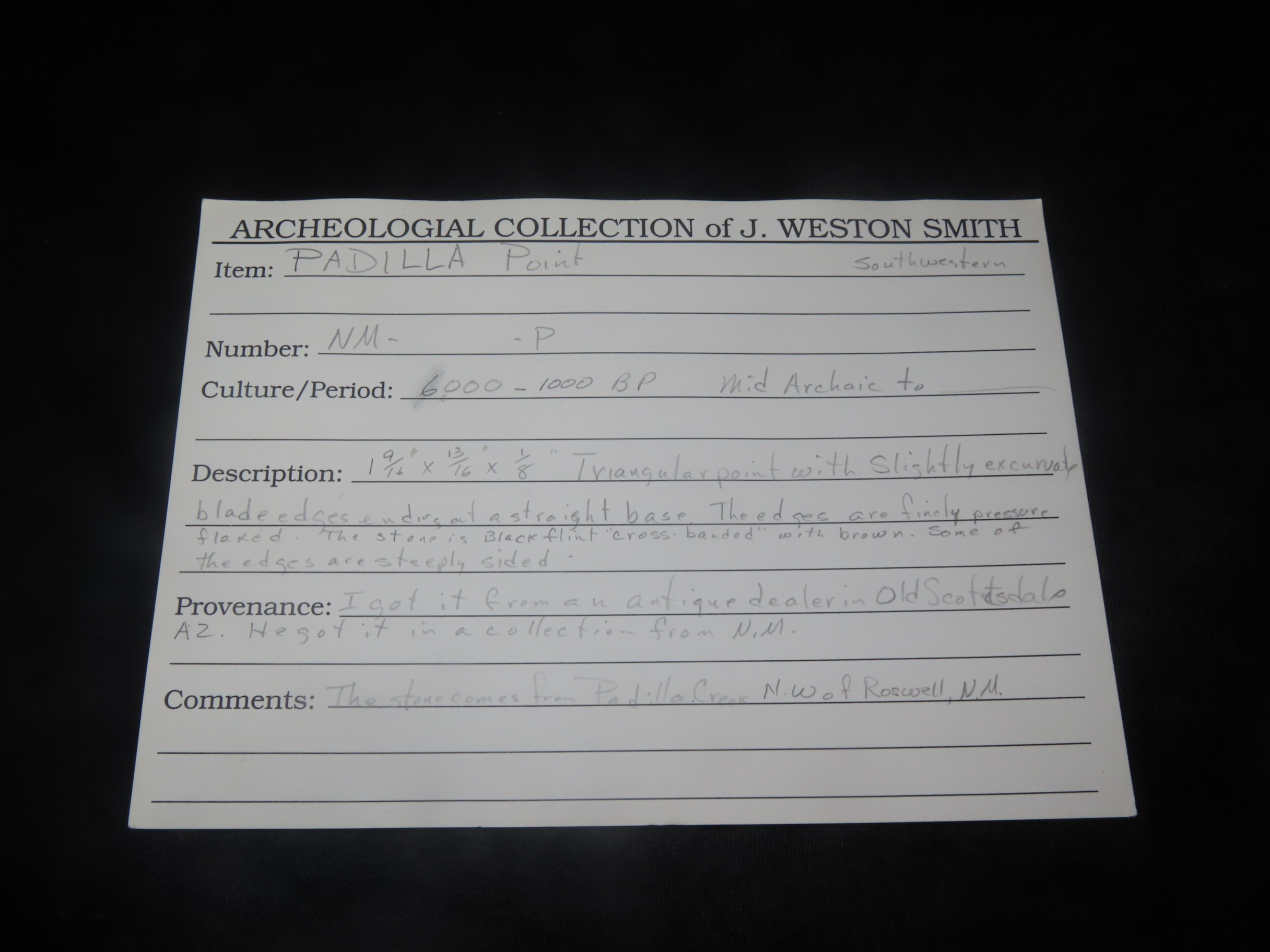 1 9/16" X 13/16" X 1/8" Padilla Point, Black Flint, Found near Roswell NM
