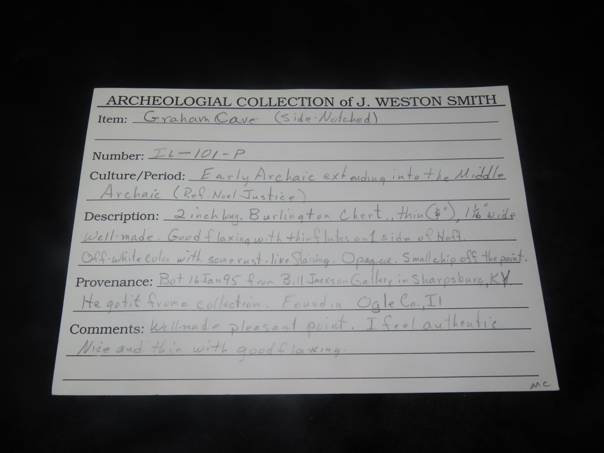 2″ x 1 1/16″ Graham Cave (Side Notched), Burlington Chert, Found Ogle Co IL