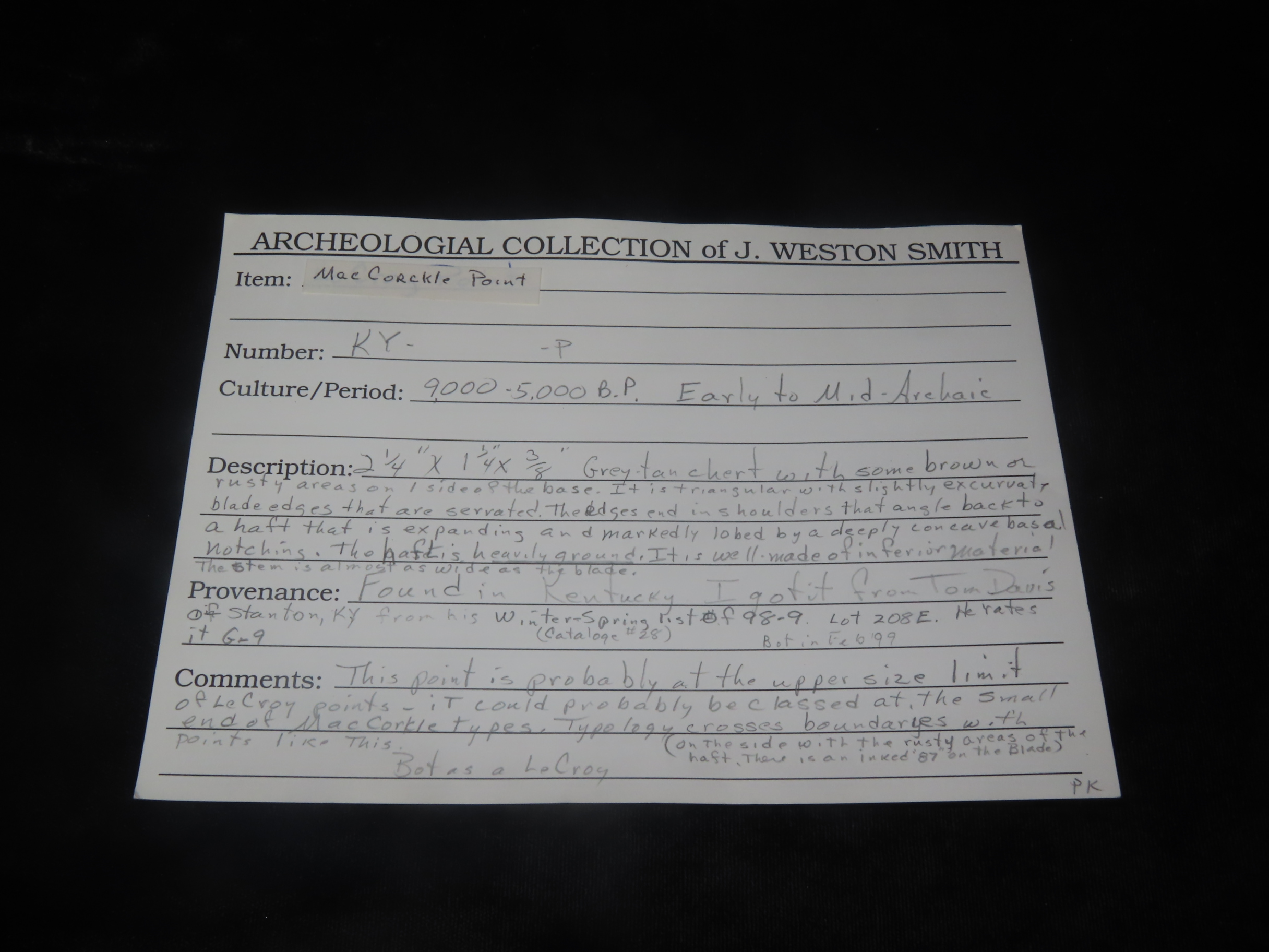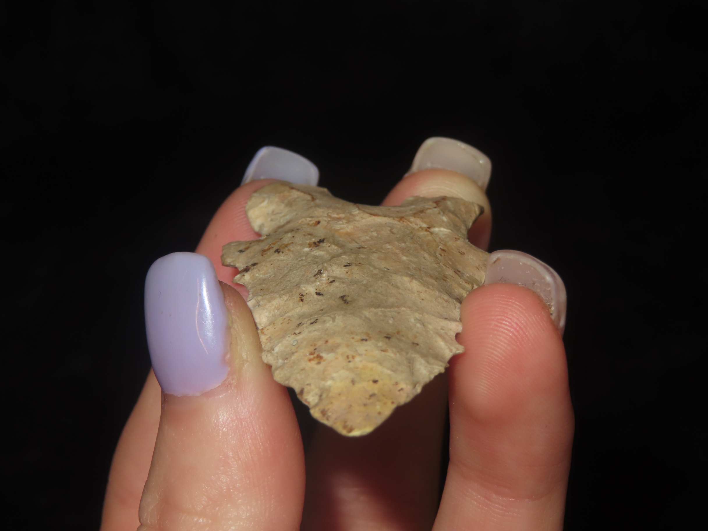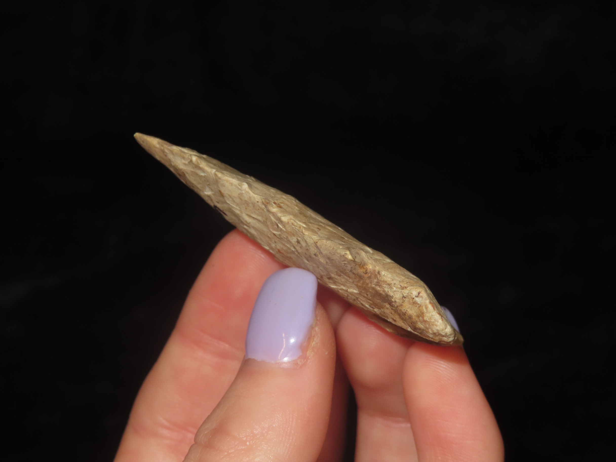2 1/4″ X 1 1/4″ X 3/8″ LeCroy Point, Grey Tan Chert, Found in Kentucky