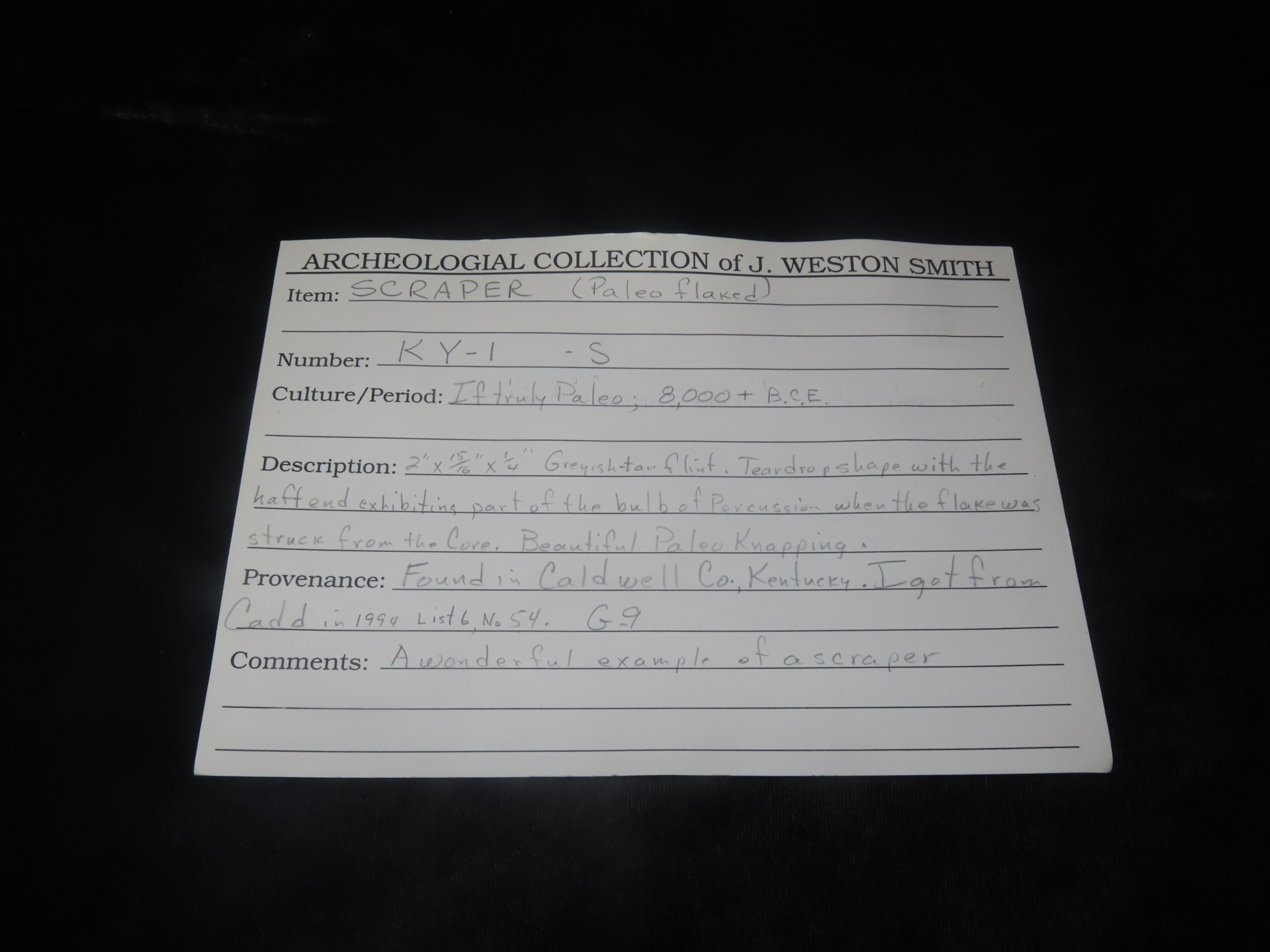 2″ X 15/16″ X 1/4″ Scraper, Greyish-Tan Chert, Found in Caldwell Co Kentucky