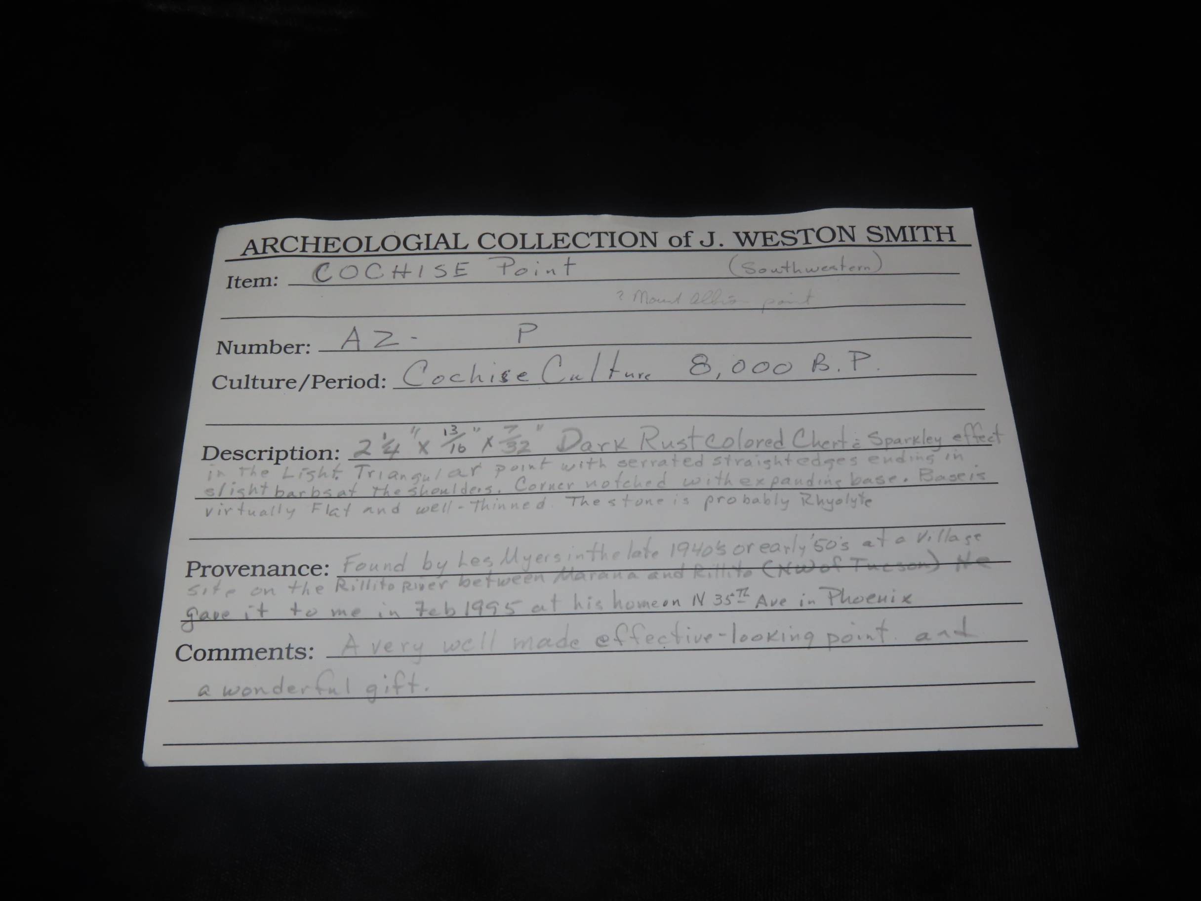 2 1/4″ X 13/16″ X 7/32″ Cochise Point, Rust Colored Chert, Found NW of Tuscon AZ