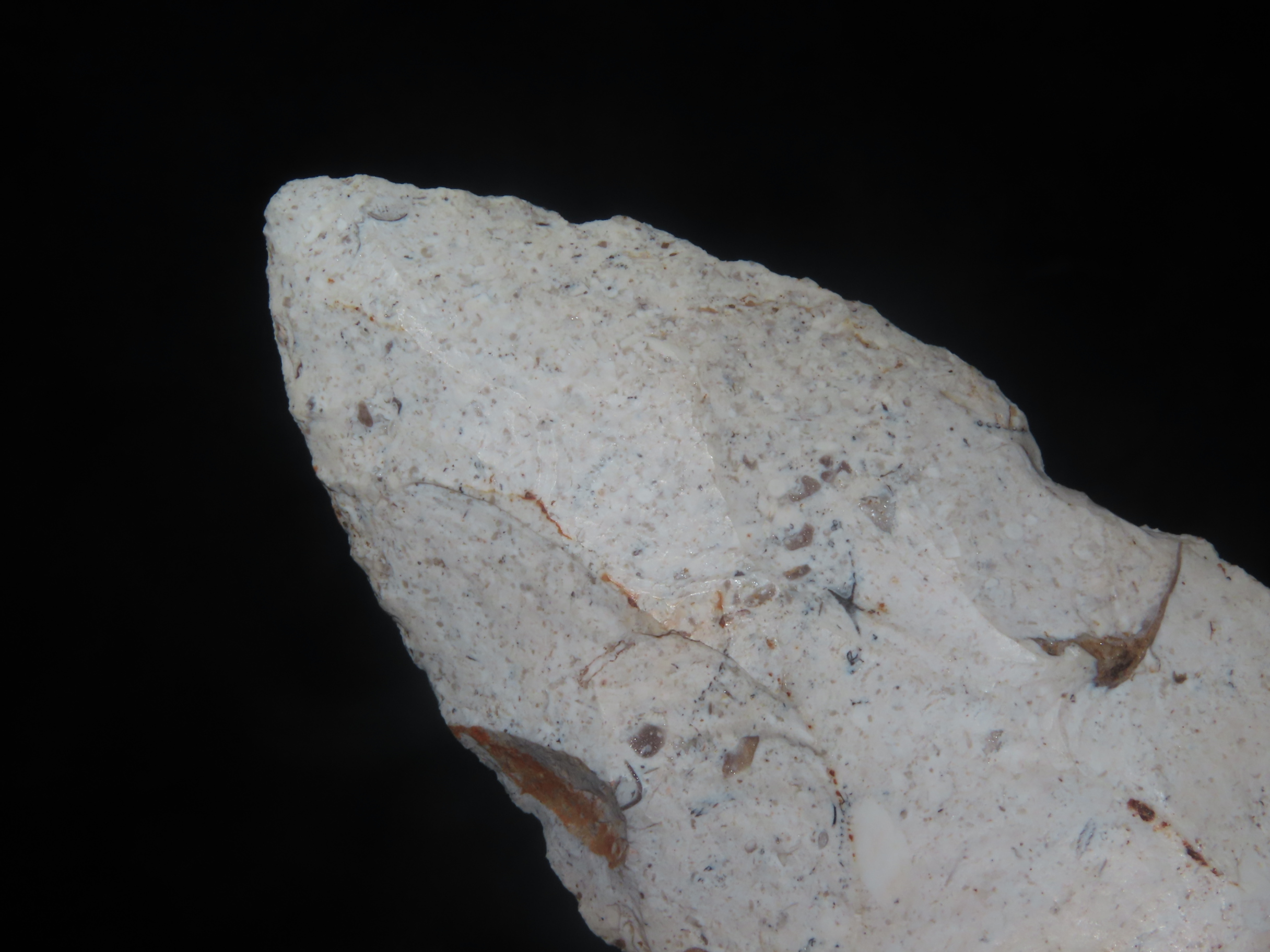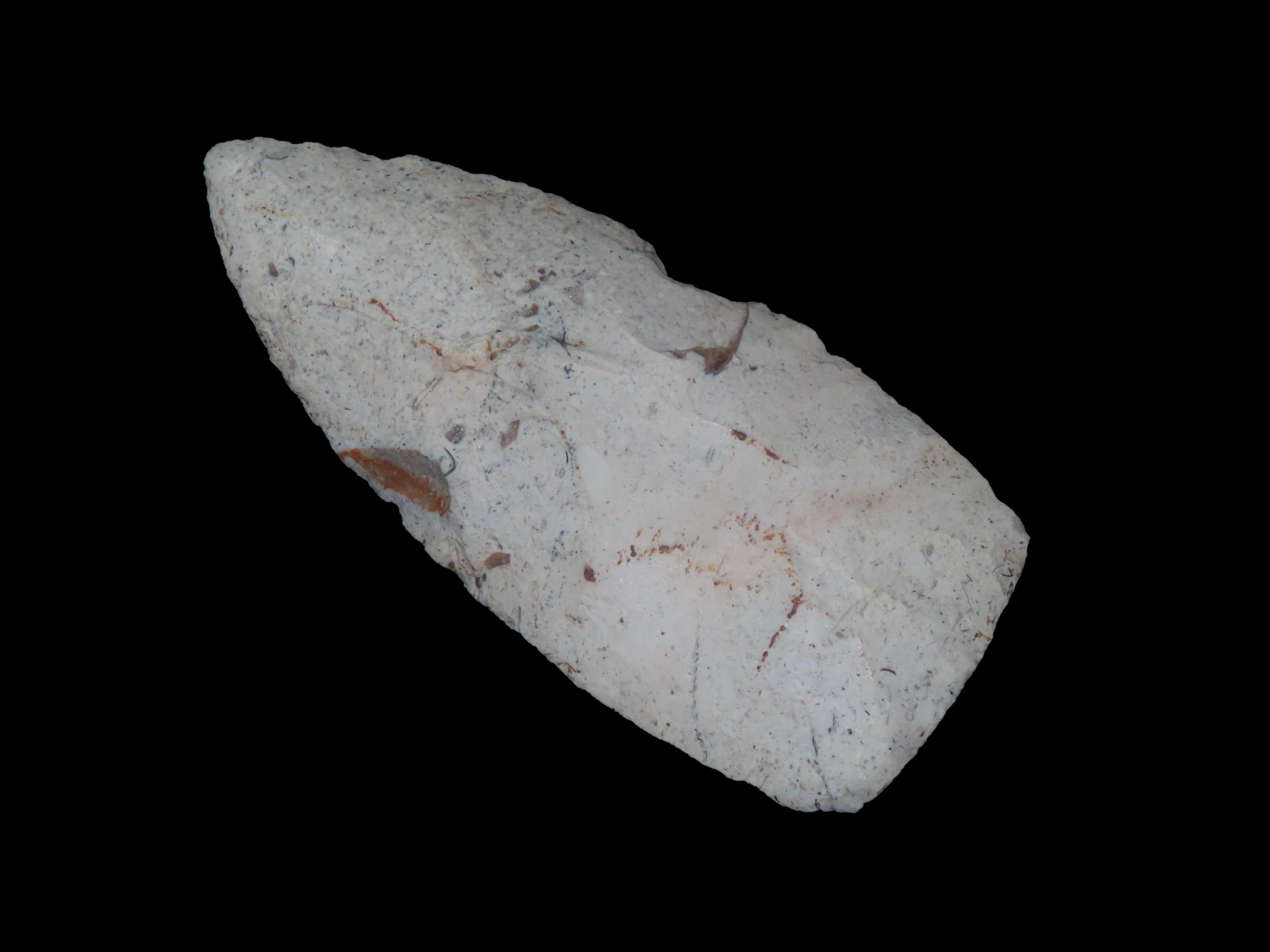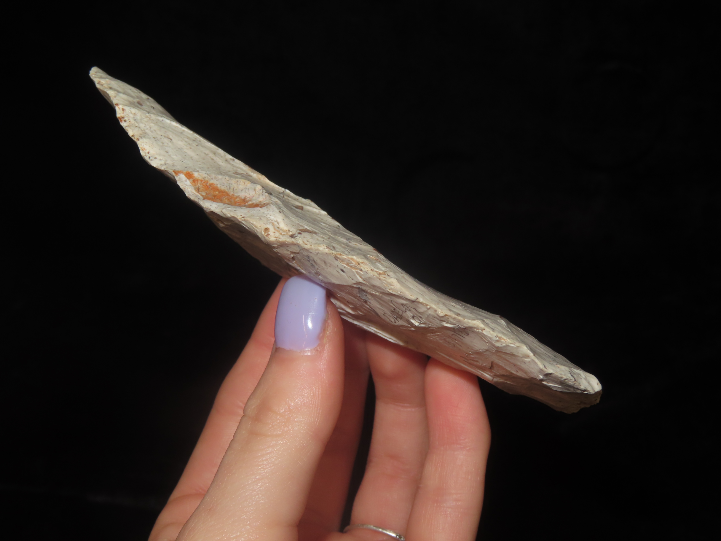 4 7/8″ X 2 1/4″ x 1/2″ Knife, White Patinaed Lanceolate, Found in Dade Co MO