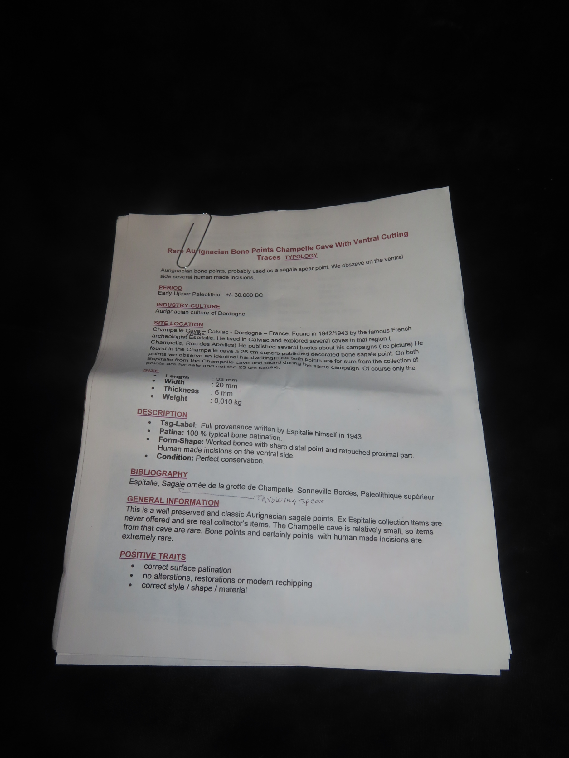 4 1/4″ X 3 /18″ Frame of Rare Bone Points, Champlle Cave With Ventrel Cutting Traces