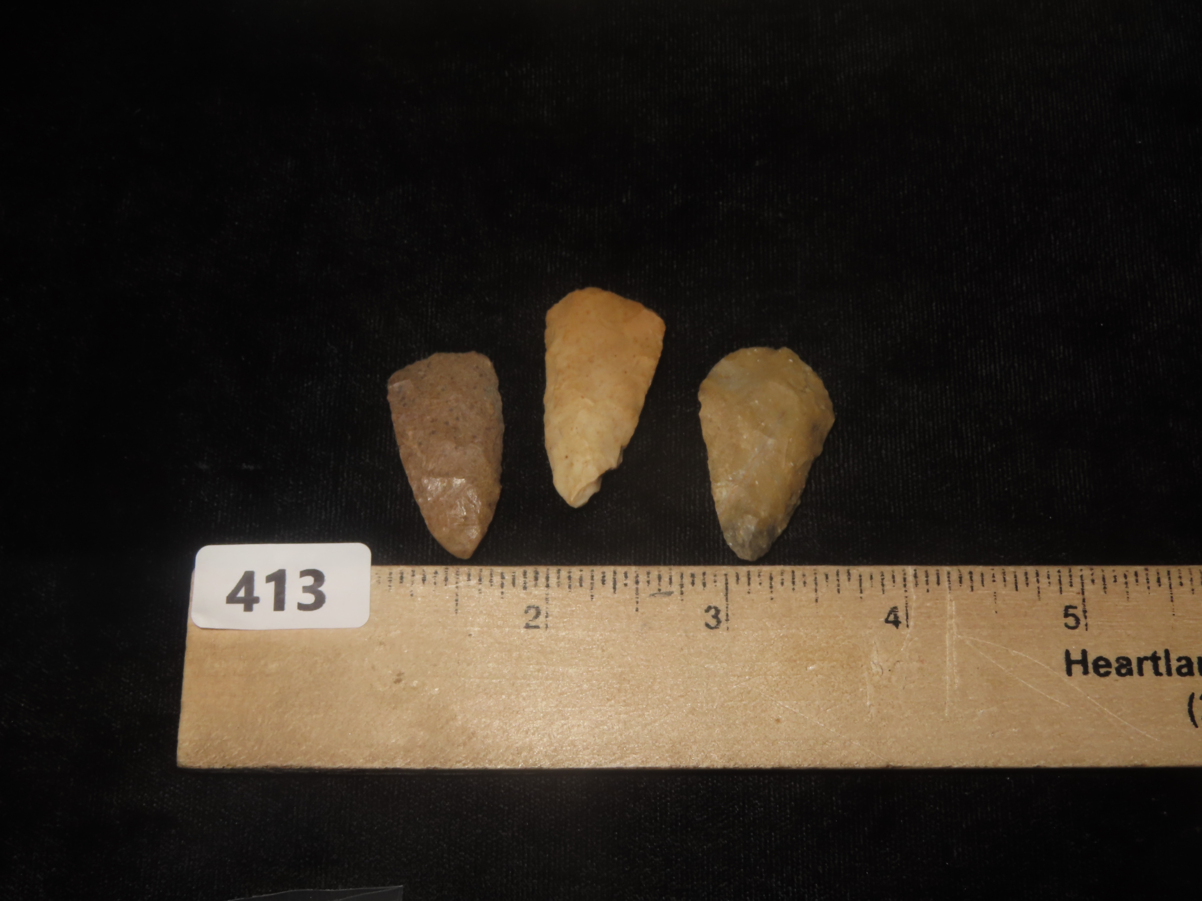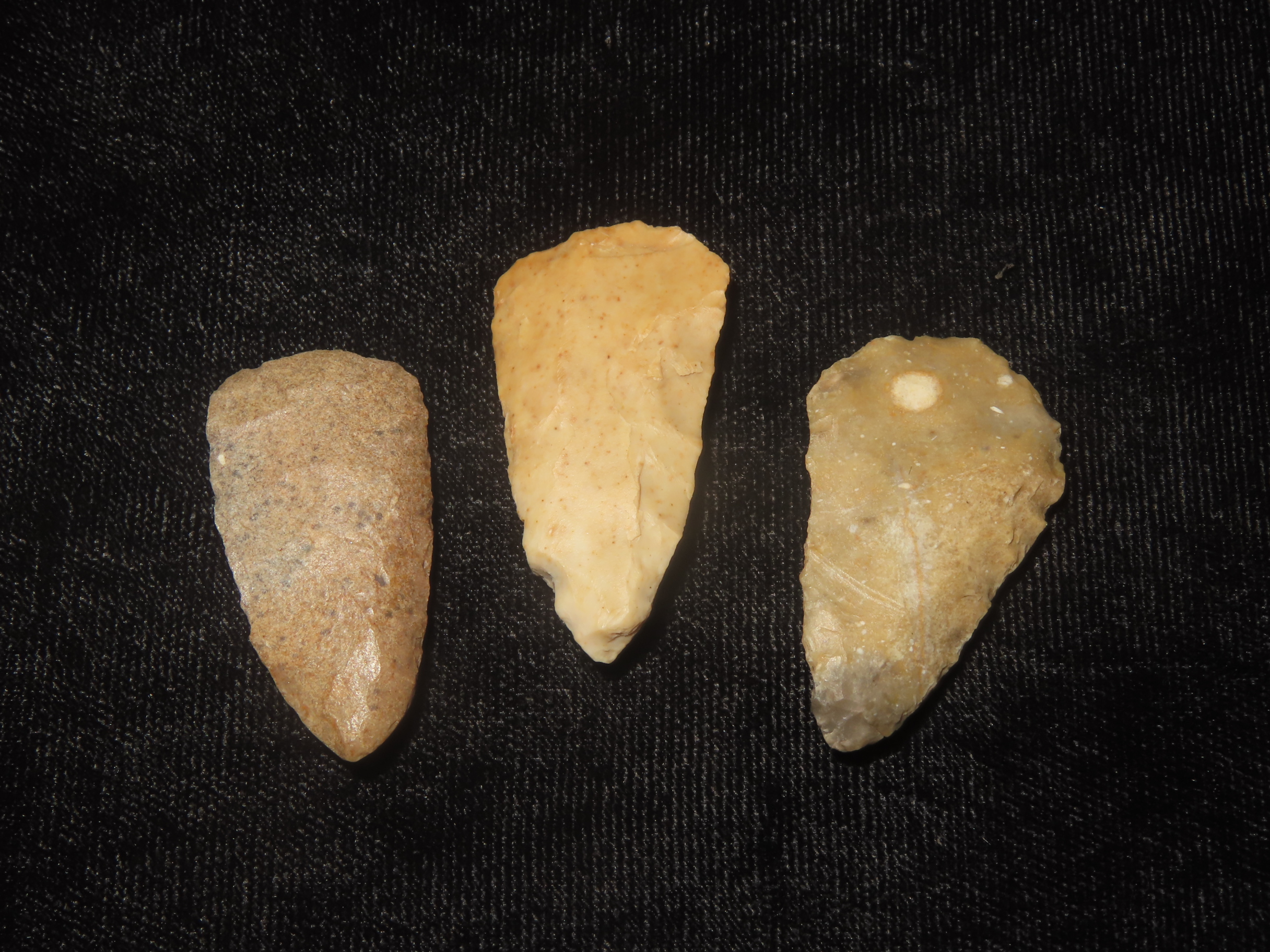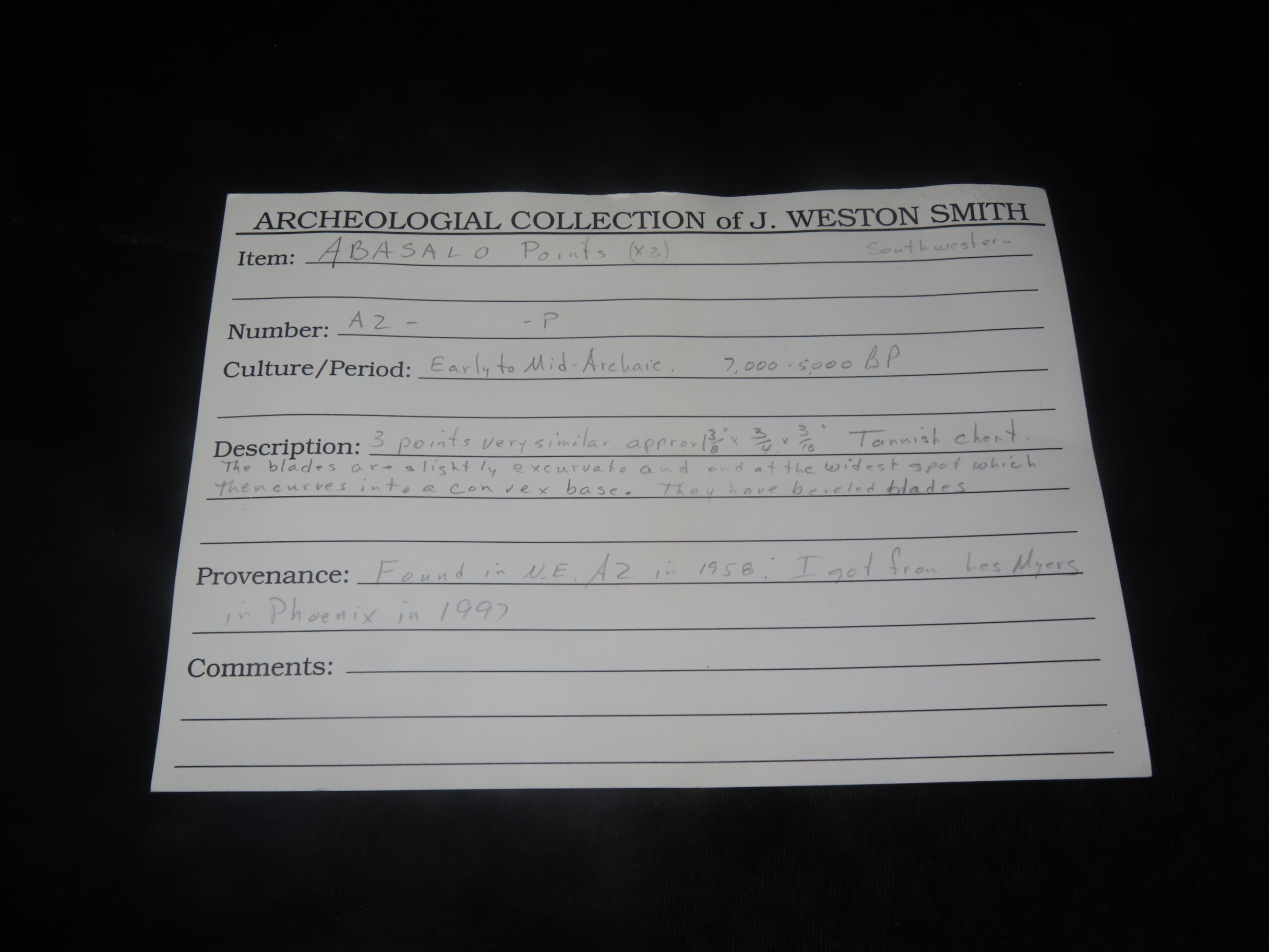 1 3/8″x3/4″x3/10″ Abasalo Points chert tannish found in N.E. AZ. 7000-5000 B.P.