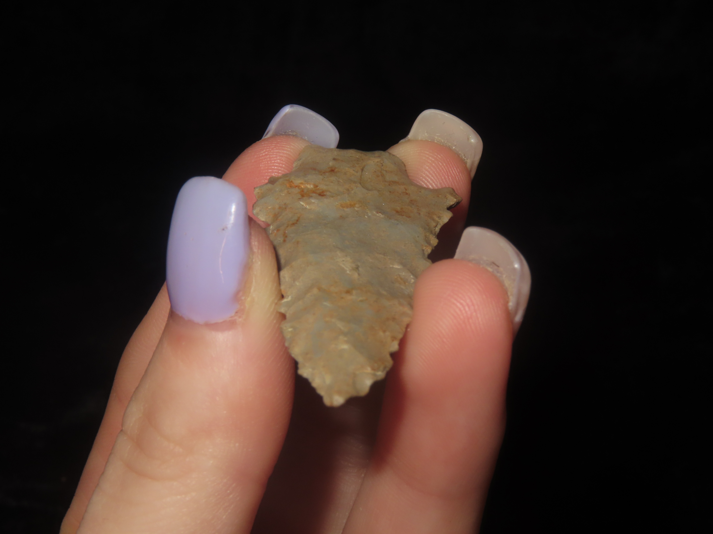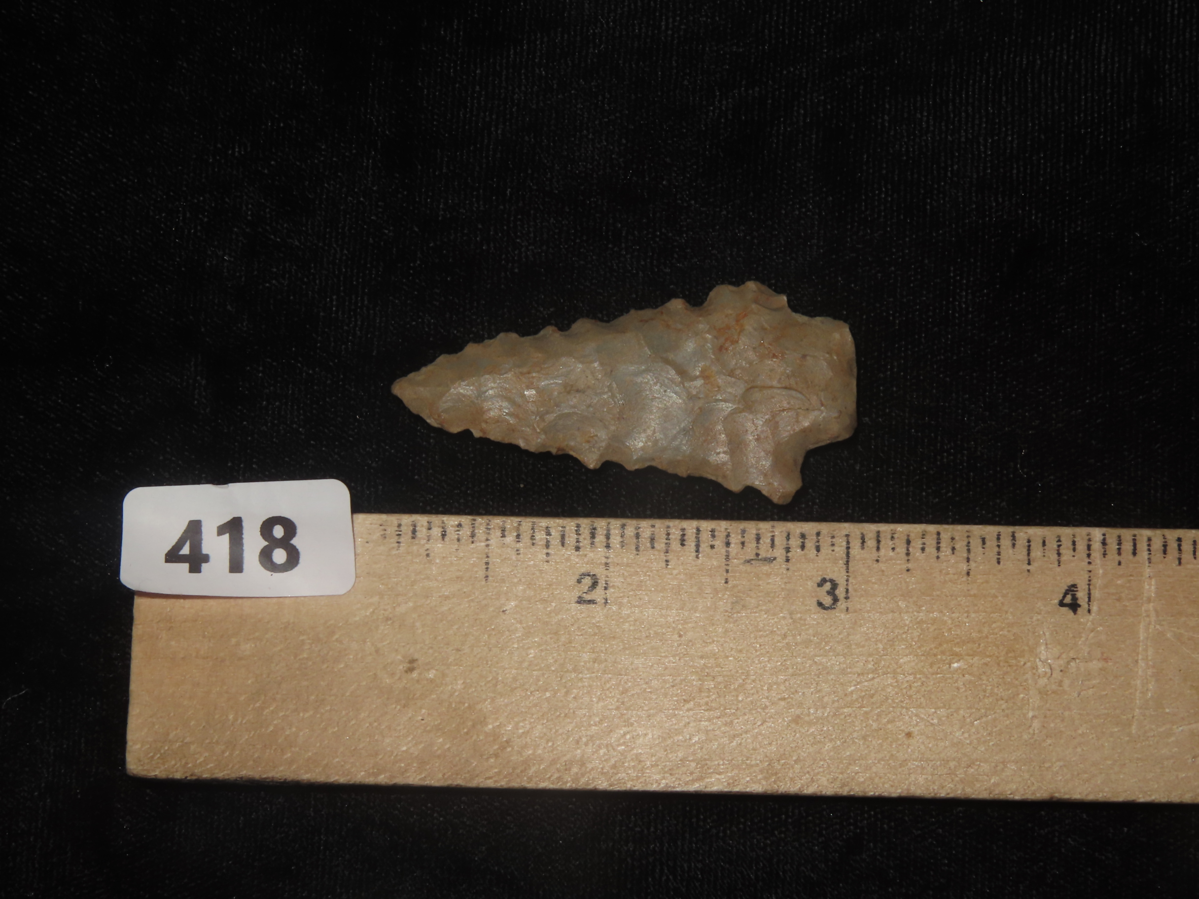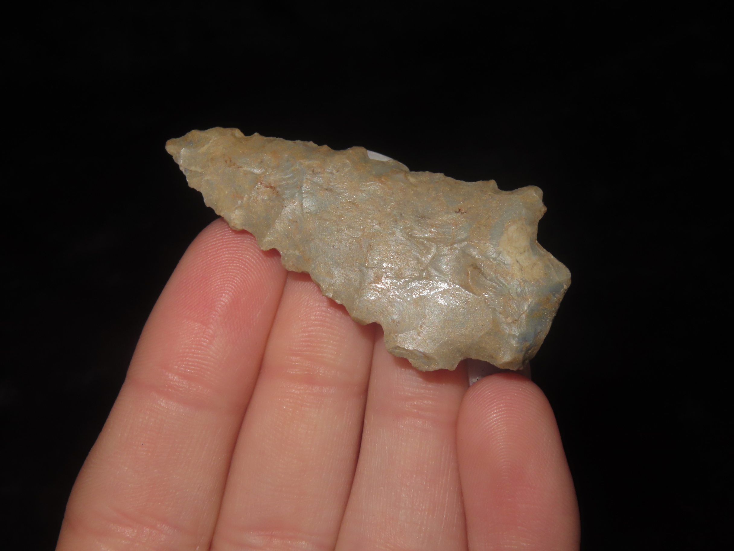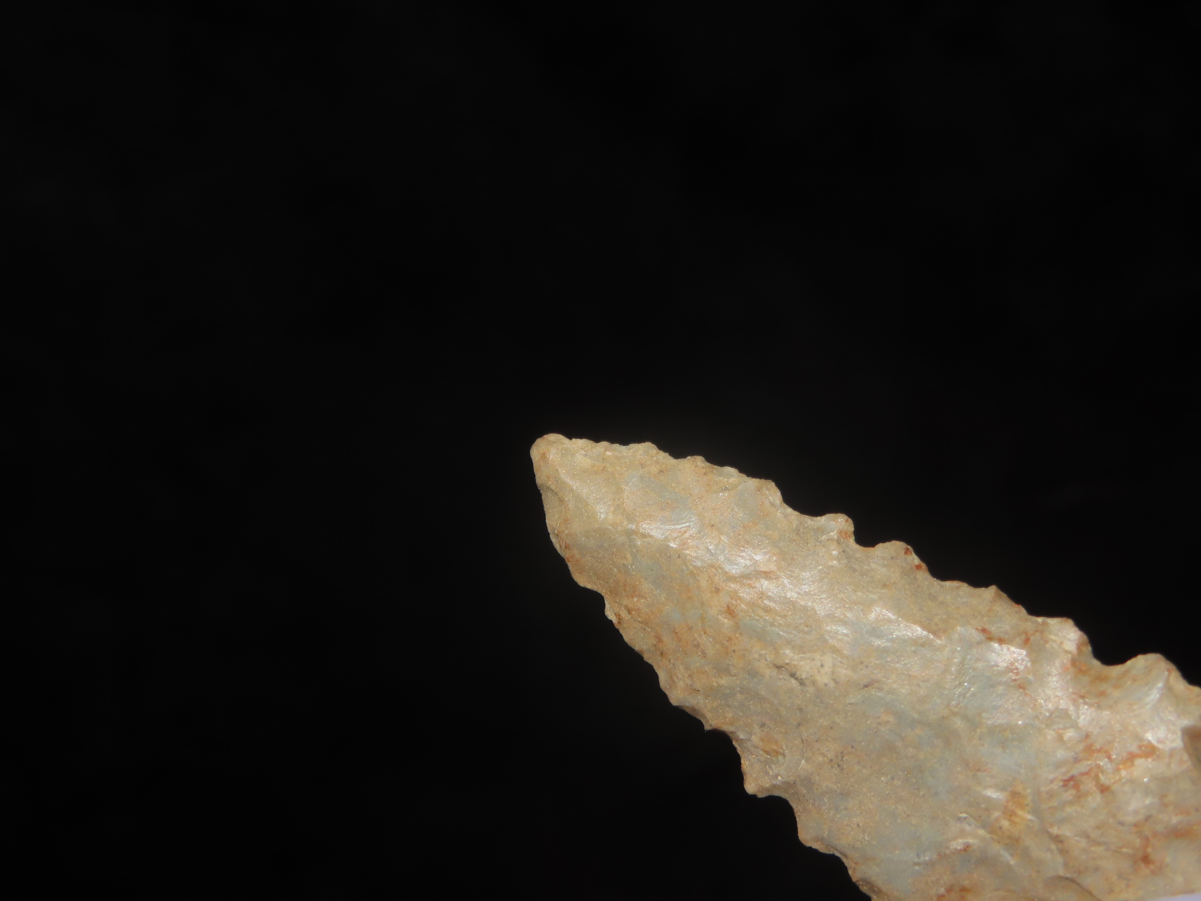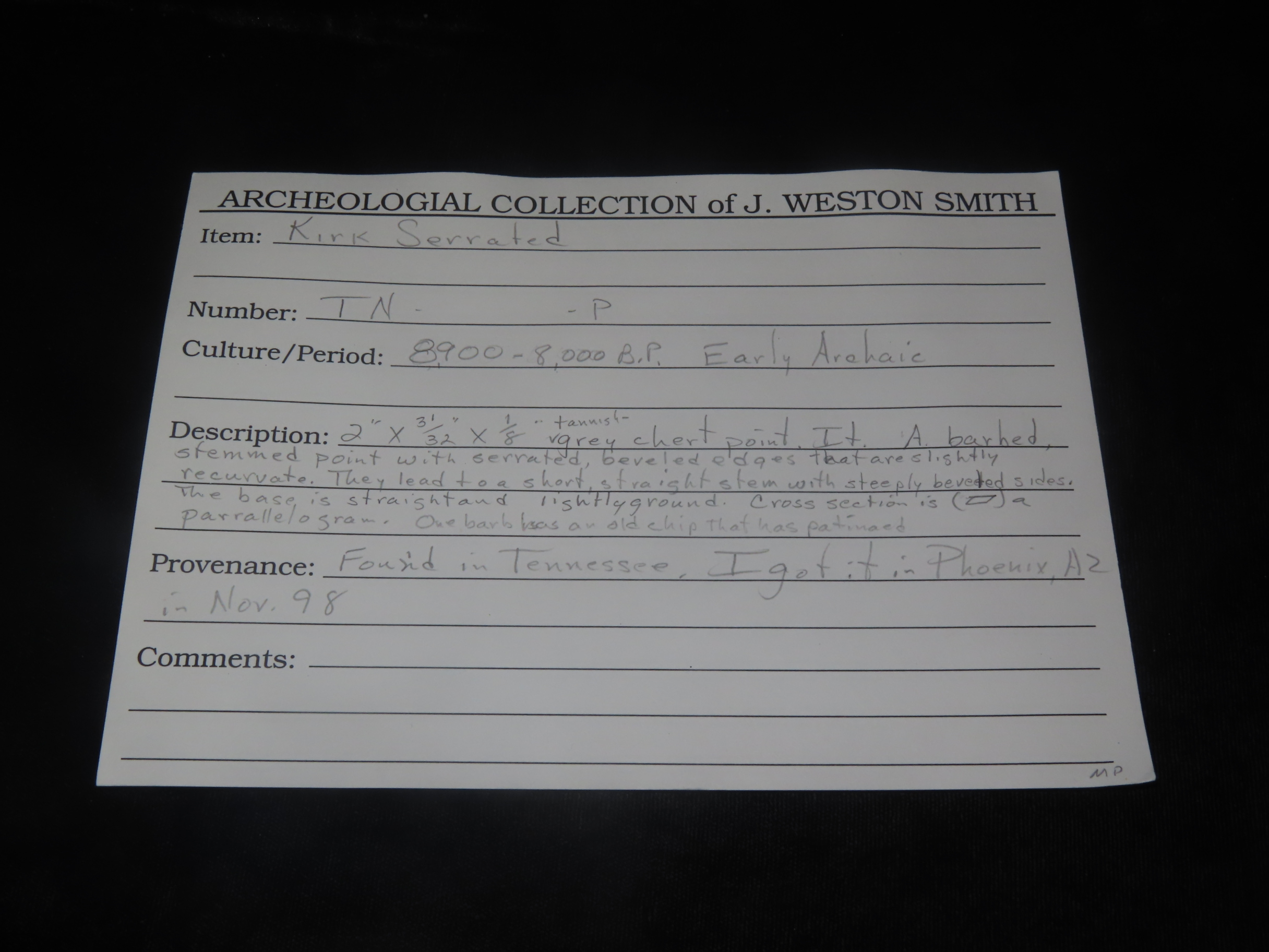 2″x31/32″x1/8″ Kirk Serrated point ,chert grey,8,900-8,000 B.P. Early Archaic Found in Tennessee