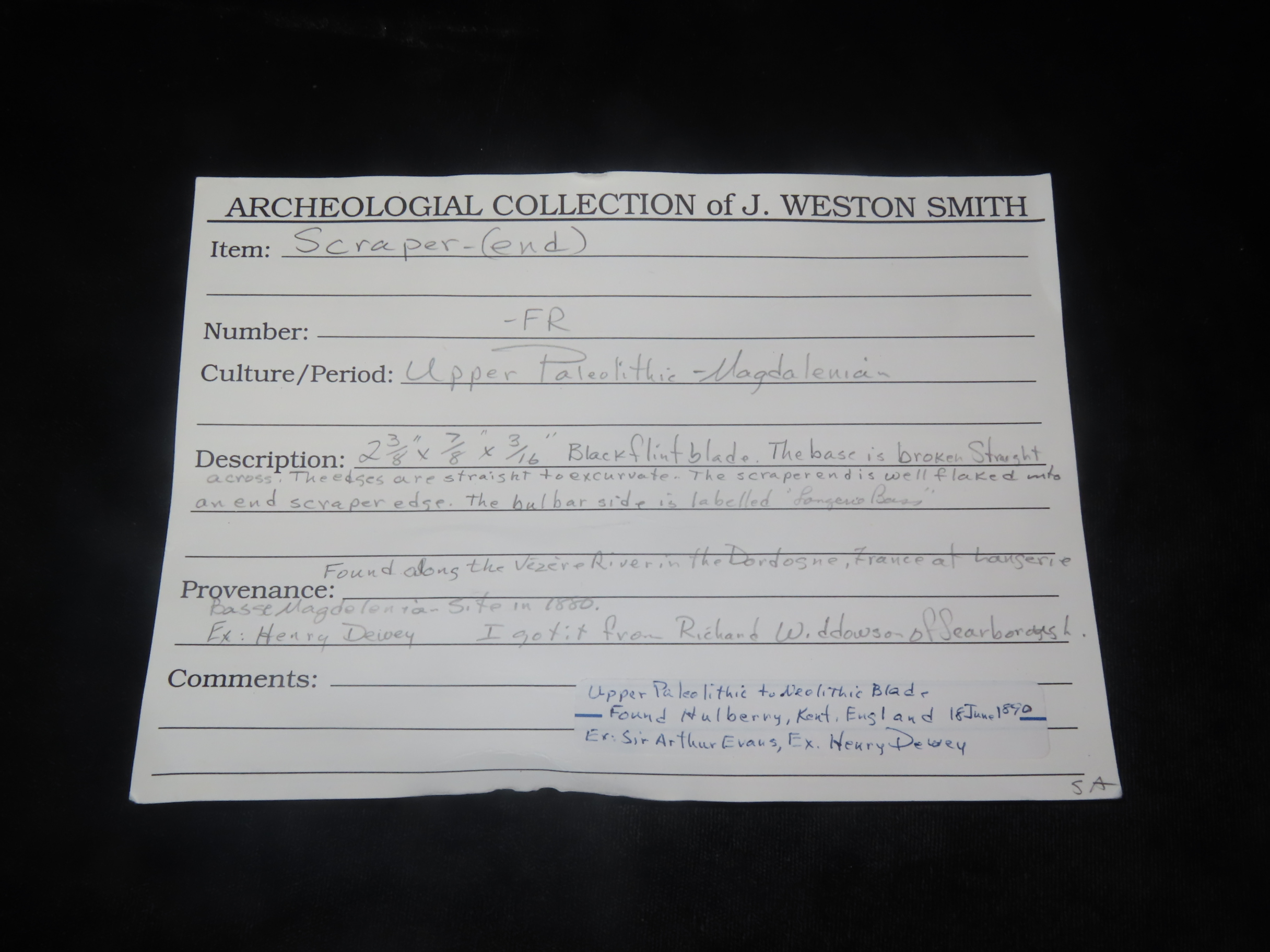 2 3/8″ X 7/8″ X 3/16″ Neolithic Scraper End Blade Upper Paleolithic Magdalenian, Found by Kent Mullebery in England, Ex Sir Arthur Evans