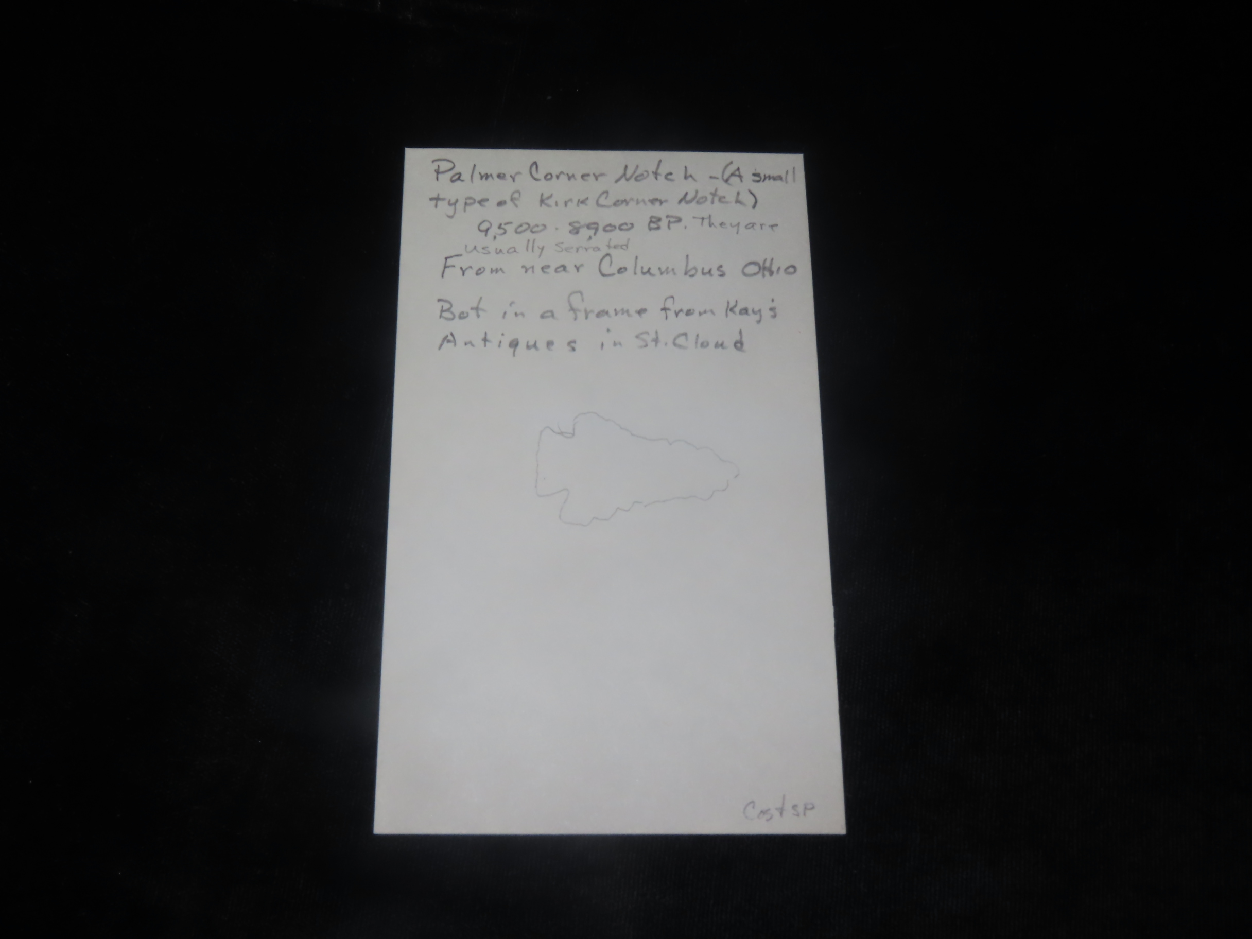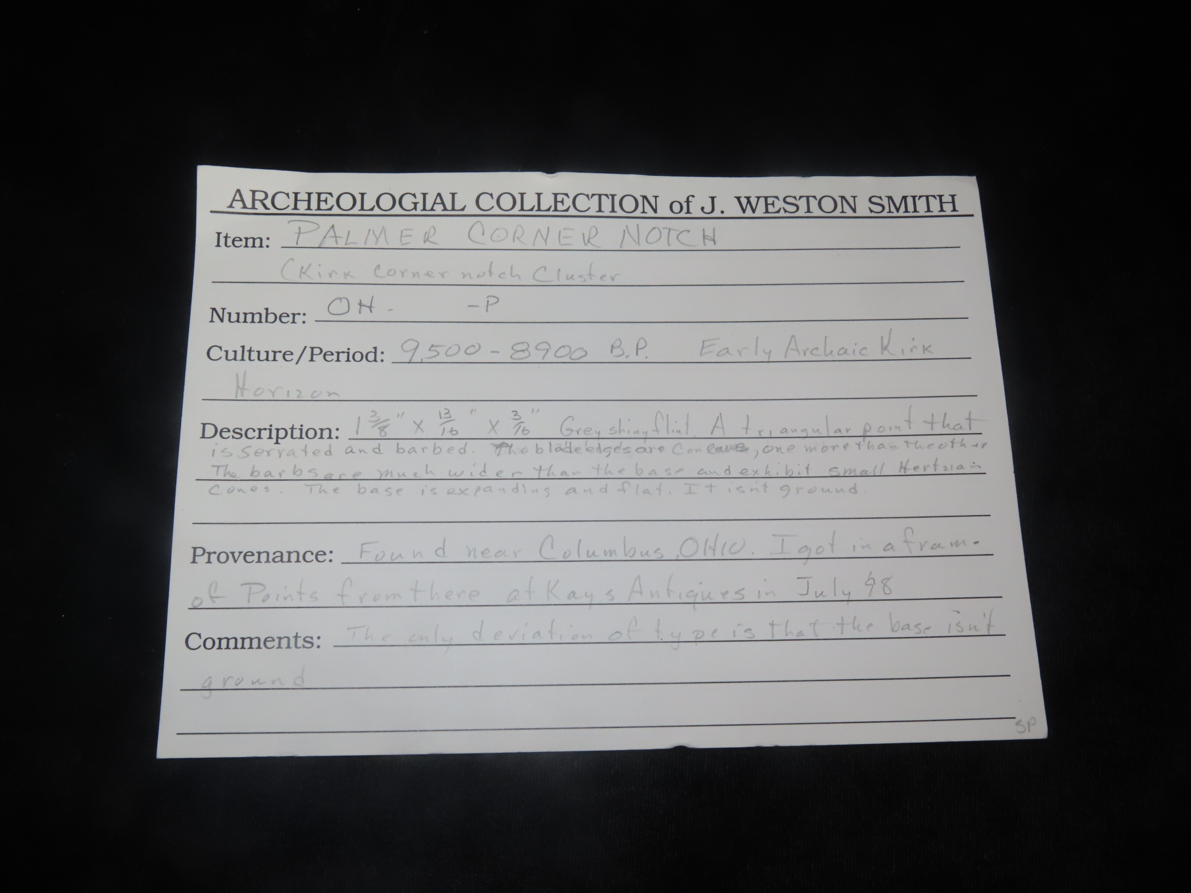 1 3/8″ X 13/16″ Palmer Corner notch, Found Near Columbus Ohio