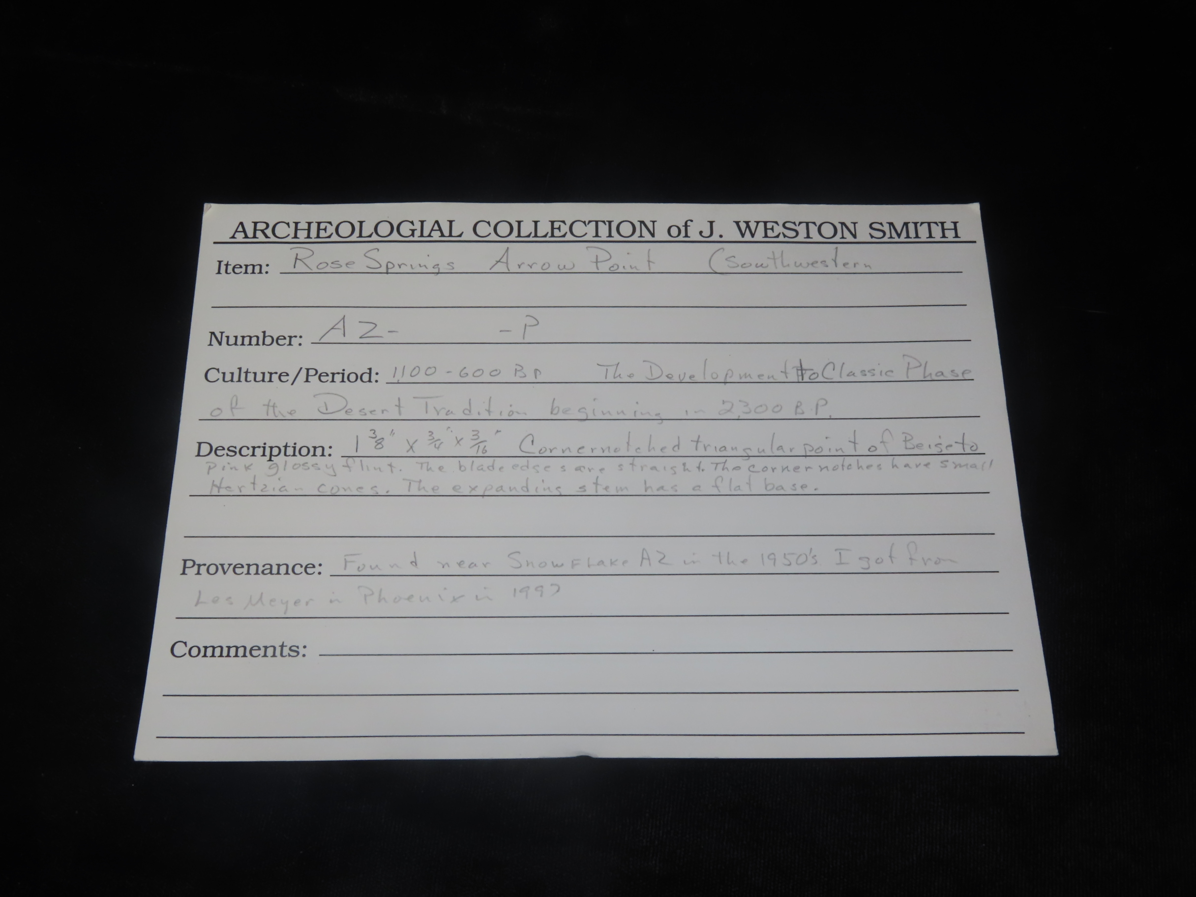 1 3/8" X 3/4" Rose Springs Arrowhead, Found Near Snowflake Arizona