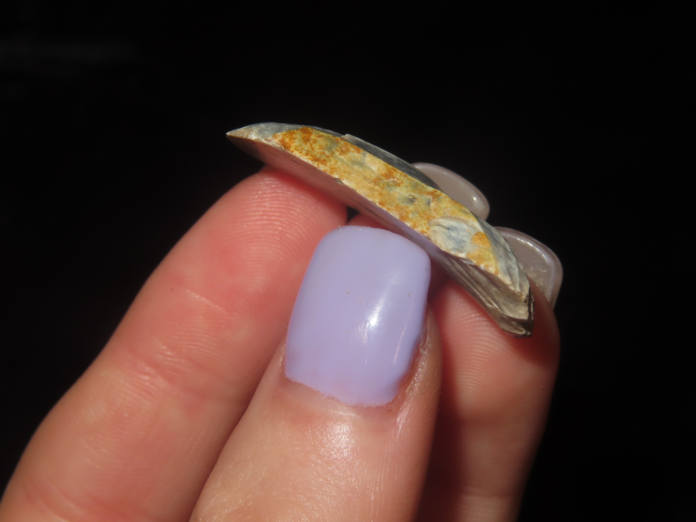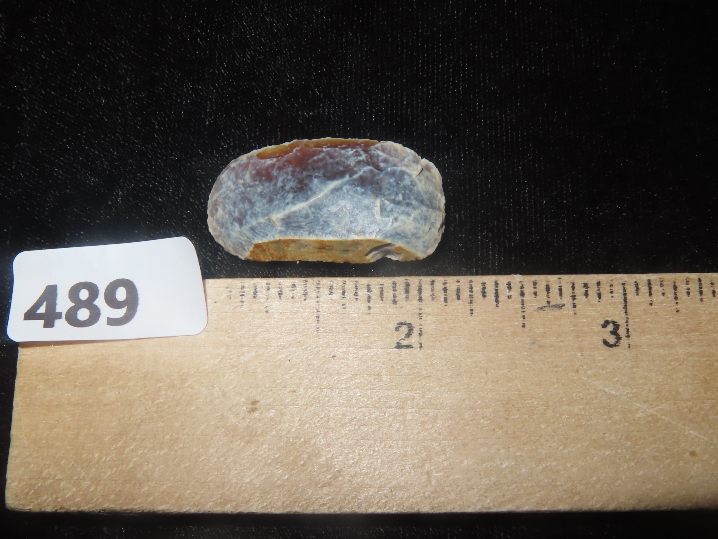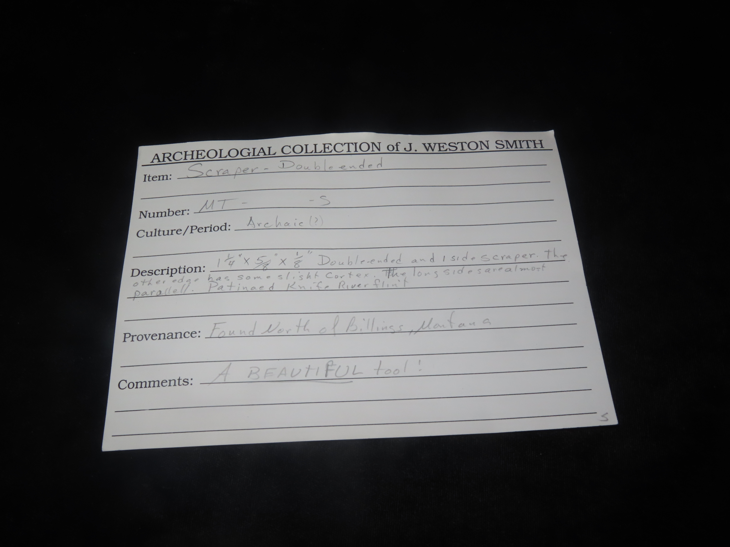 1 1/4″ X 5/8″ Knife River Flint Mandan Double Ended Thumb Scraper, Found in Montana