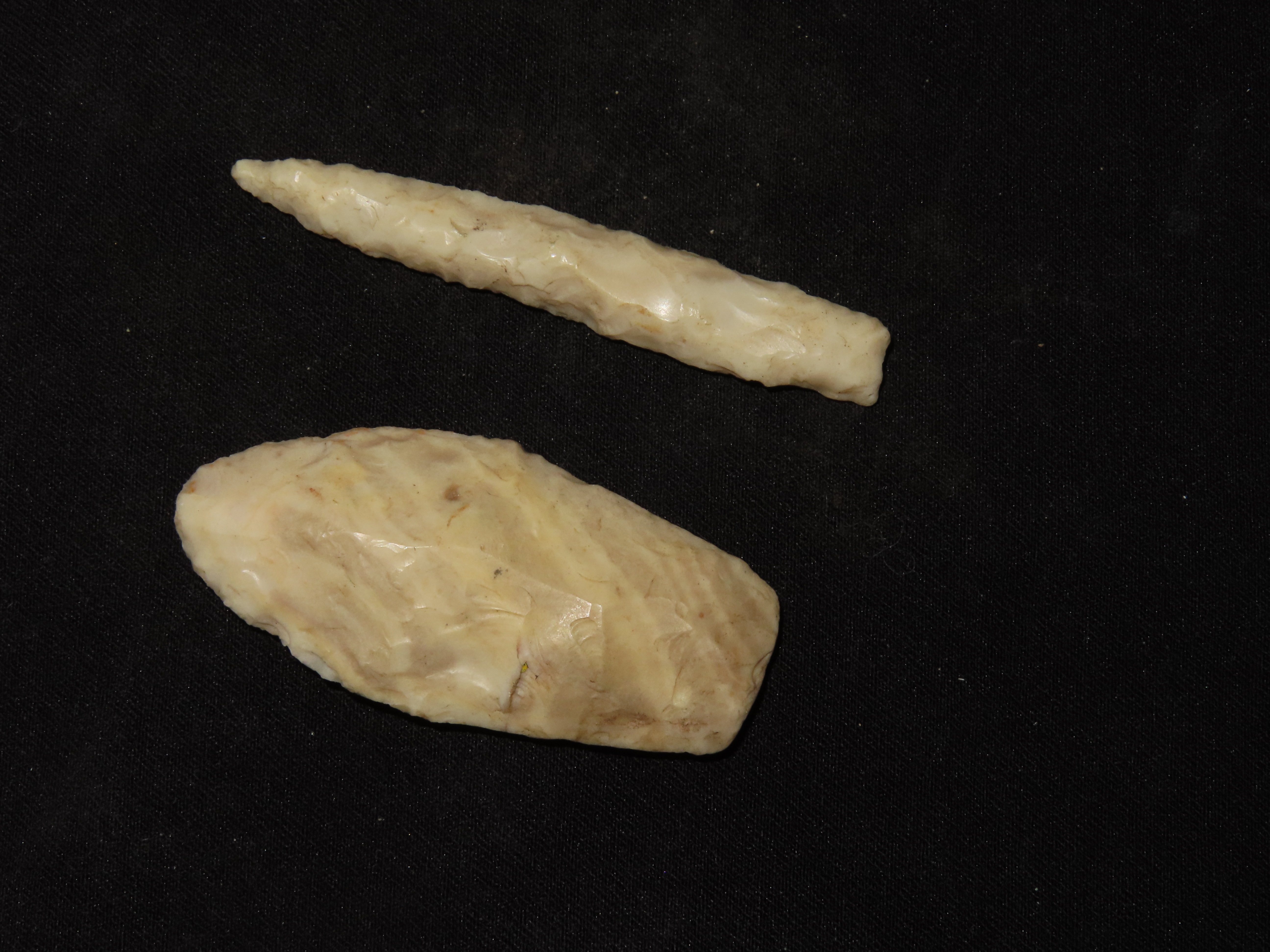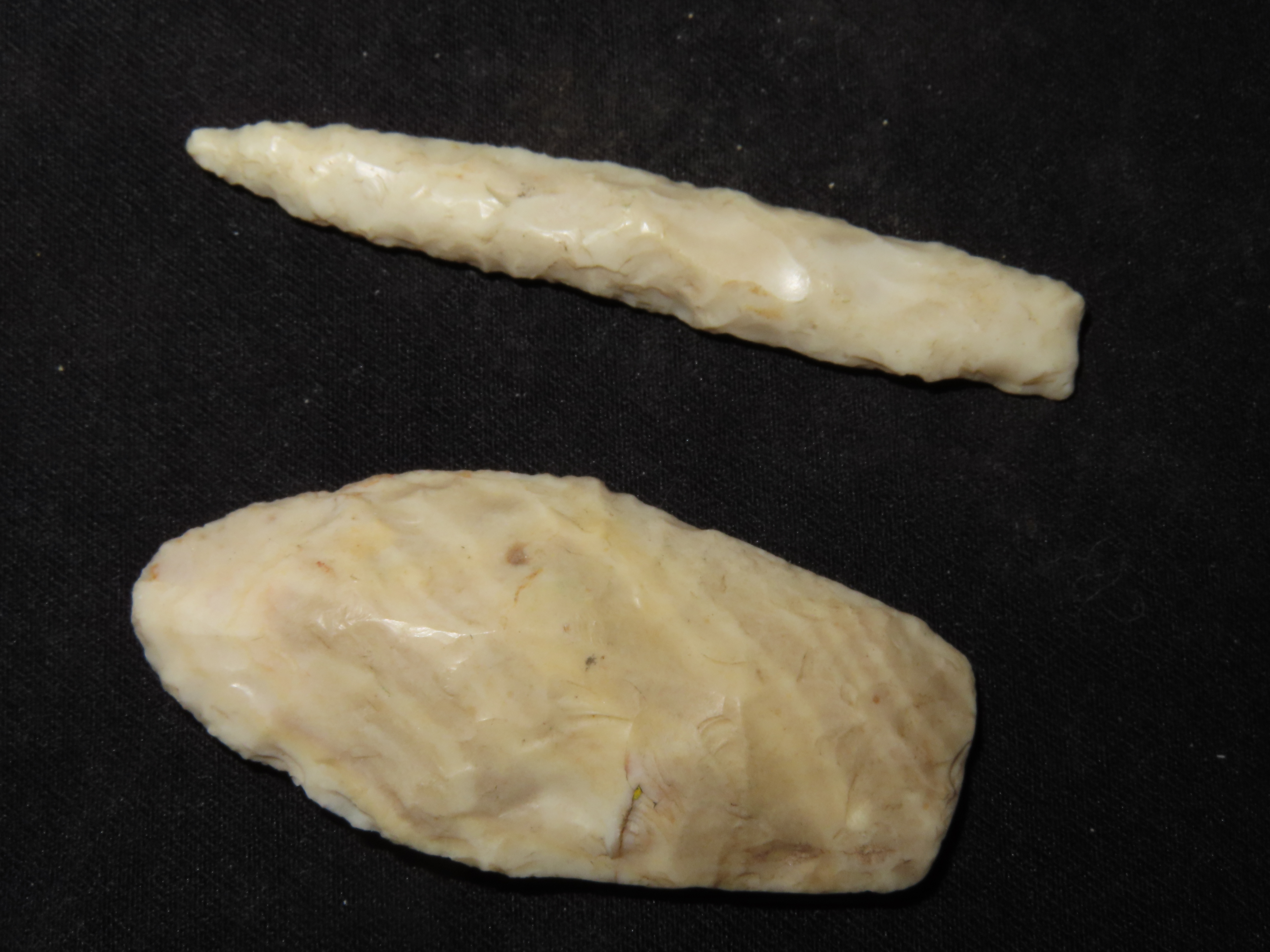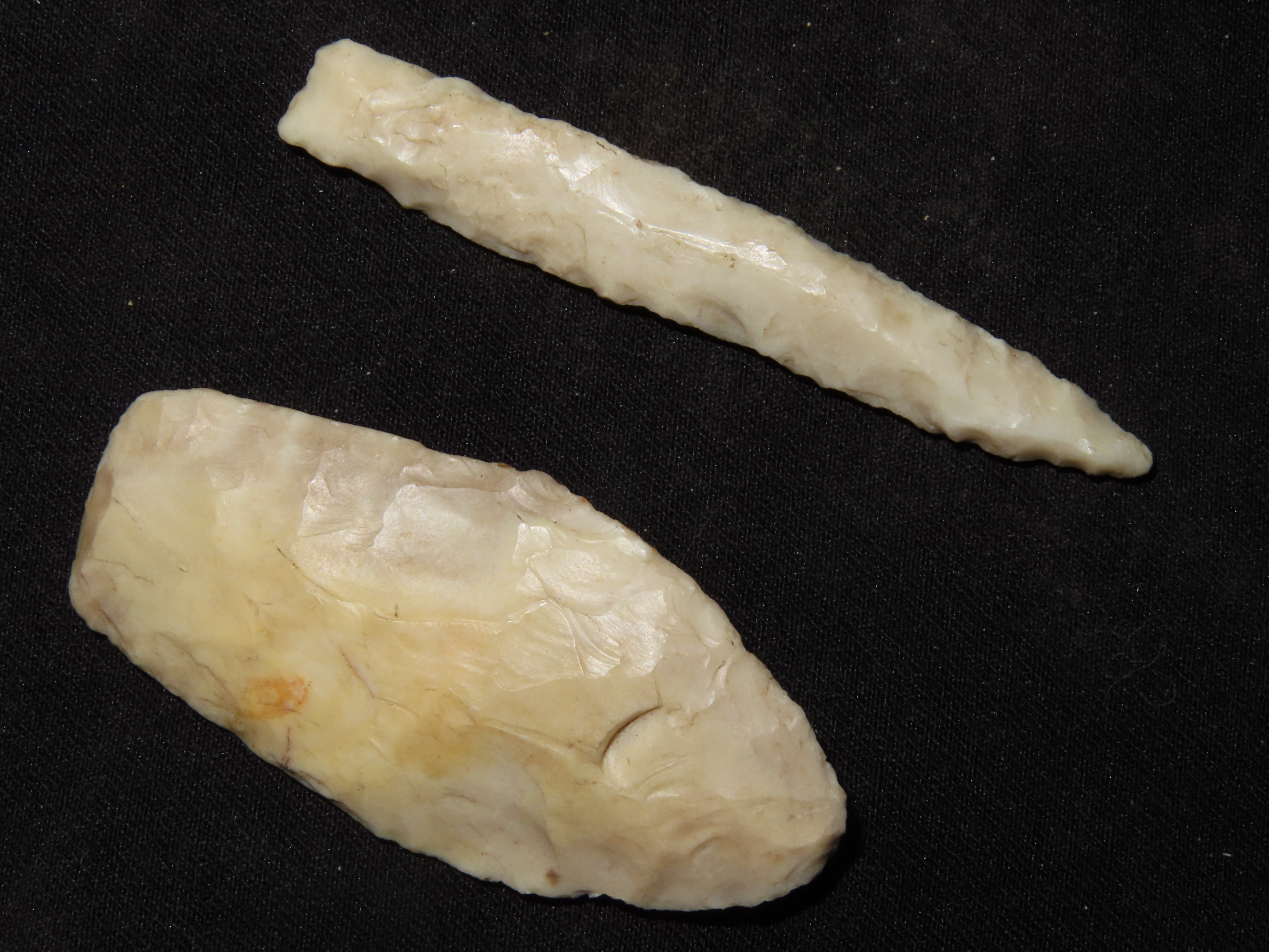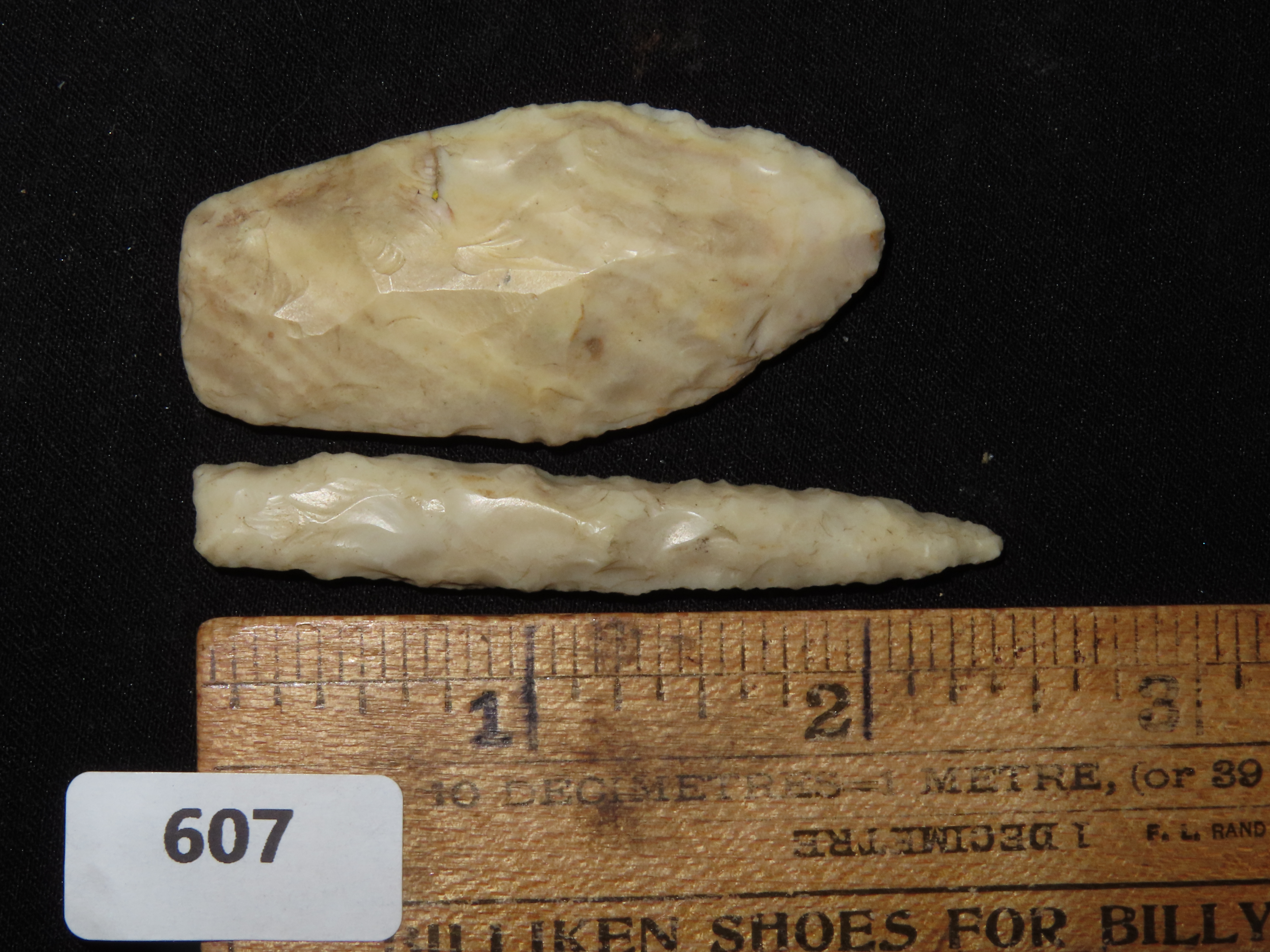 Set of 2 Arrowheads- 2 1/8" Browns Valley, and 2 7/16" Pencil Drill, found in Northern Minnesota