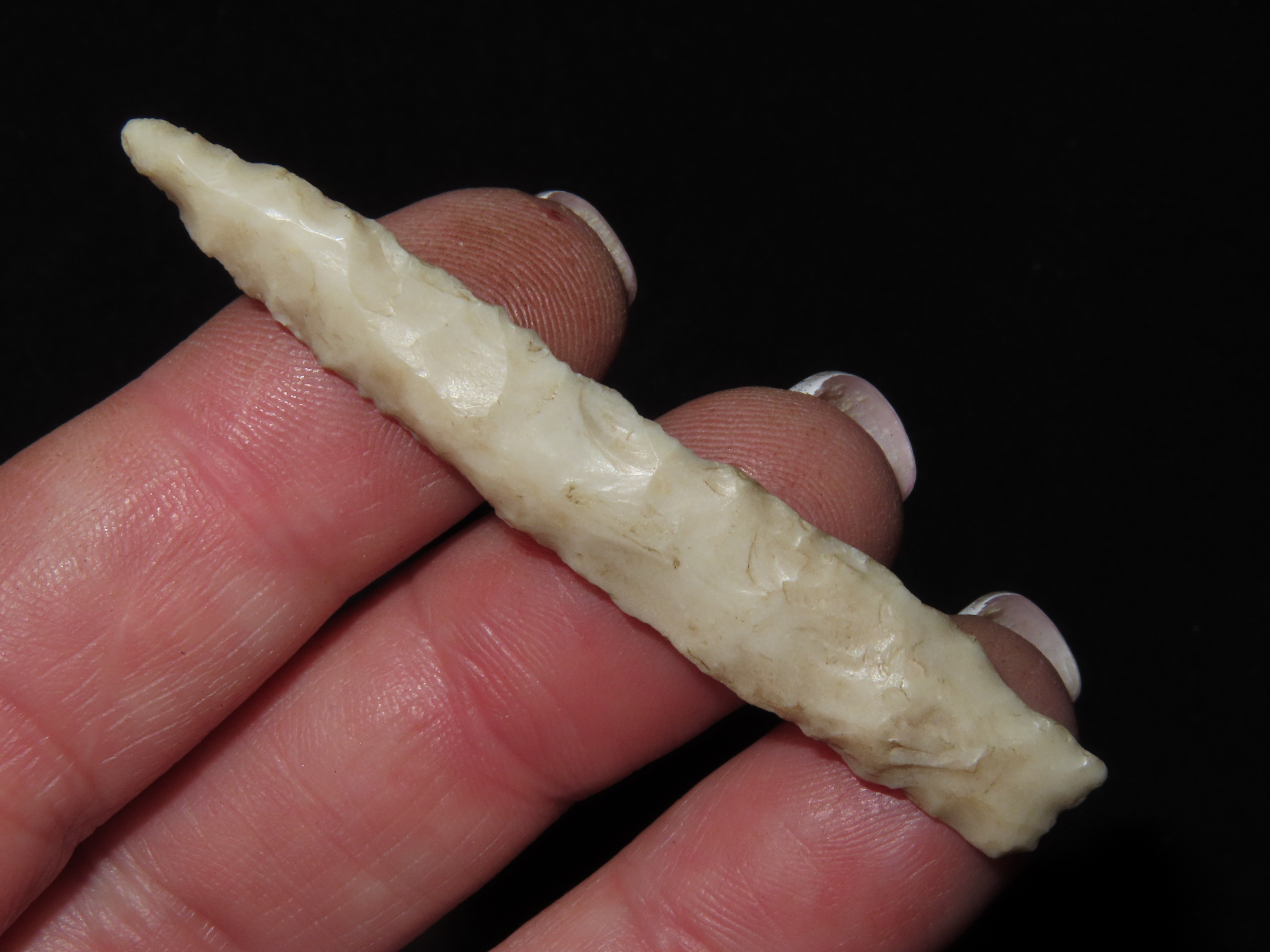 Set of 2 Arrowheads- 2 1/8″ Browns Valley, and 2 7/16″ Pencil Drill, found in Northern Minnesota