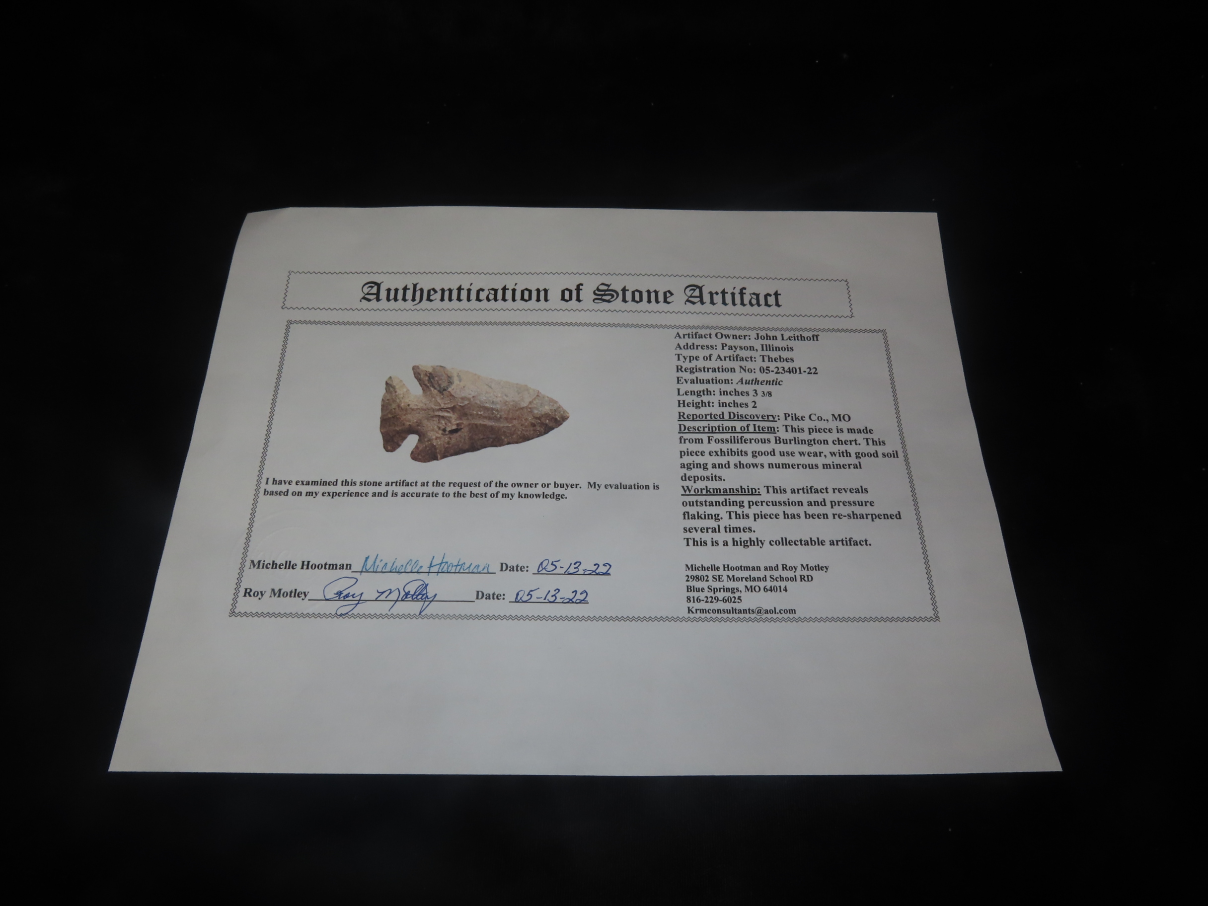 2 3/8″ X 2″ Thebes, Motley COA, Found in Pike County MO.