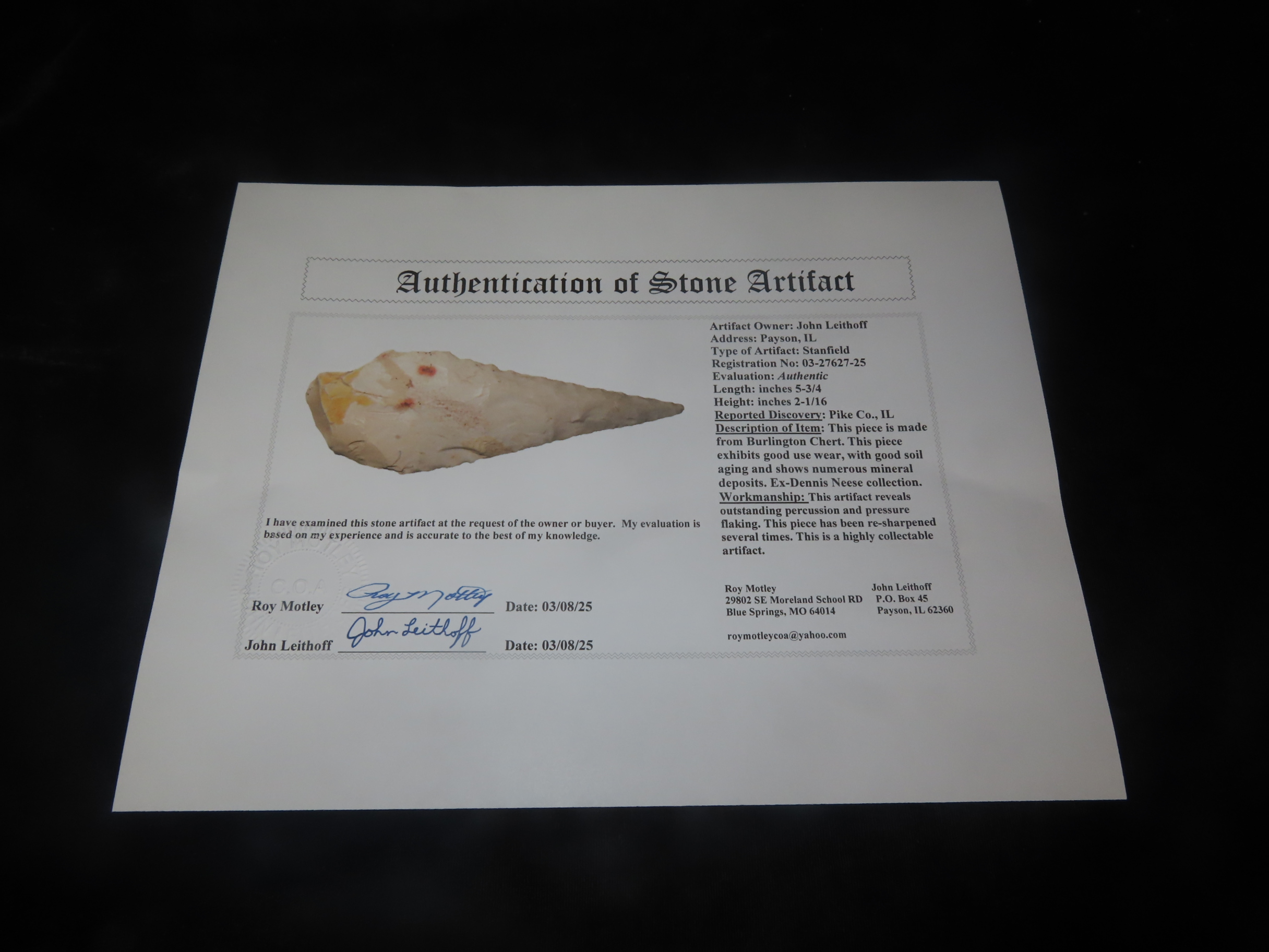 5 3/4″ X 2 1/16″ Stanfield, Motley COA, Found in Pike County IL.