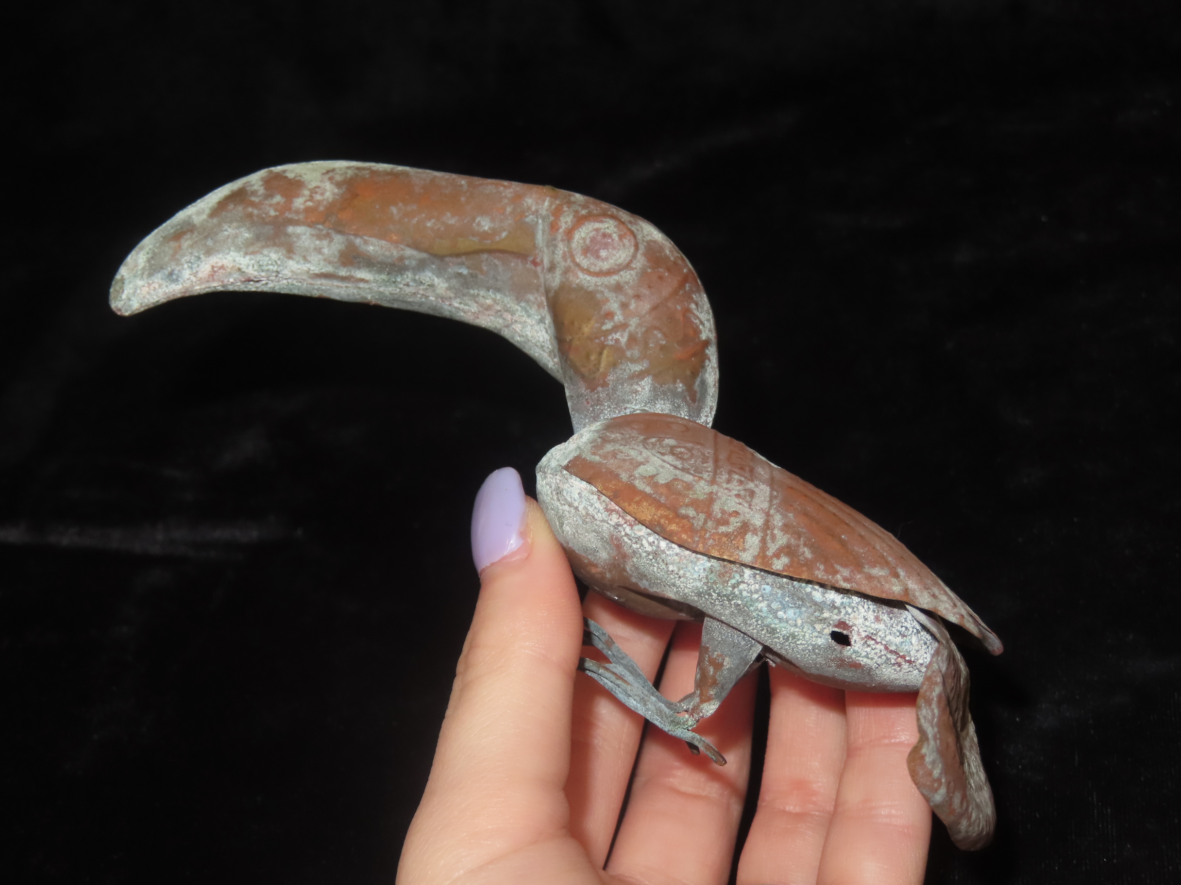 6″ Copper Bird Effigy / Toucan, Peru, Intricate & Delicate Statue