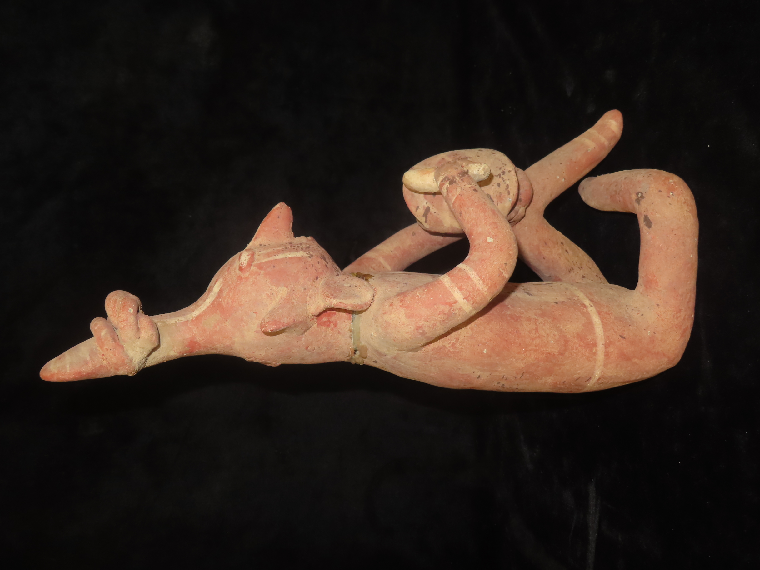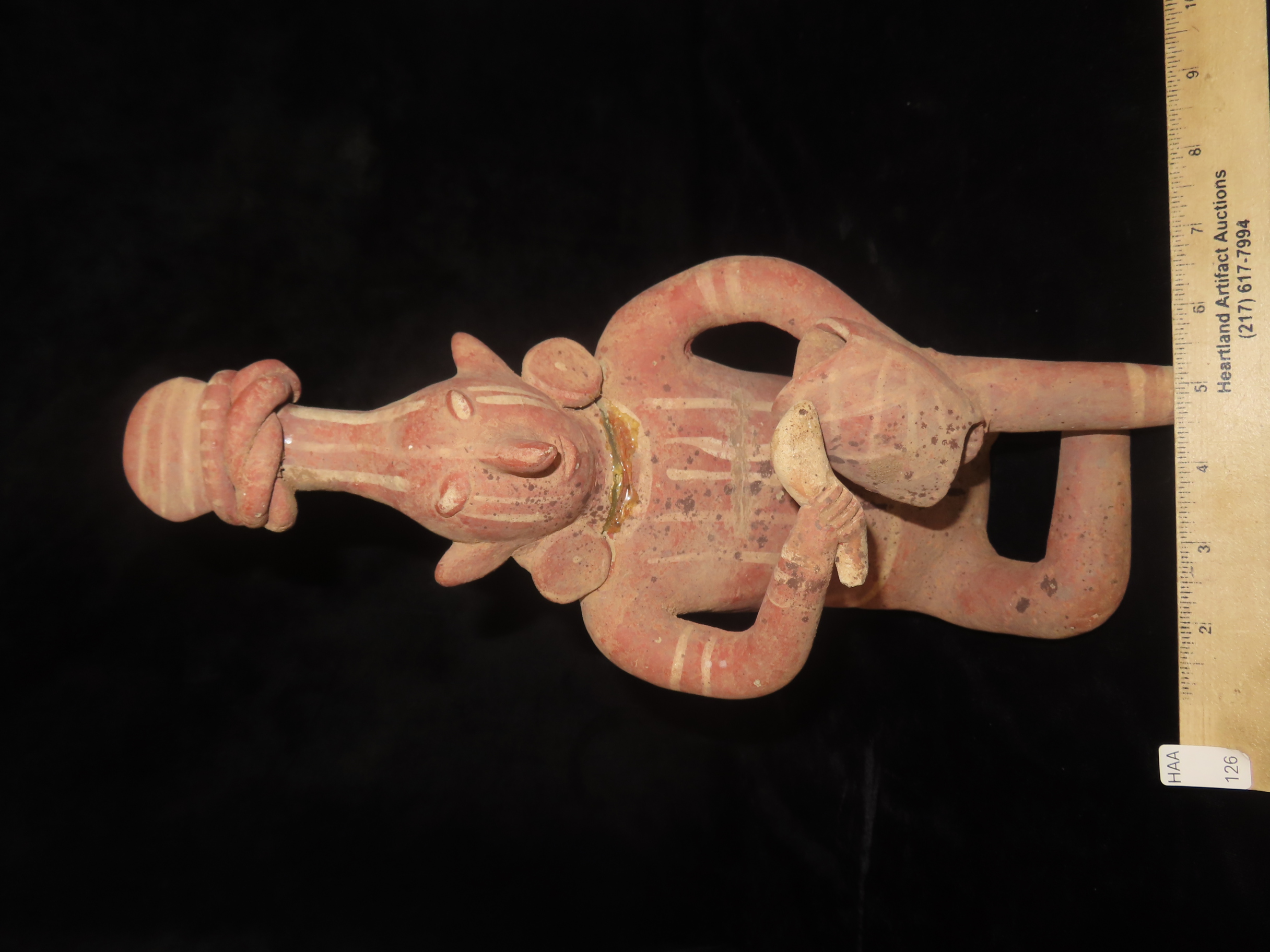 12 3/4″ Pre-Columbian Nayarit Style Human Effigy Warrior Figure, Glued at Neck, Mexico, #RK-P15
