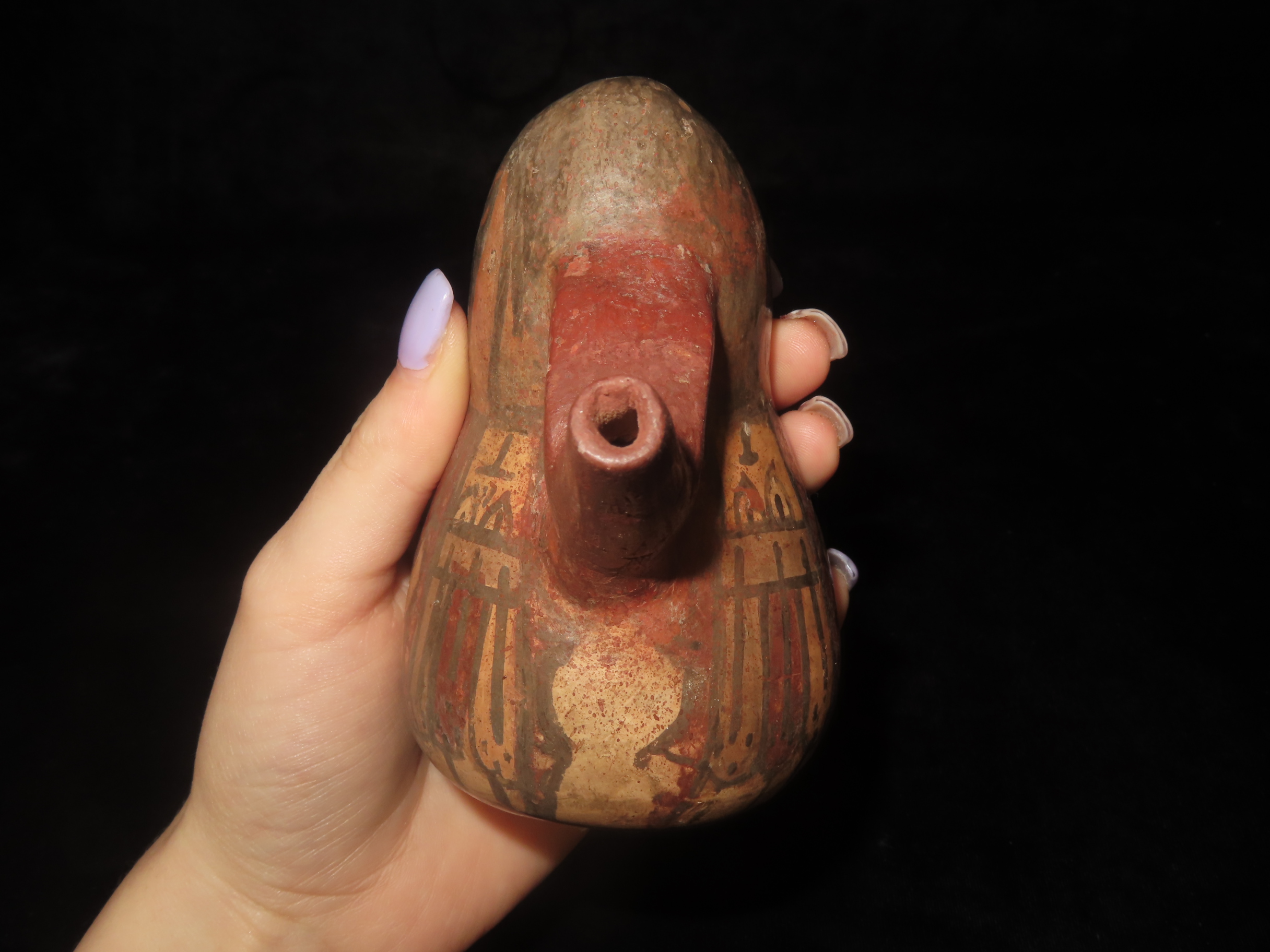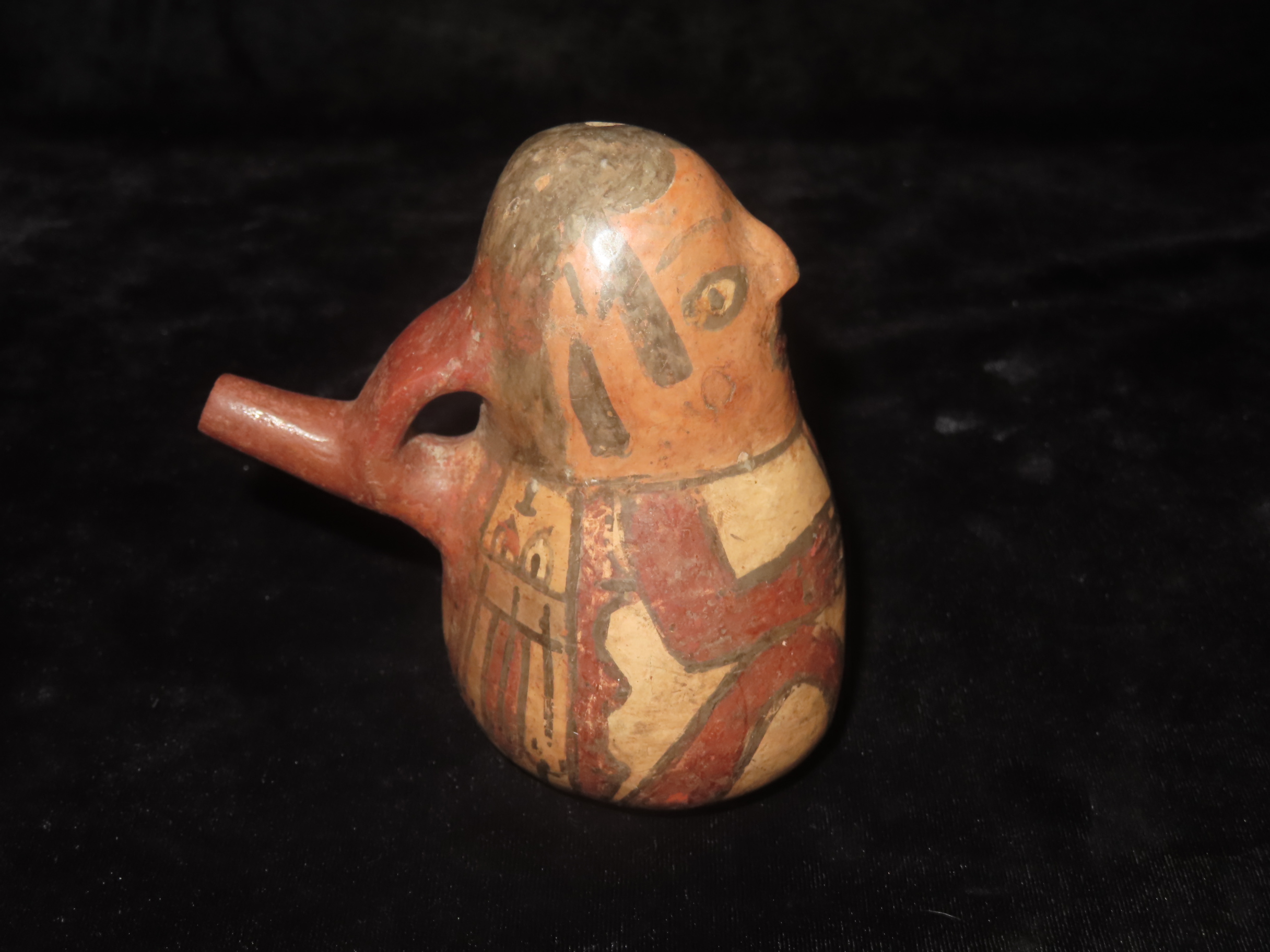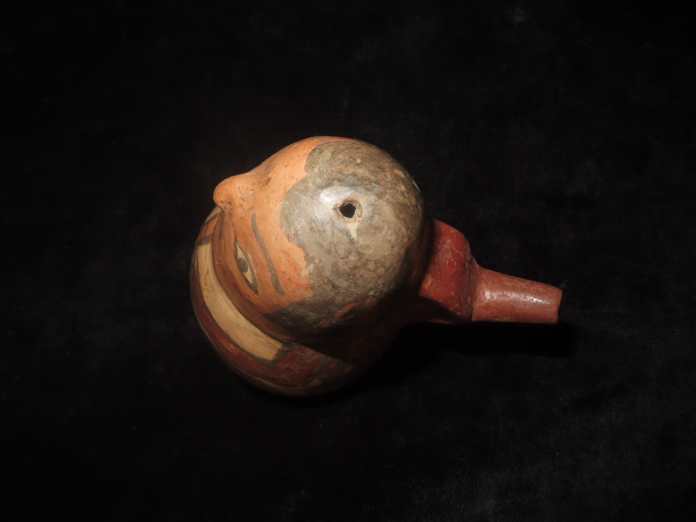 4 1/4″ Pre-Columbian Nazca Style Human Effigy Stirrup Bottle, Solid, Peru, #RK-P30