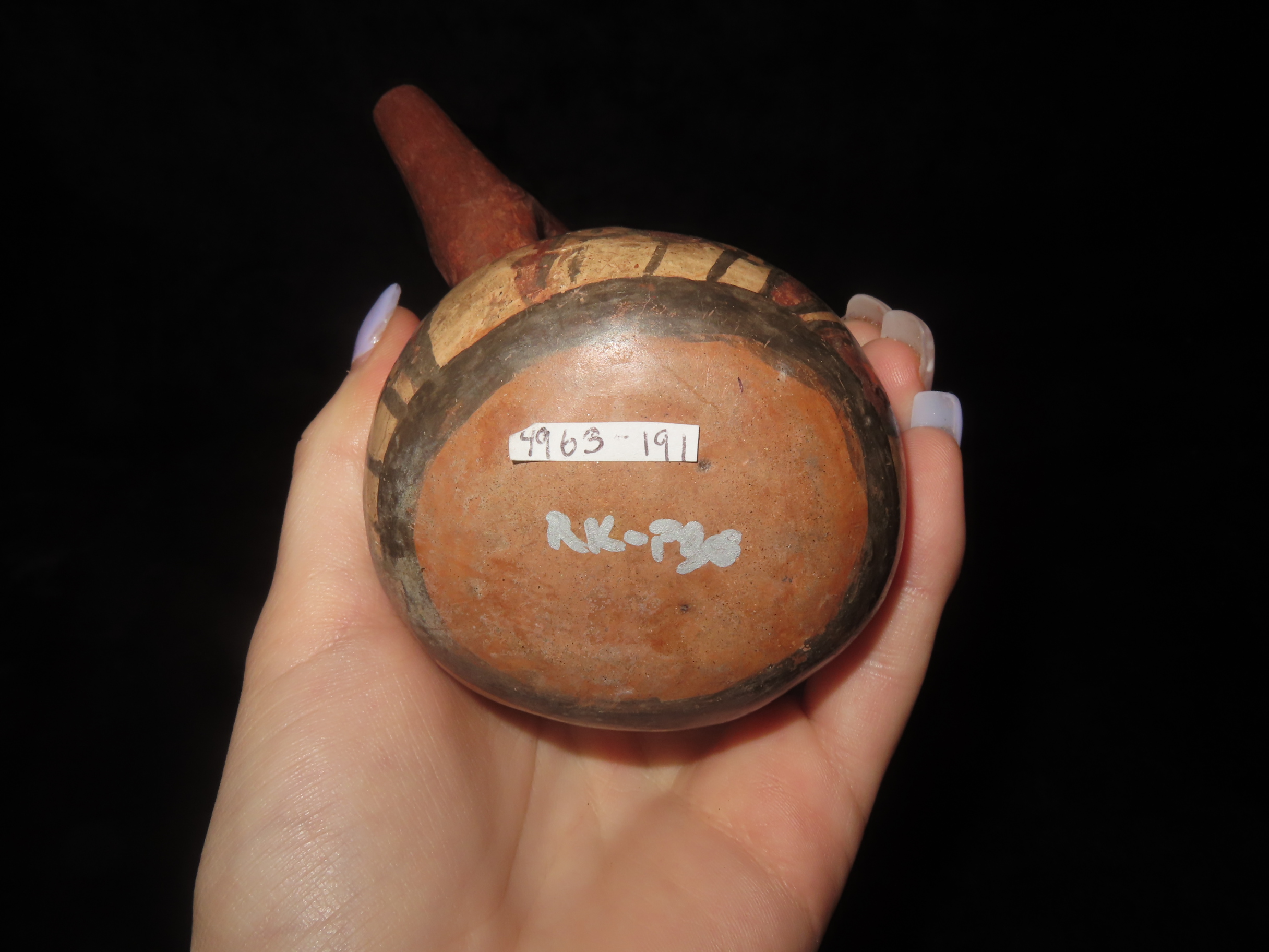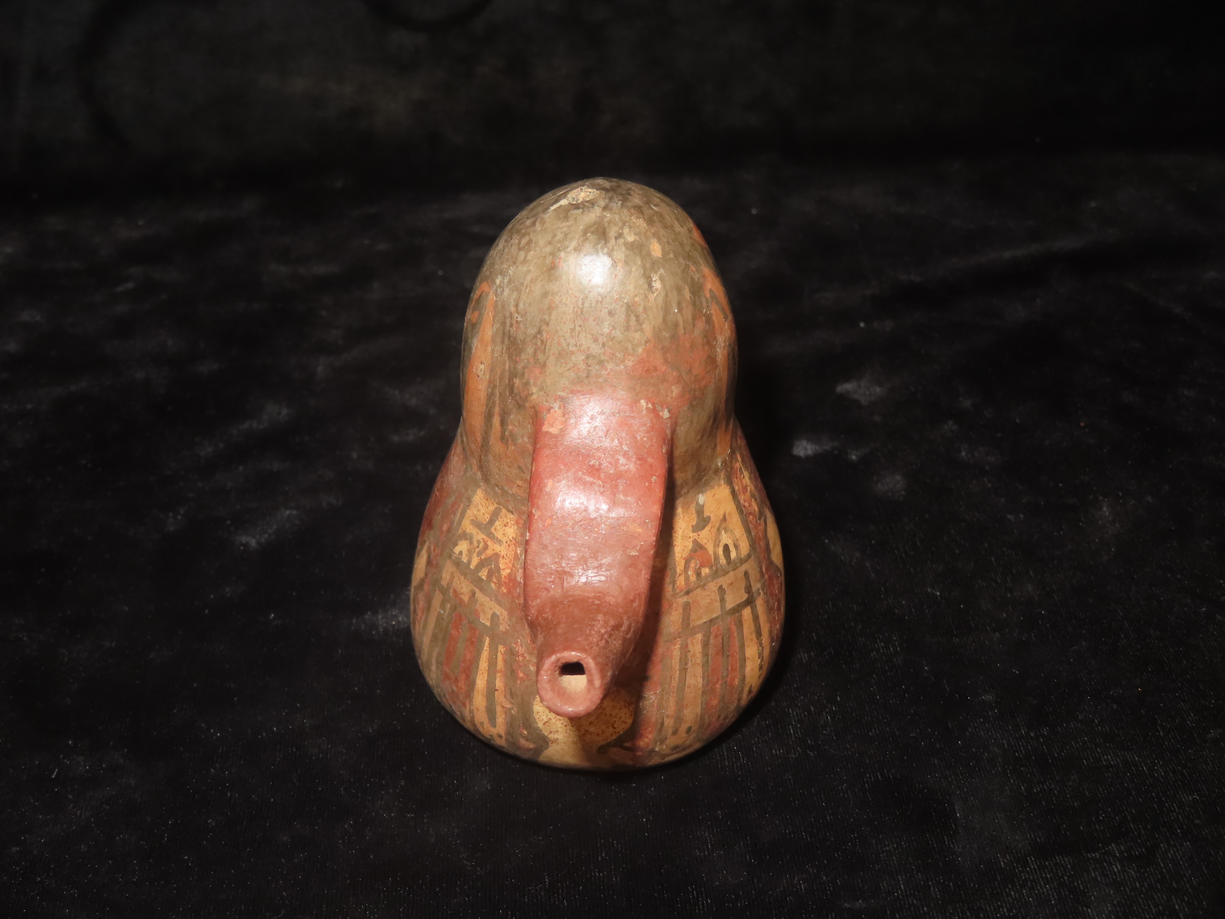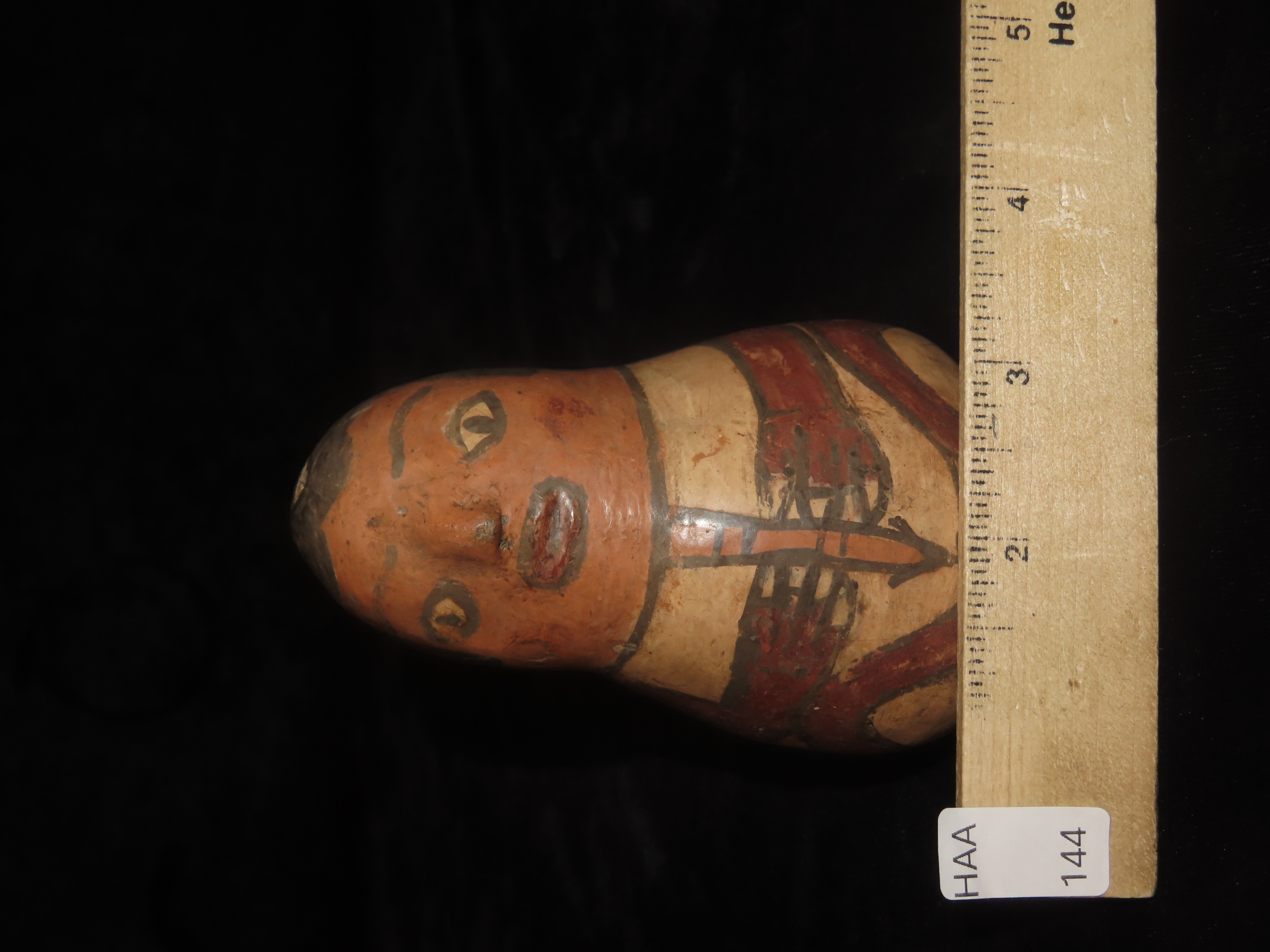 4 1/4″ Pre-Columbian Nazca Style Human Effigy Stirrup Bottle, Solid, Peru, #RK-P30