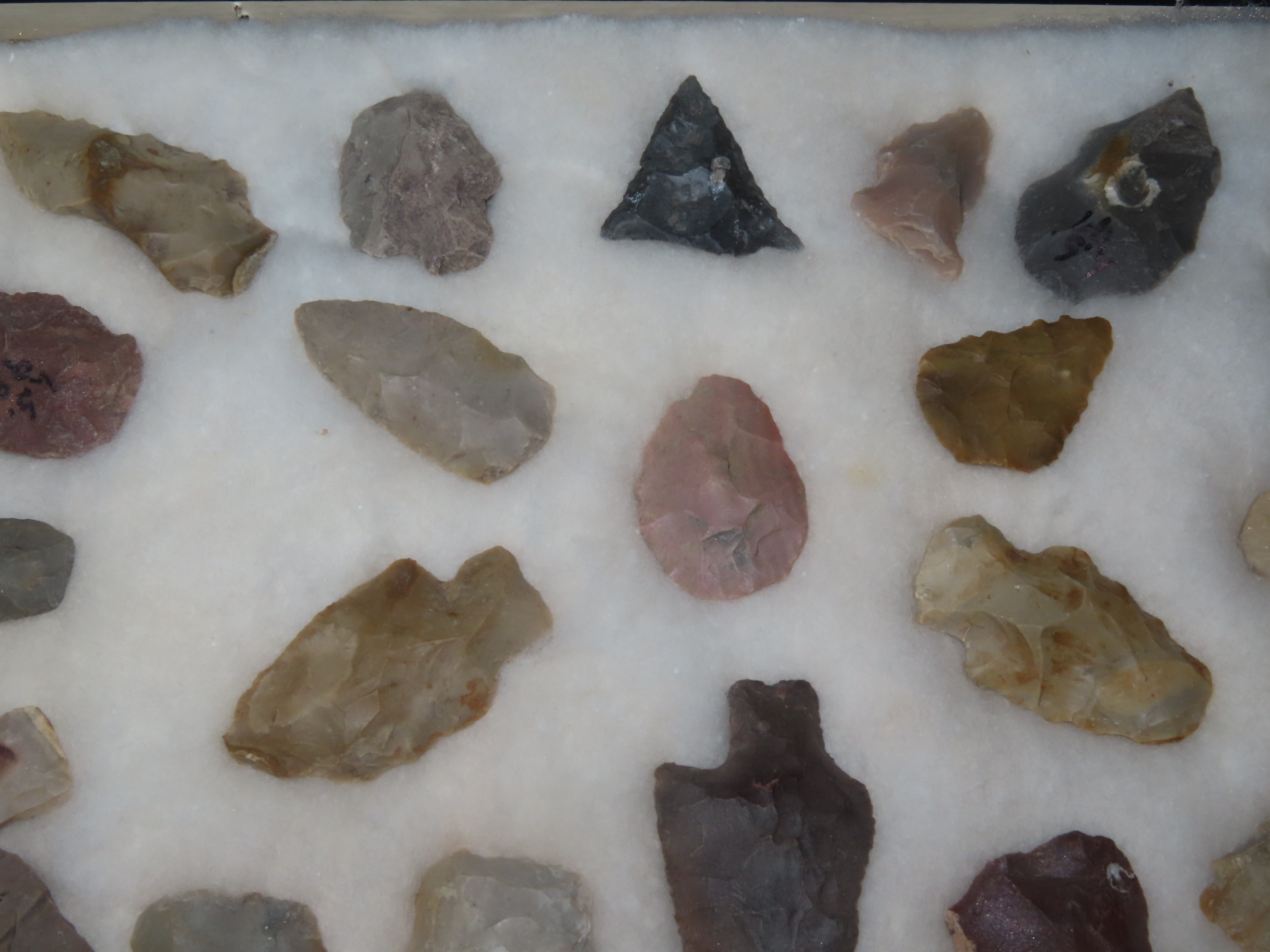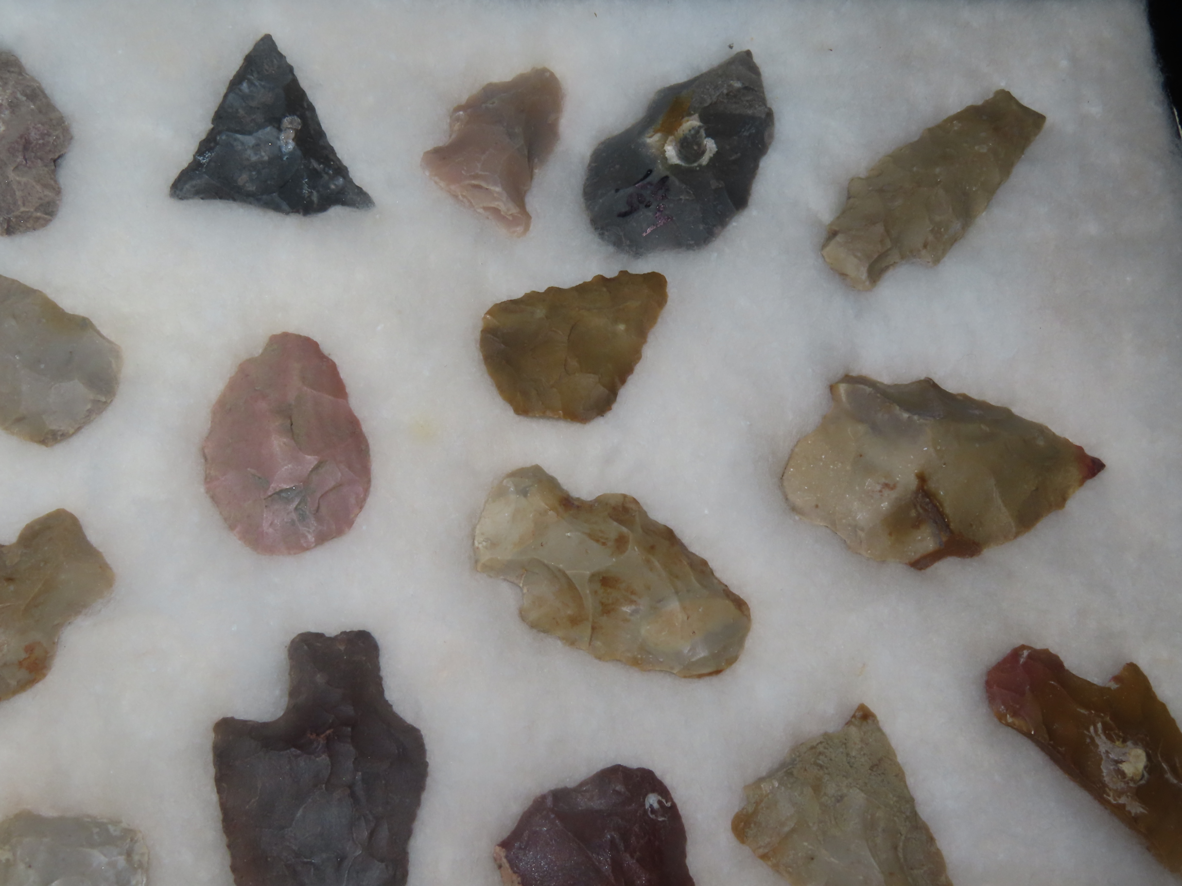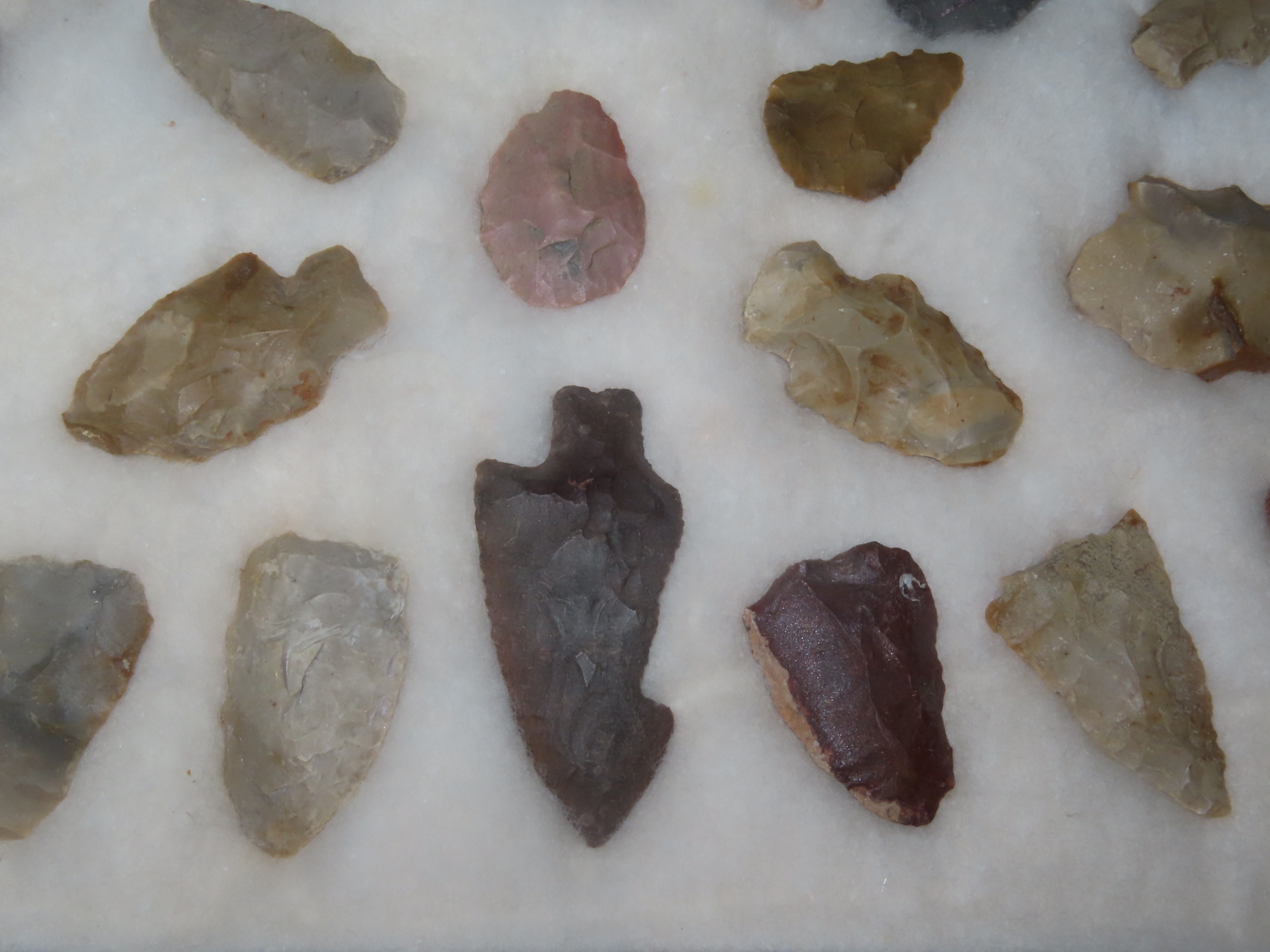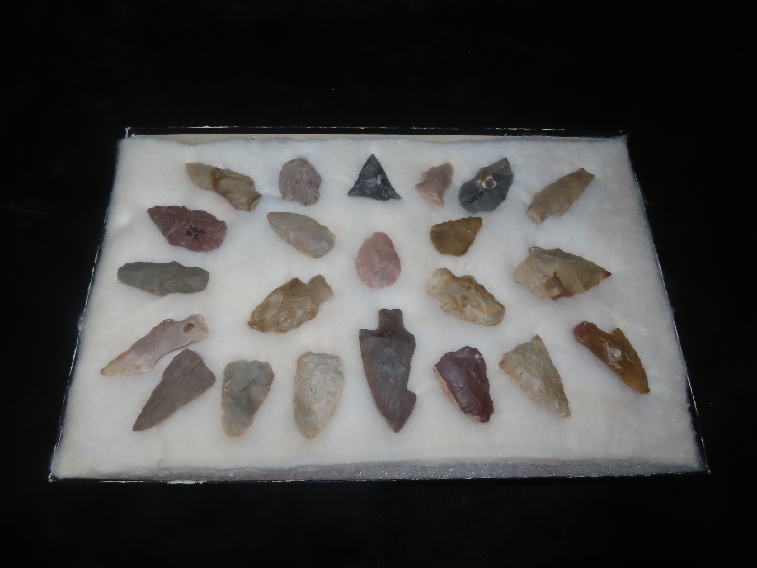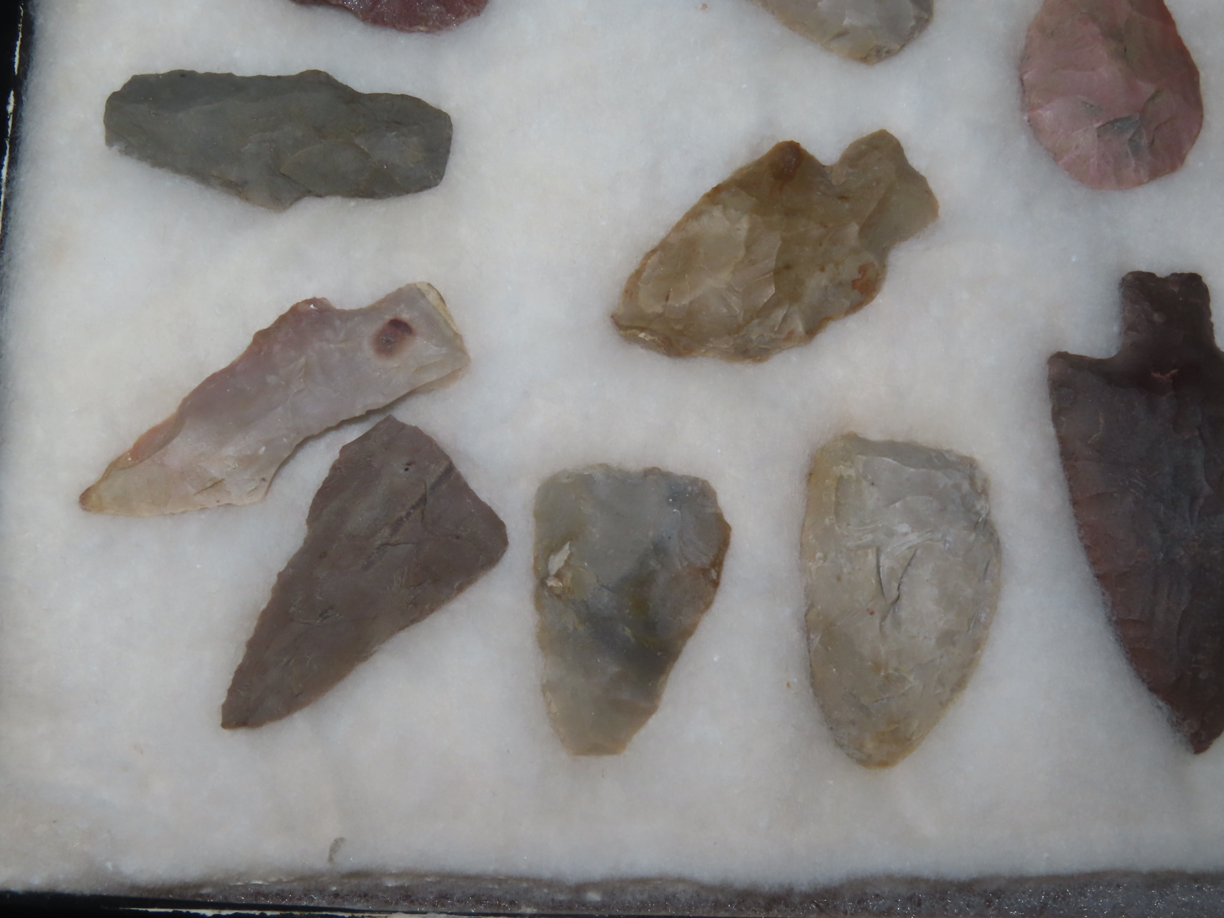 12 1/2 x 8 1/2″ Frame of 22 Colorful Louisiana Arrowheads