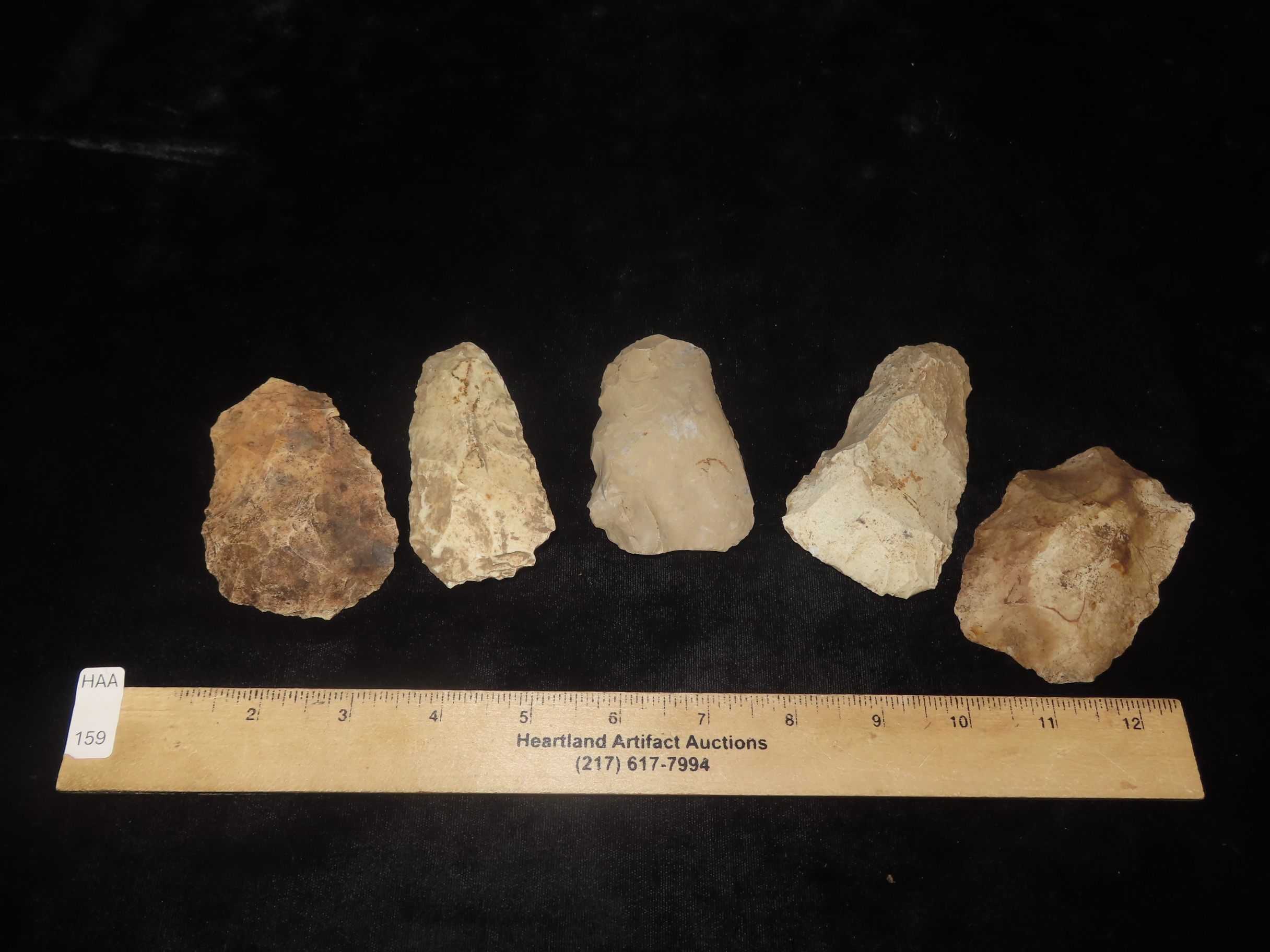 Lot of 5 Flint Celts found in St Charles County Missouri by Ron Knowles
