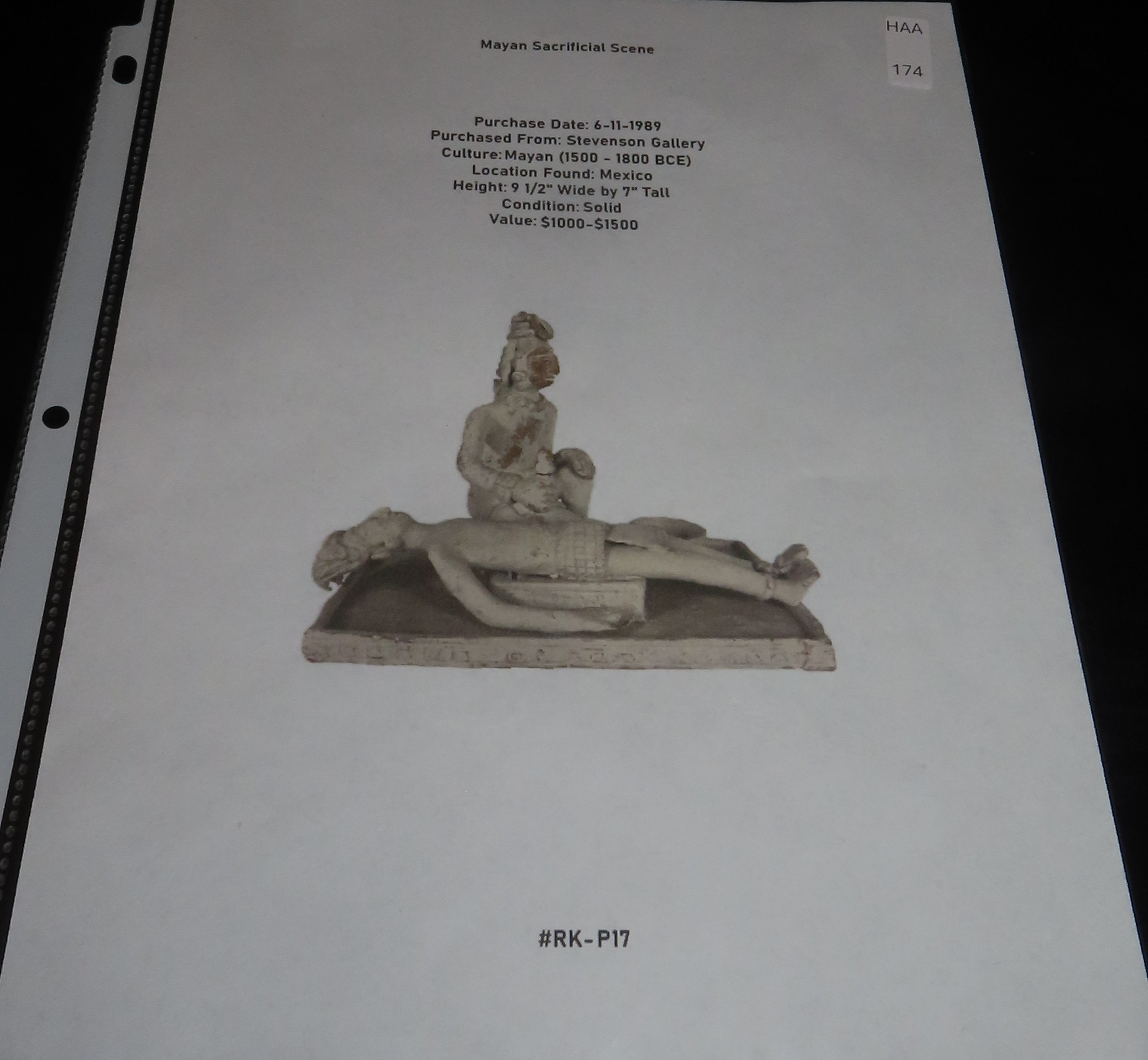 9 1/2″ Pre-Columbian Mayan Style Sacrificial Scene, Solid, Mexico, #RK-P17