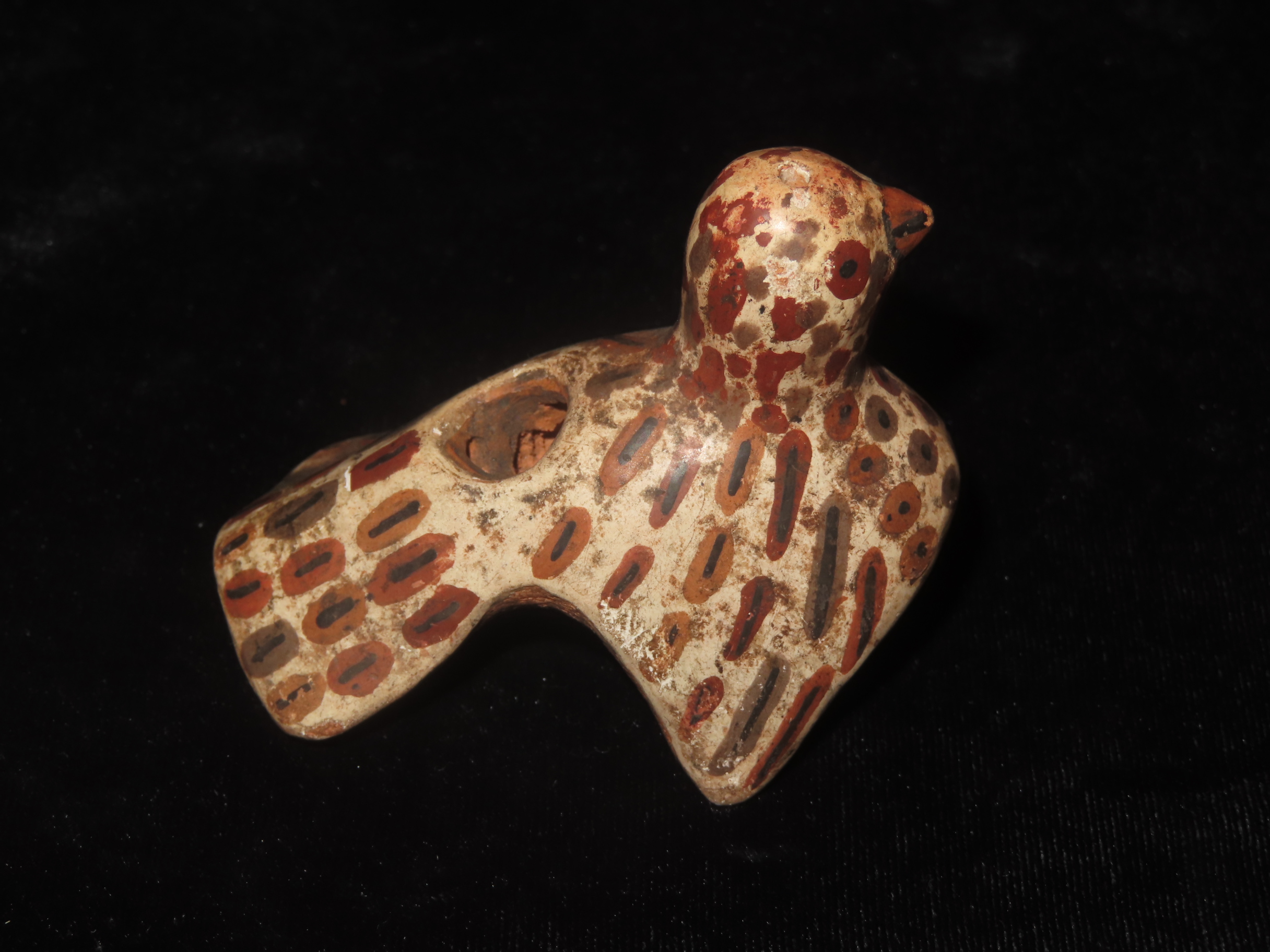 3″ Pre-Columbian Nazca Style Bird Effigy Ocarina / Whistle, Solid, Peru, #RK-P12