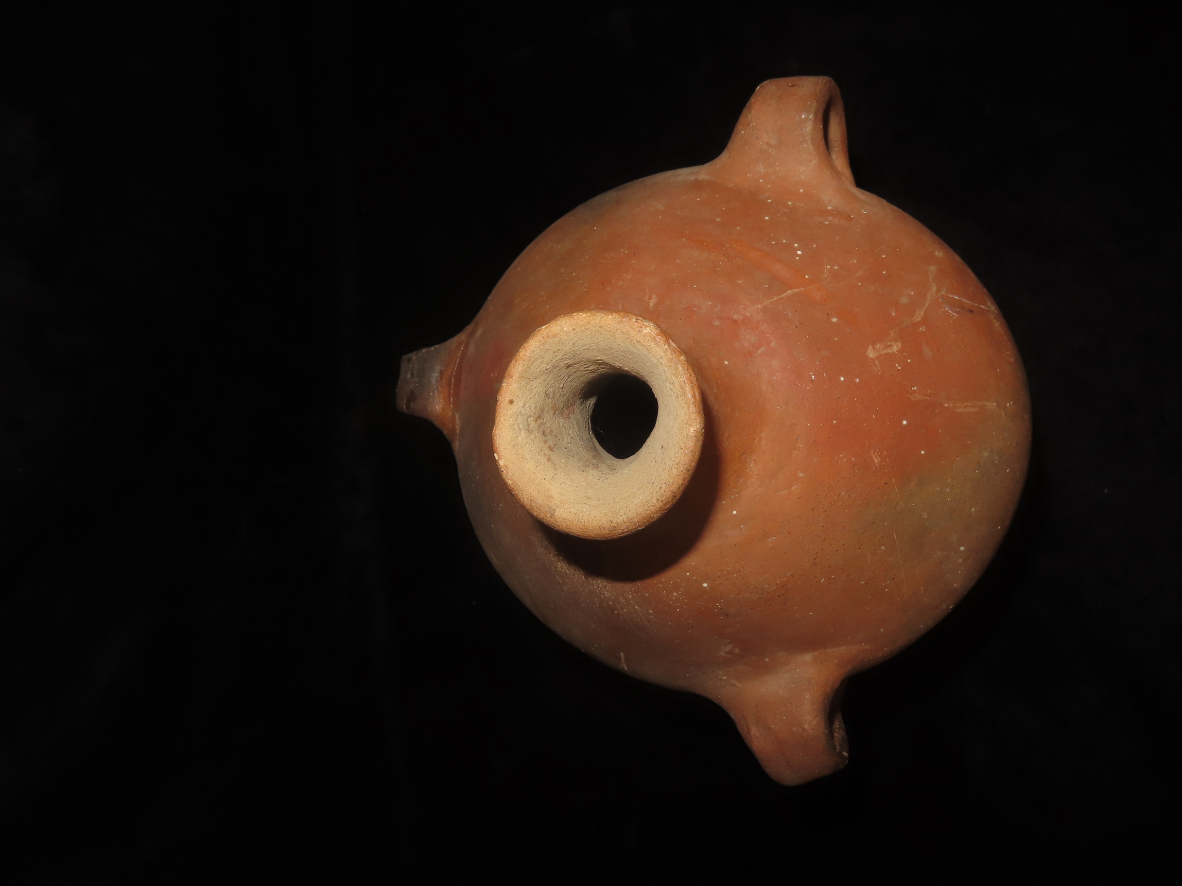 11 1/2″ Pre-Columbian Colima Style Handled Water Jug / Jar, Handles Glued-Otherwise Solid, Mexico, #RK-P19