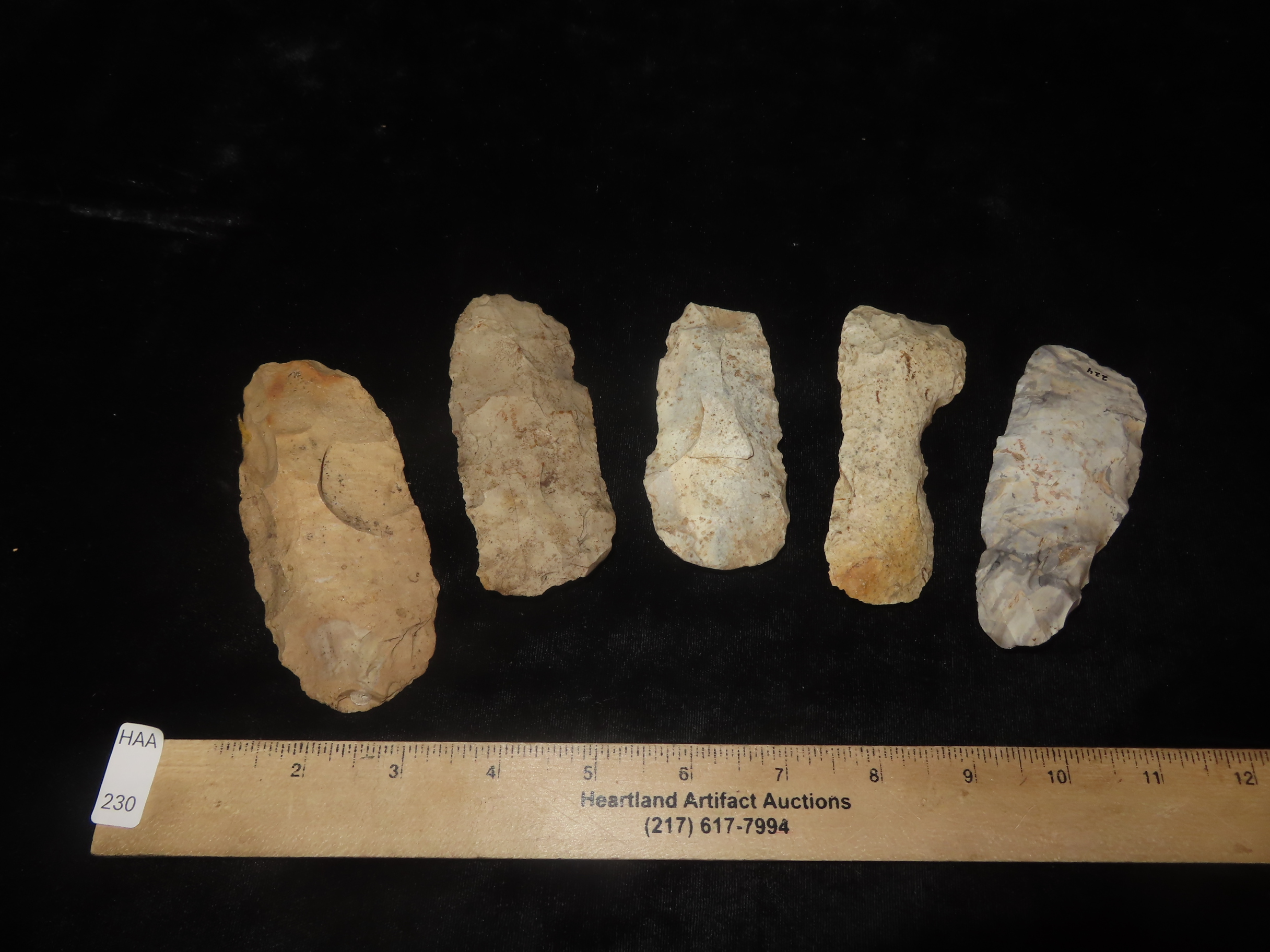 Lot of 5 Flint Celts found in St Charles County Missouri by Ron Knowles
